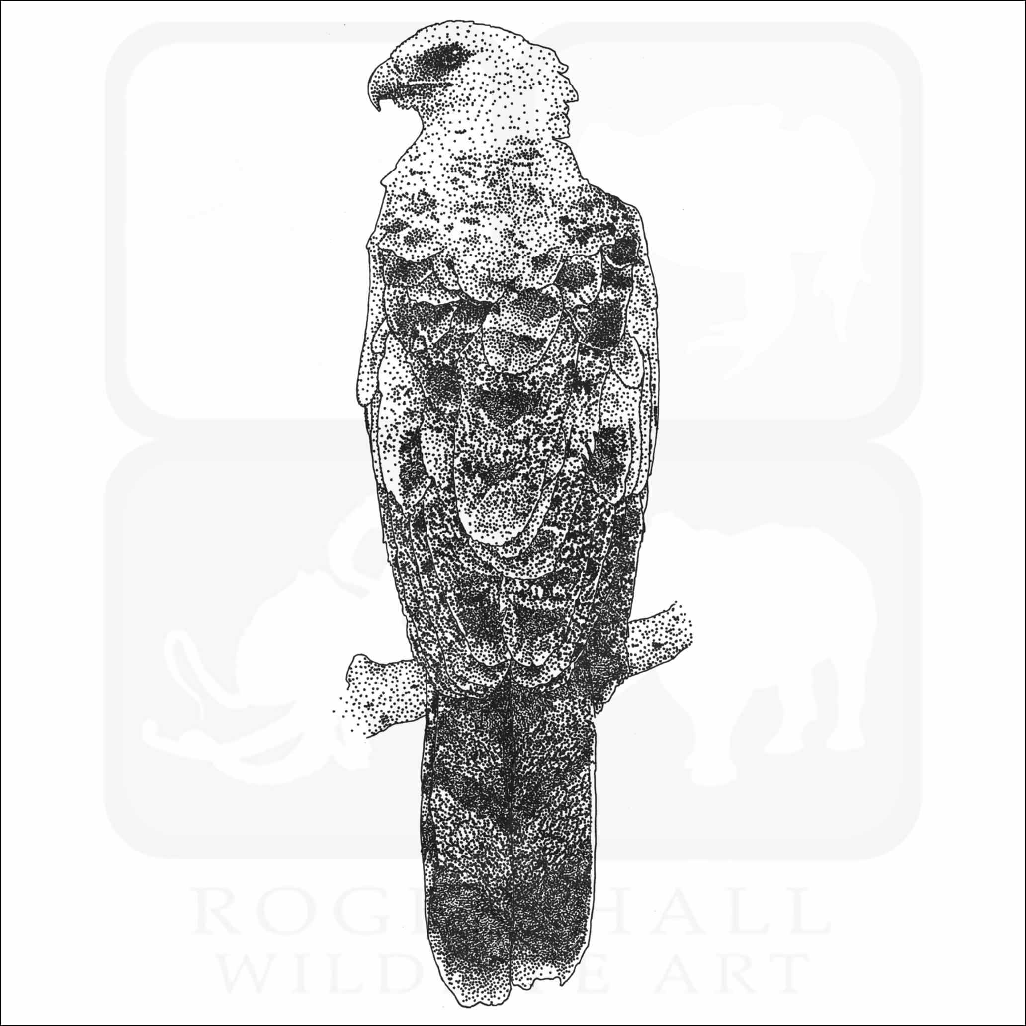 Fine art illustration of a Crested Eagle (Morphnus guianensis.) The illustration is available in black and white or color.