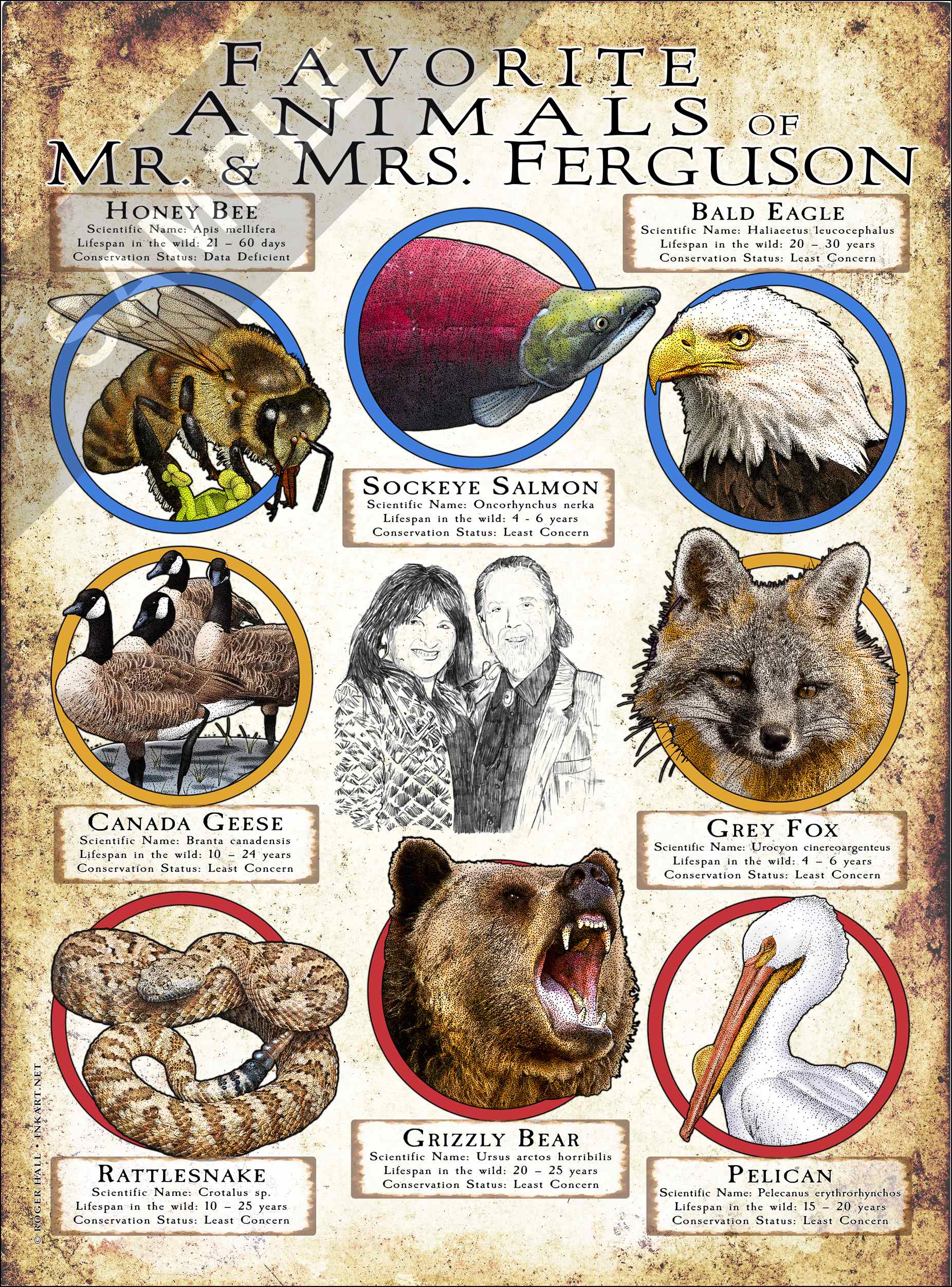 Roger made two incredible pieces for each of my son’s. These prints included their favorite waterfowl & freshwater fish. The renderings of the animals are so high quality & we really like the descriptive text with each animal. The quality of the prints are incredible, and he incorporated use of their favorite colours for the boarders around each animal. I have many pieces of art from Roger Hall hanging in my home. The time and research he puts in to his drawings make them not only interesting but educational as well .