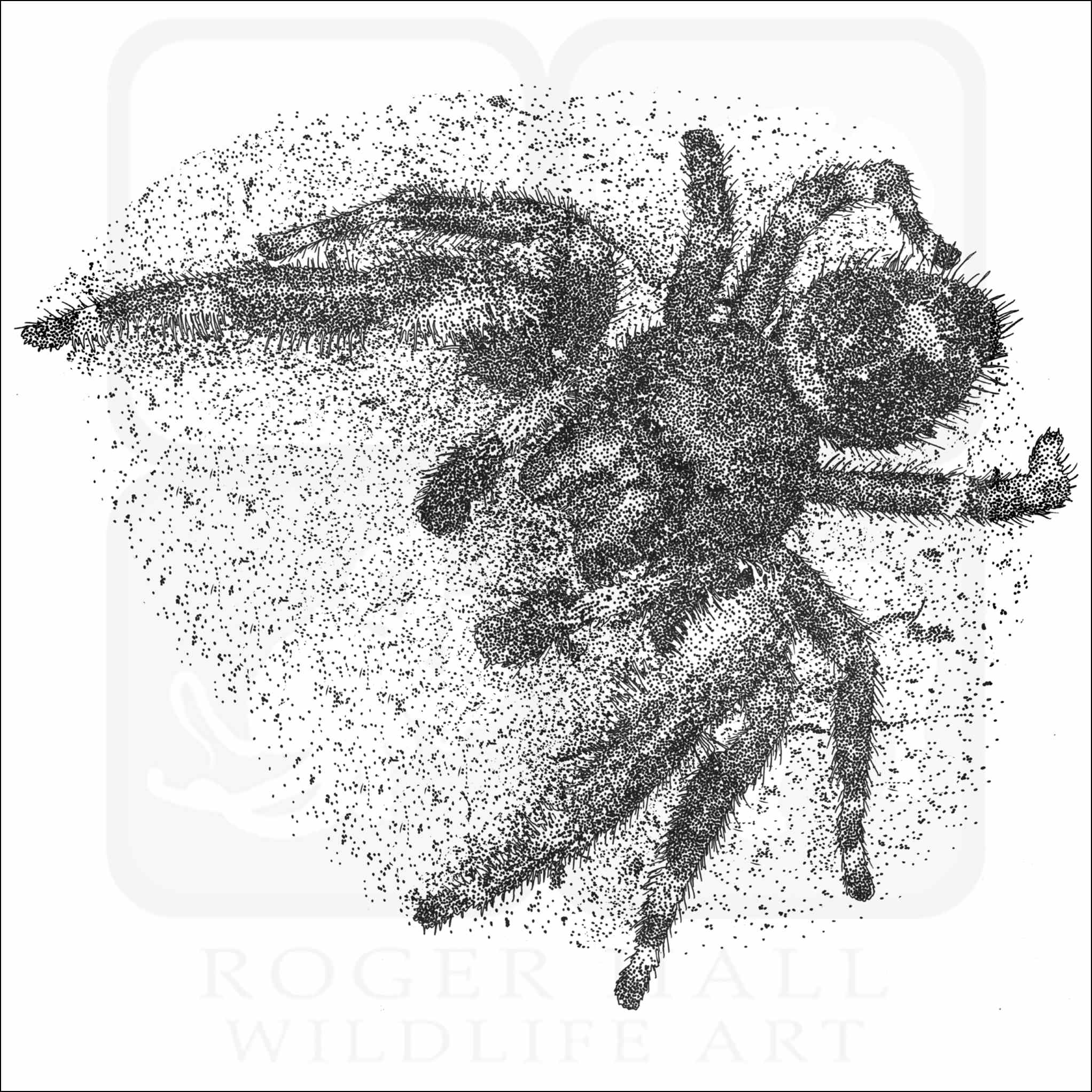 Fine art illustration of a Daring Jumping Spider (Phidippus audax.) The illustration is available in black and white or color.