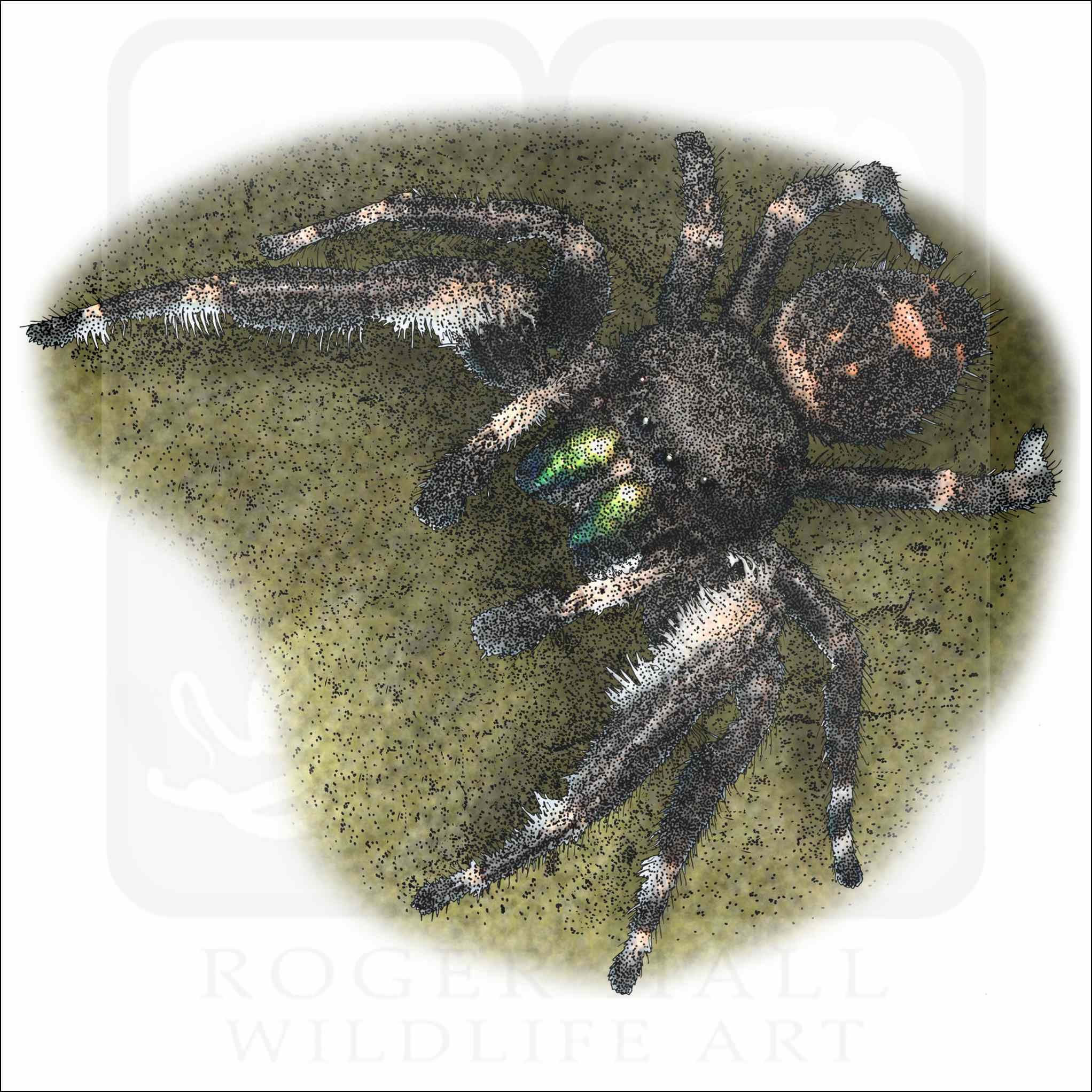 Fine art illustration of a Daring Jumping Spider (Phidippus audax.)