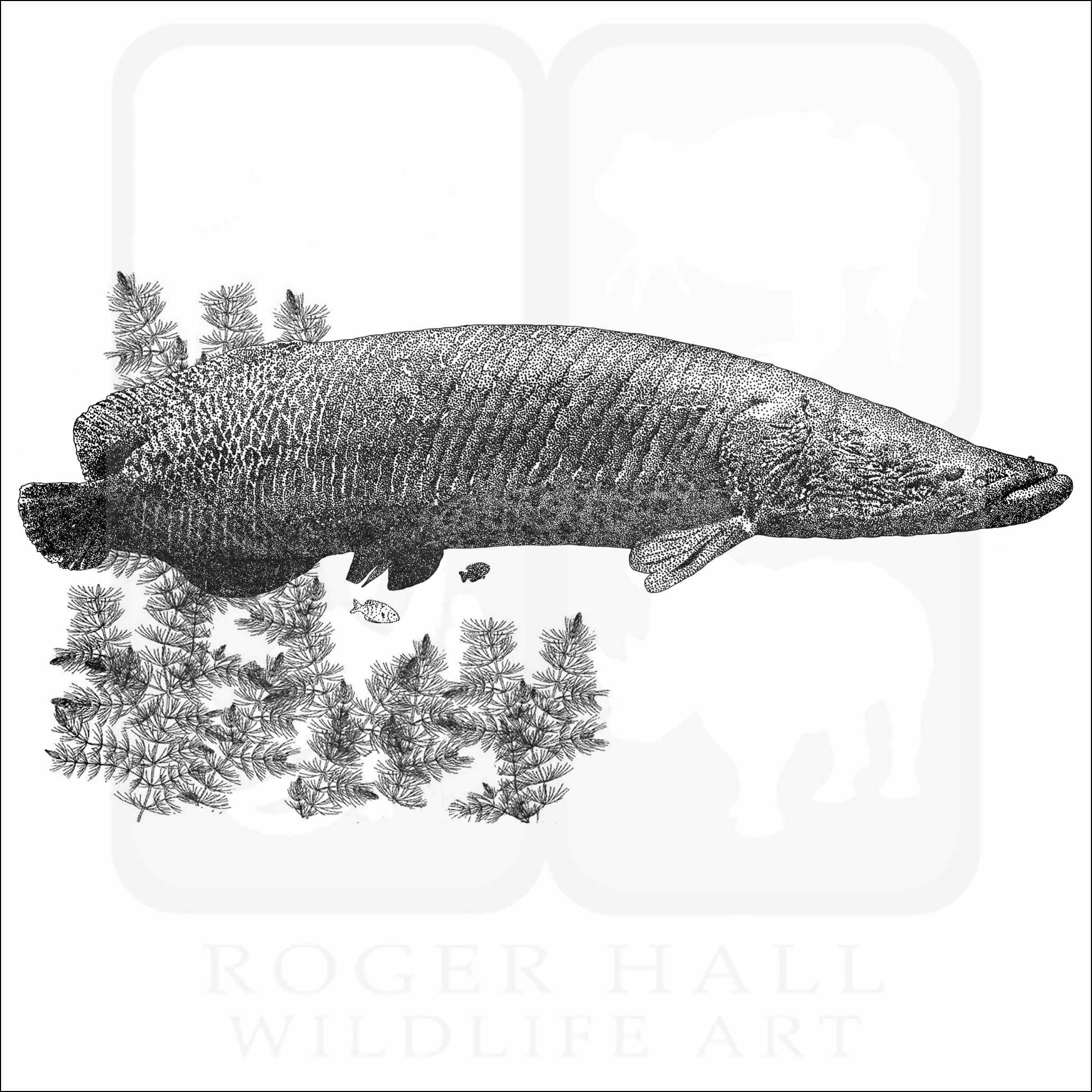 Fine art illustration of an Arapaima (Arapaima gigas.)