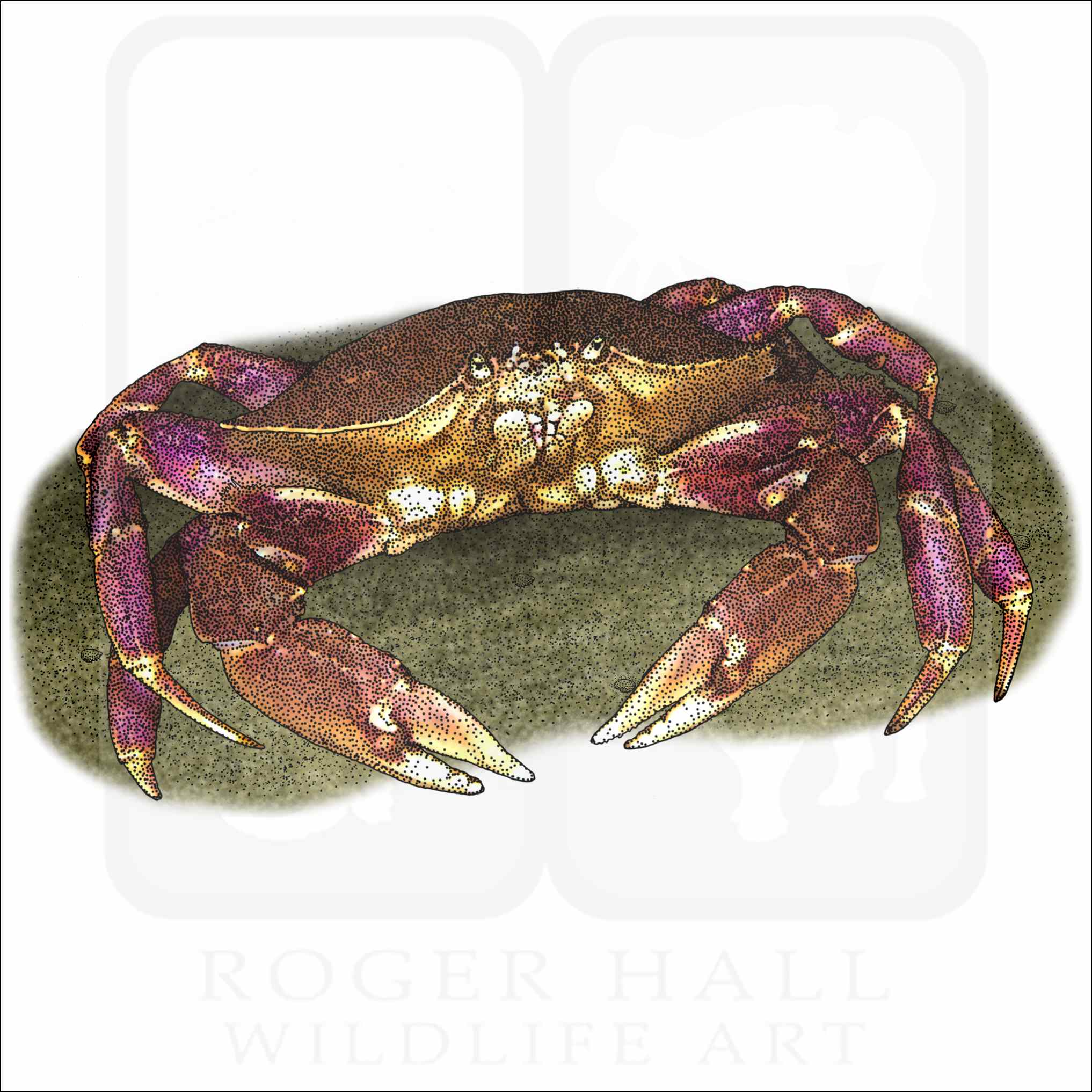 Fine art illustration of a Dungeness Crab (Metacarcinus magister.) The illustration is available in black and white or color.