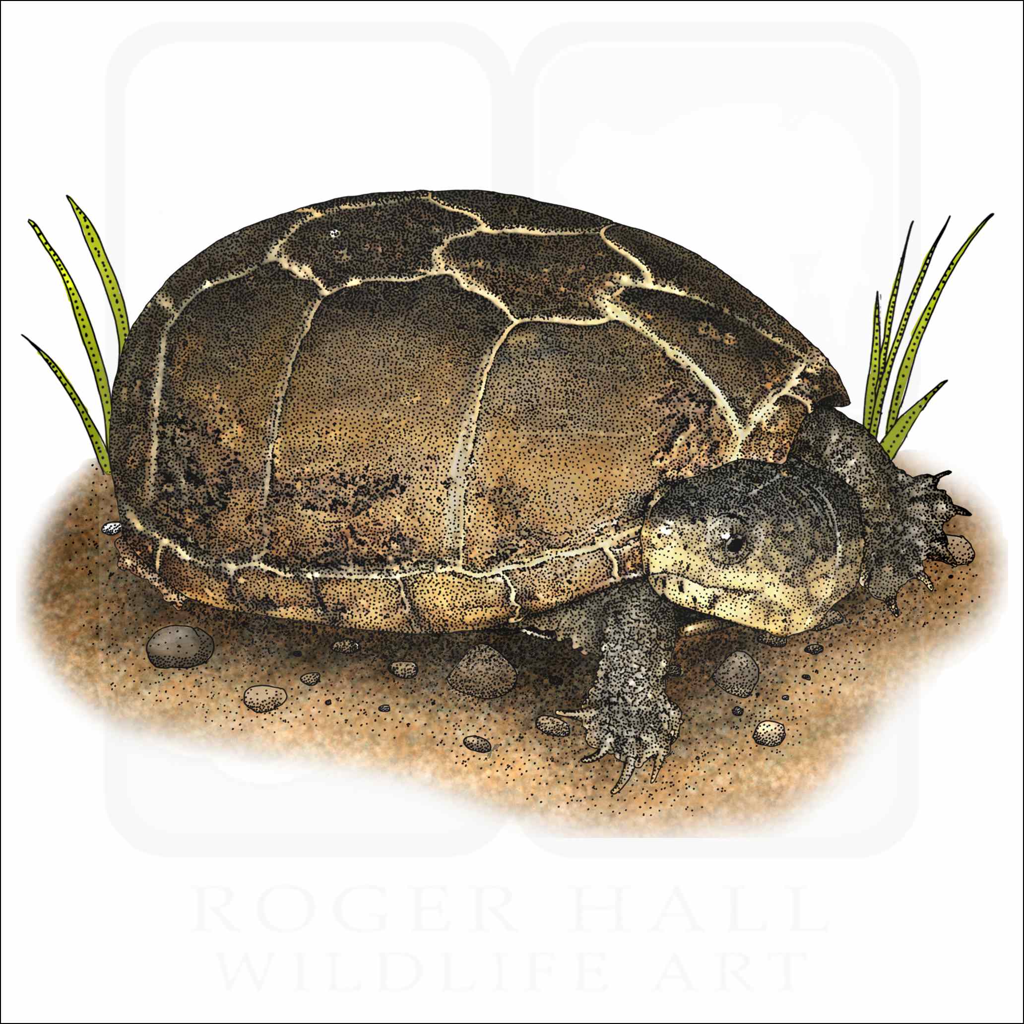 Fine art illustration of an Eastern Mud Turtle (Kinosternon subrubrum.)