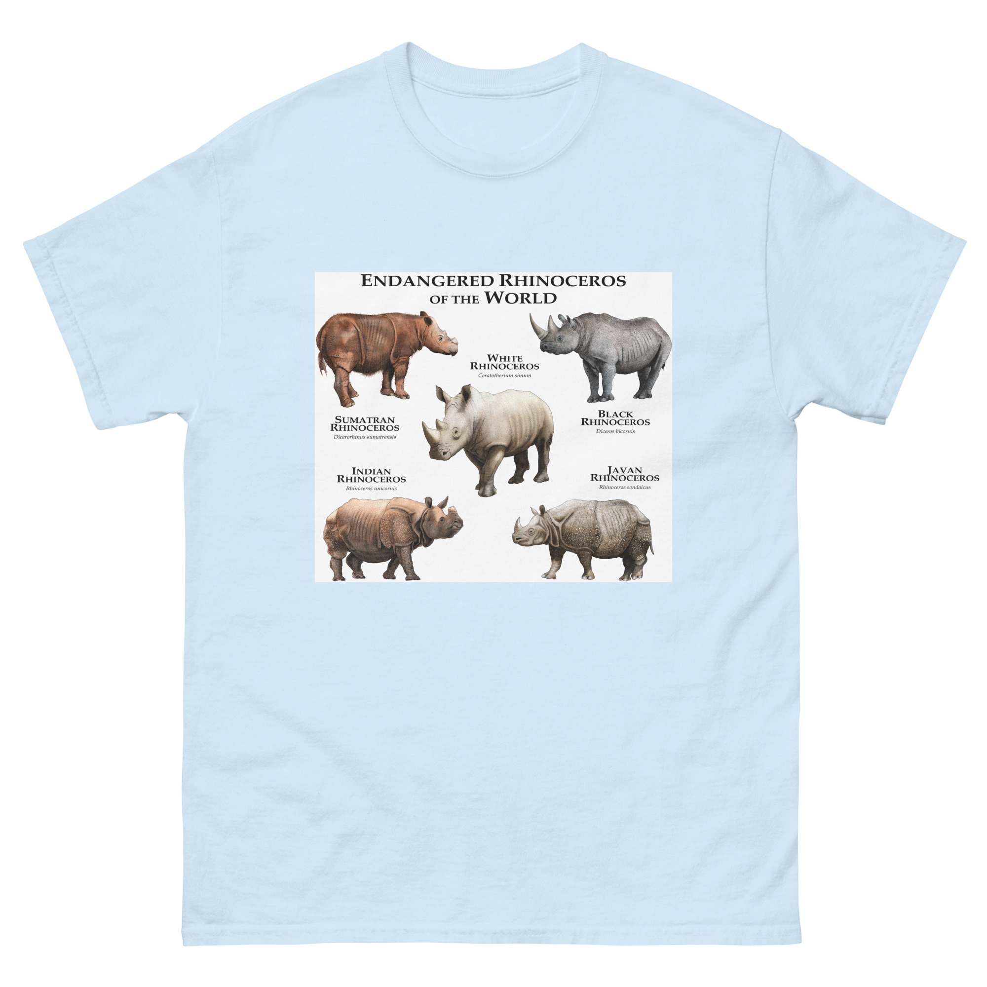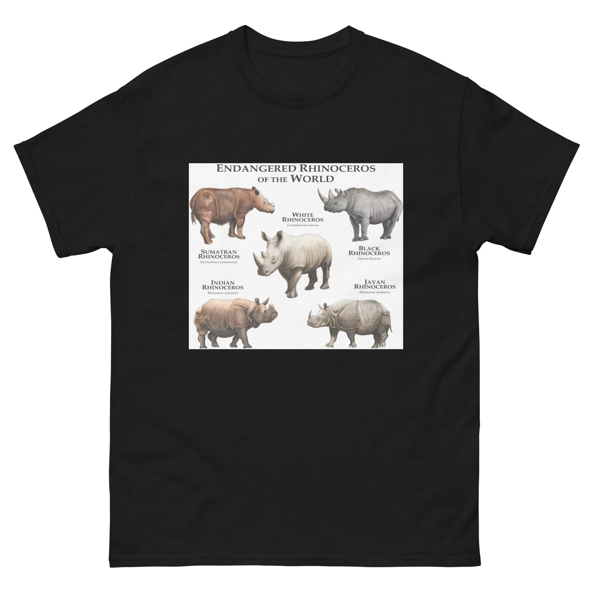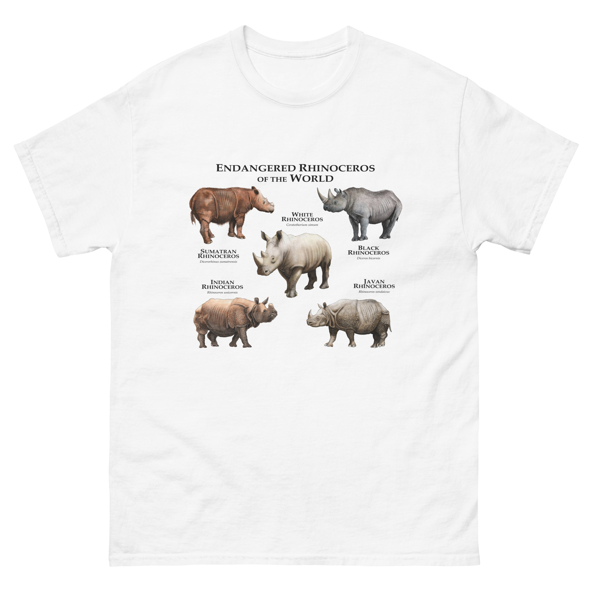 Rhinoceros are large, herbivorous mammals found only in Asia and Africa. All species are endangered, with the Javan Rhino being one most critically endangered mammals on the planet, with fewer than 30 currently living (none of which are in zoos.) This poster print features fine art illustrations of all extant species of Rhinoceros