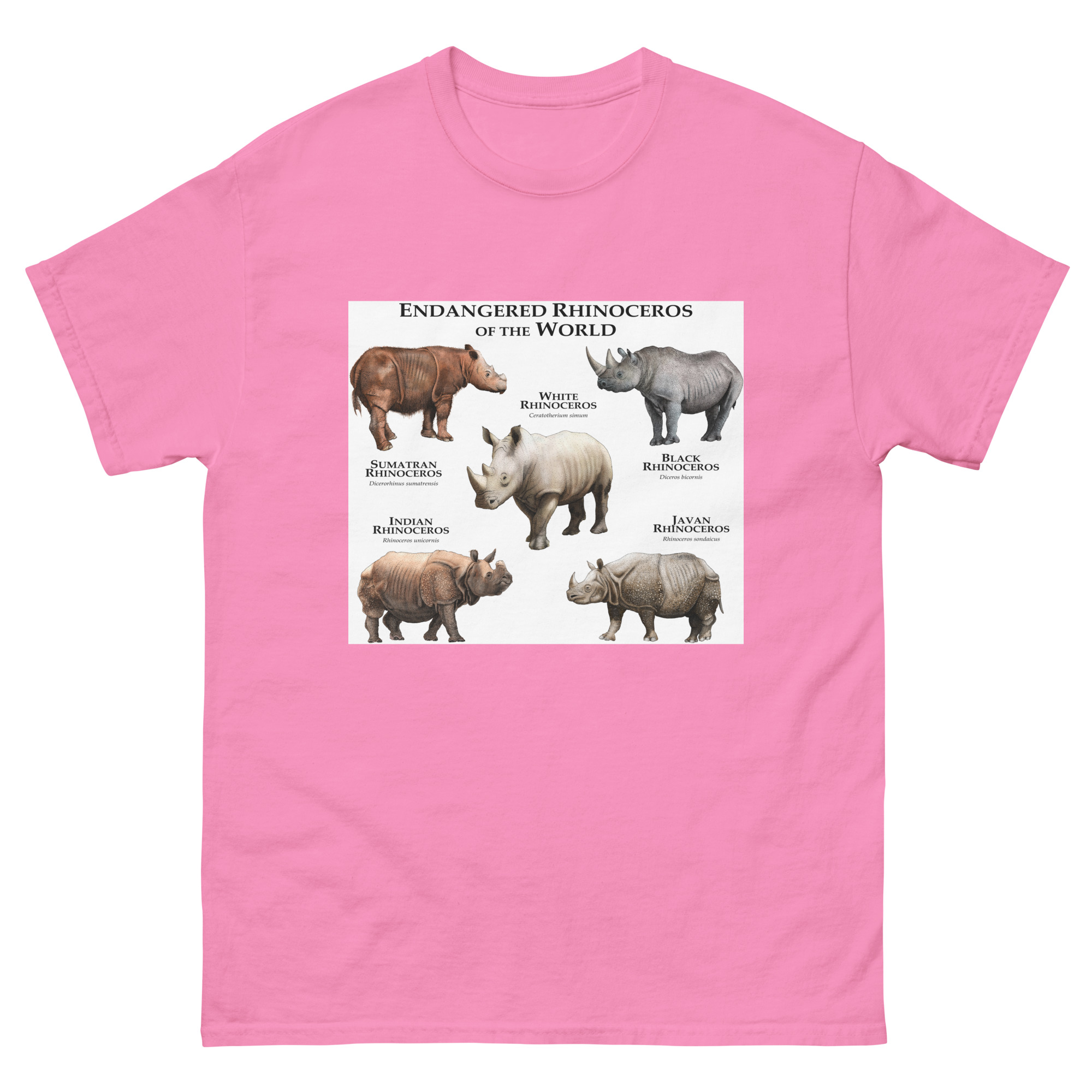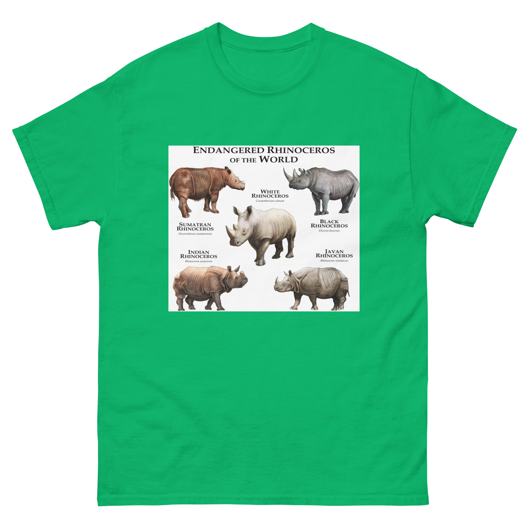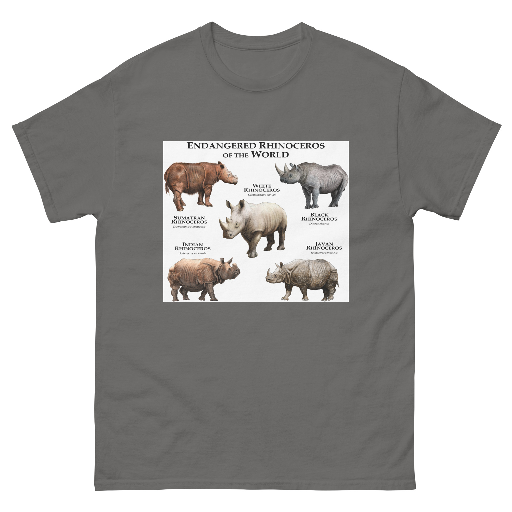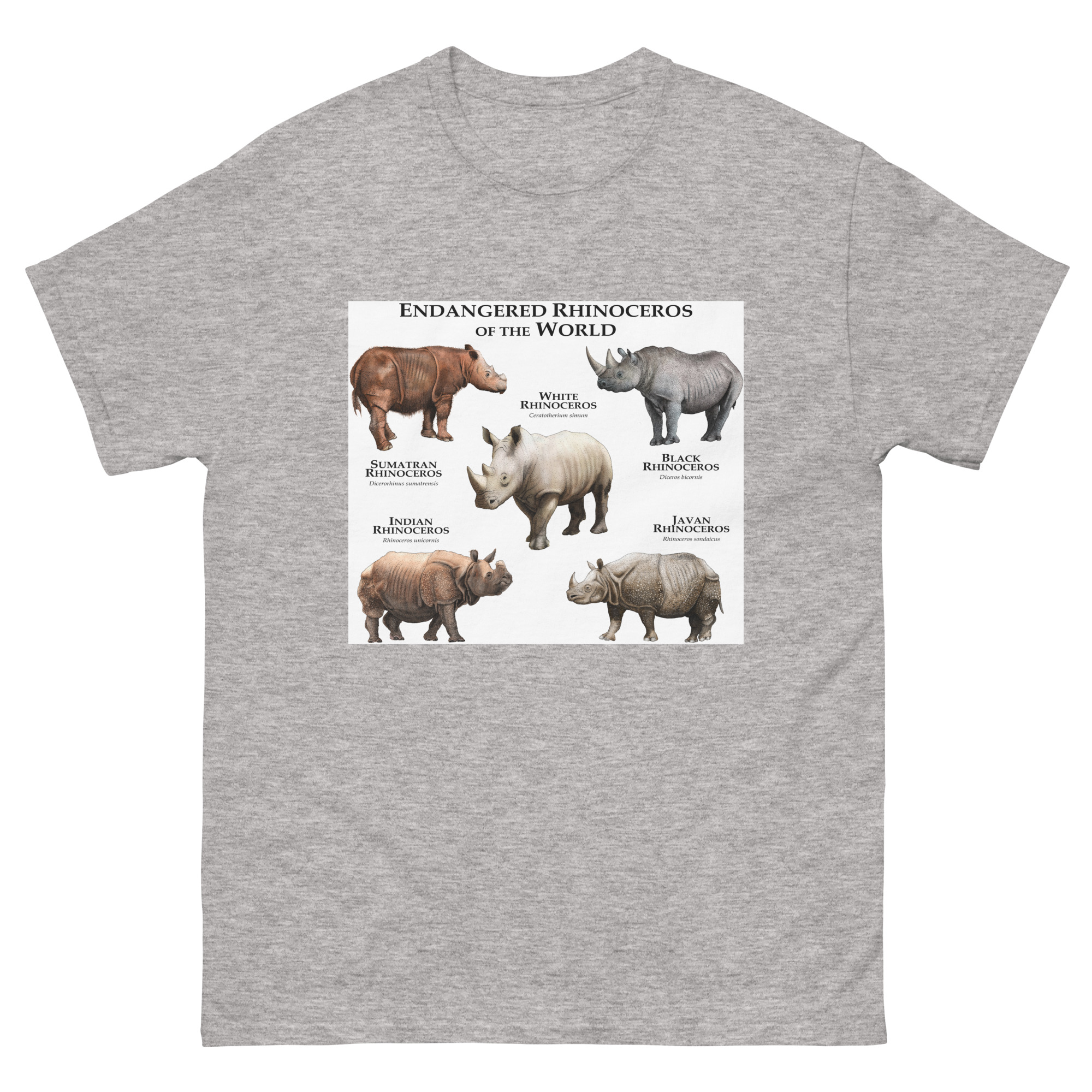 Rhinoceros are large, herbivorous mammals found only in Asia and Africa. All species are endangered, with the Javan Rhino being one most critically endangered mammals on the planet, with fewer than 30 currently living (none of which are in zoos.) This poster print features fine art illustrations of all extant species of Rhinoceros