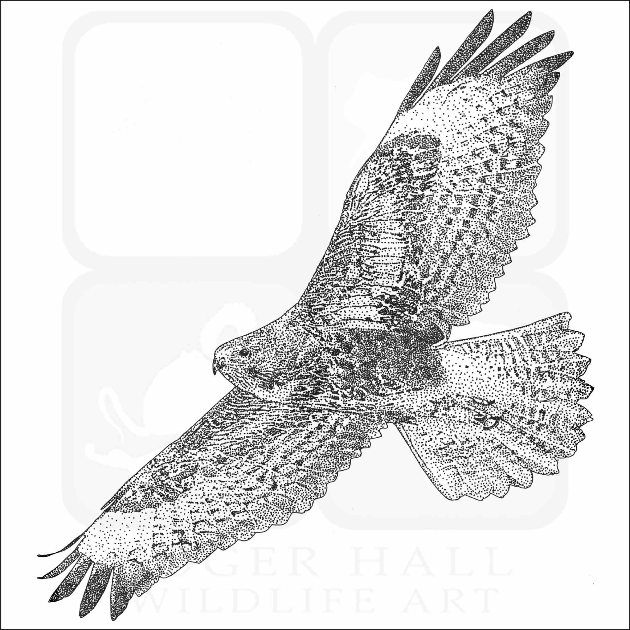 Fine art illustration of a Common Buzzard (Buteo buteo.) The illustration is available in black and white or color.