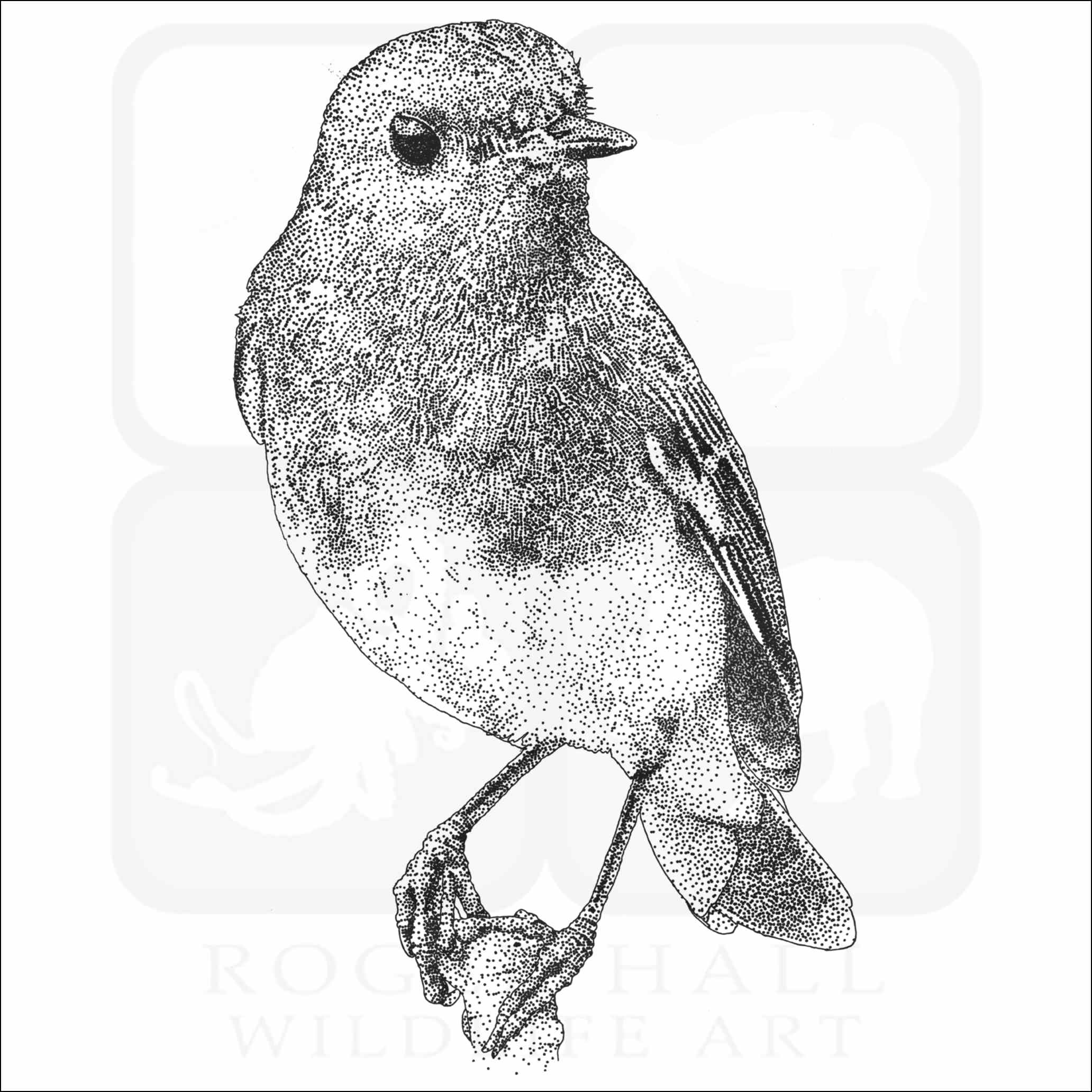 Fine art illustration of a European Robin (Erithacus rubecula.) The illustration is available in black and white or color.