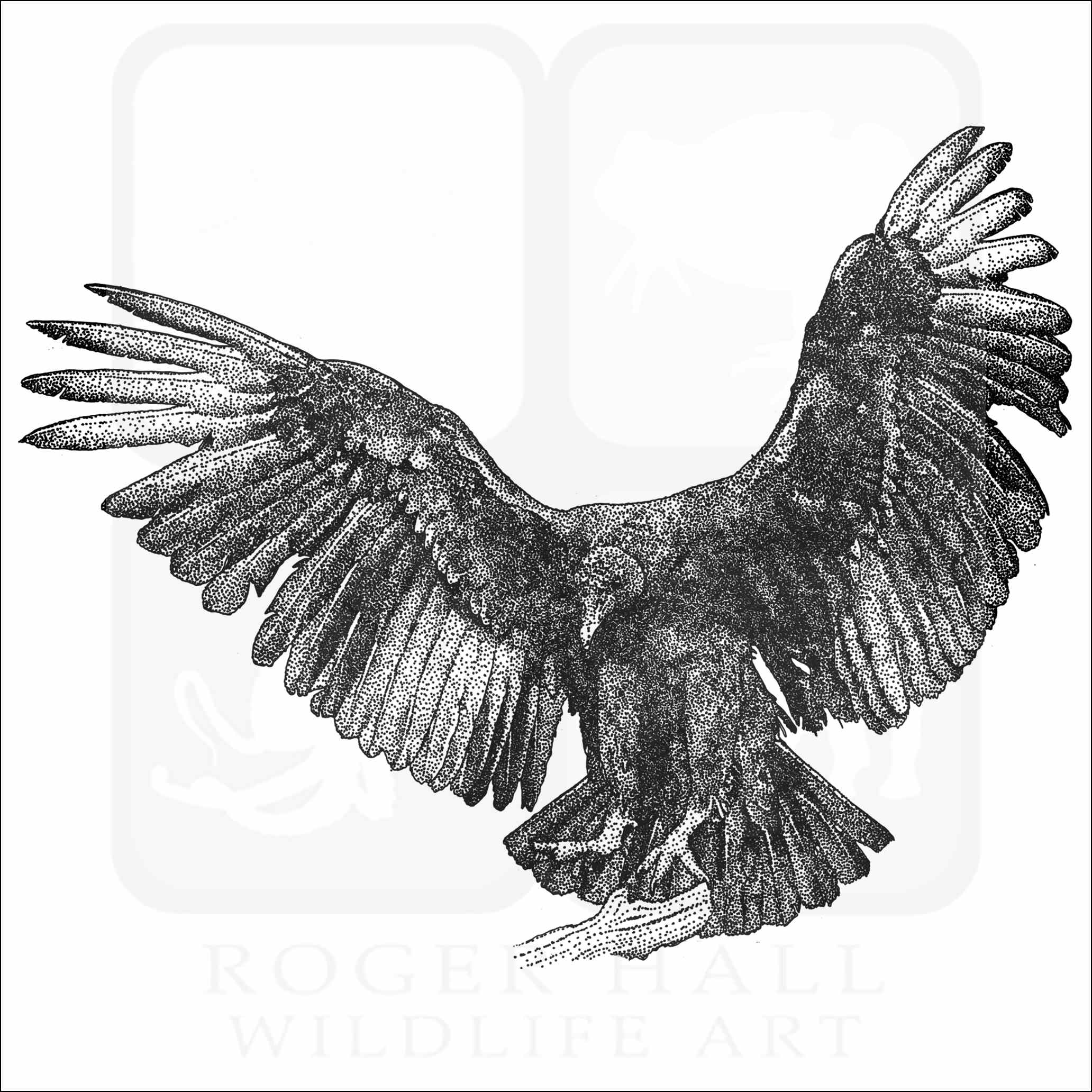 Fine art illustration of a Black Vulture (Coragyps atratus.) The illustration is available in black and white or color.