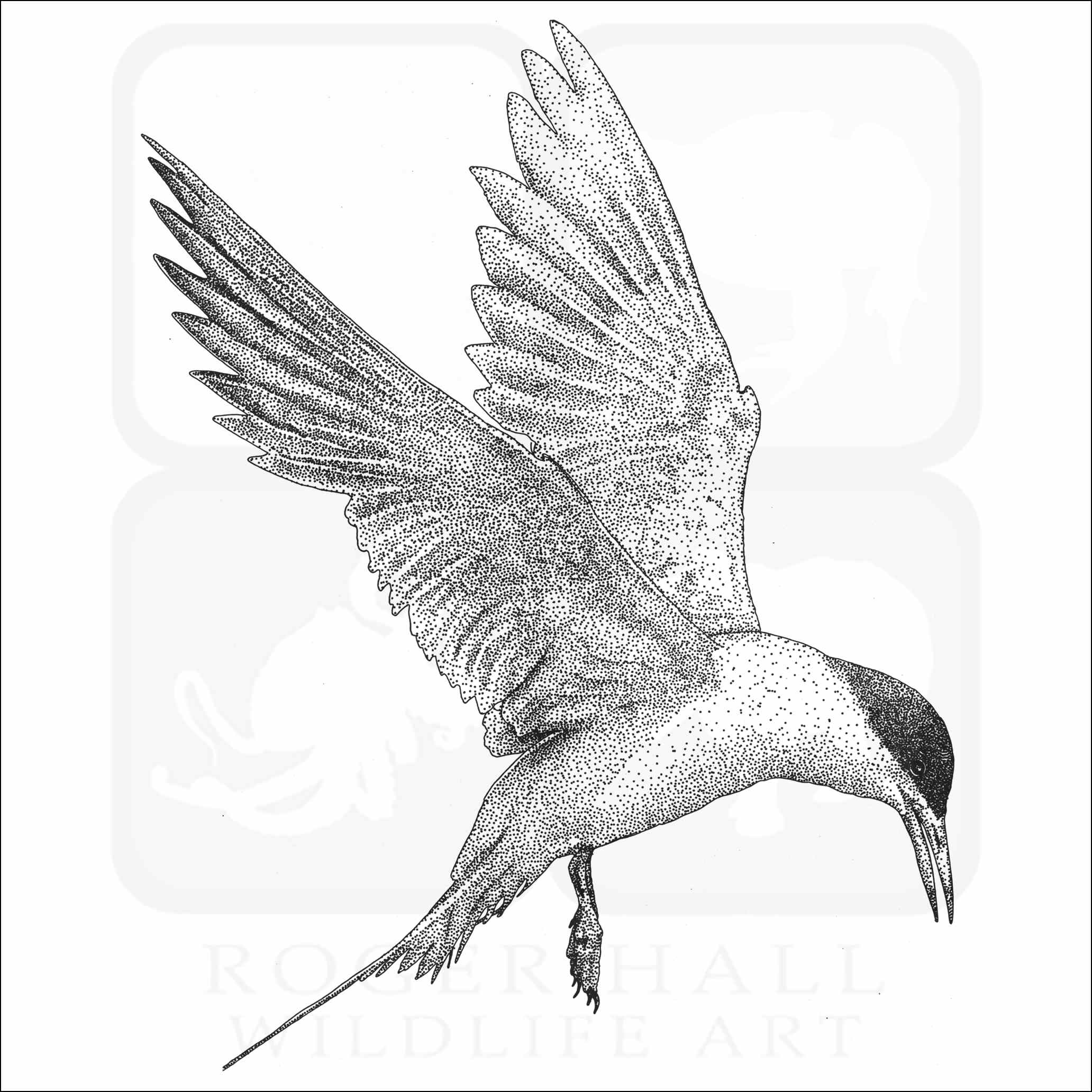 Fine art illustration of a Forster’s Tern (Sterna forsteri.) The illustration is available in black and white or color.