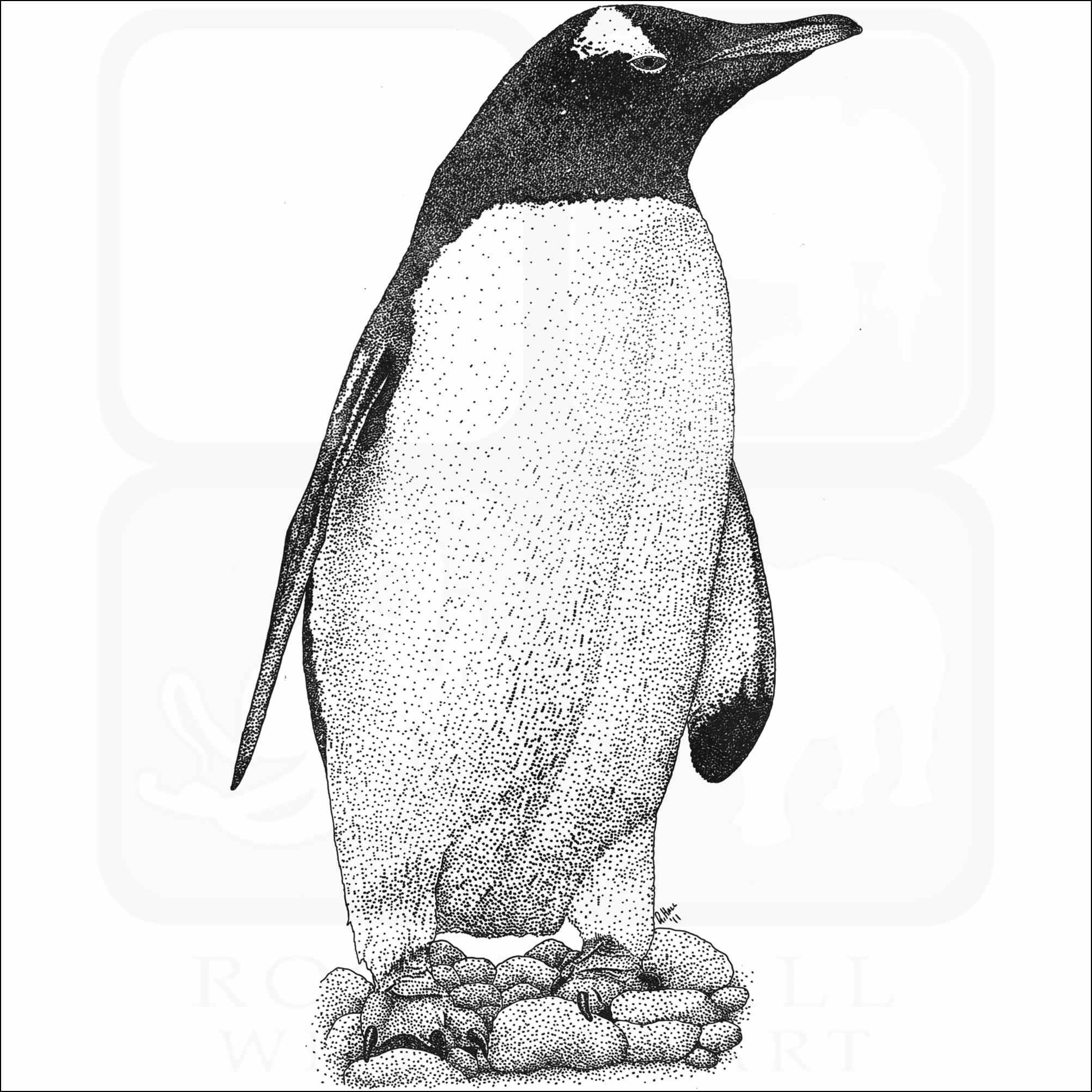 Fine art illustration of a Gentoo Penguin (Pygoscelis papua.) The illustration is available in black and white or color.
