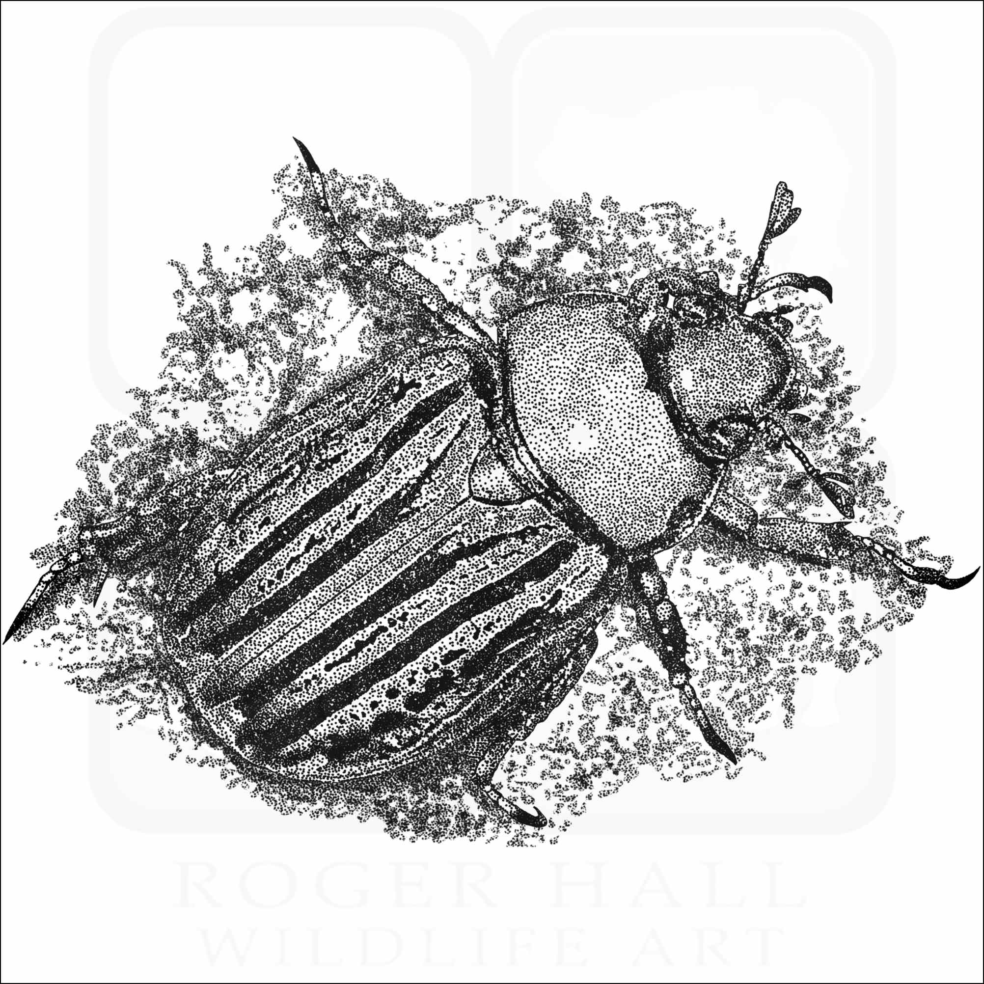 Fine art illustration of a Glorious Beetle (Chrysina gloriosapra.) The illustration is available in black and white or color.