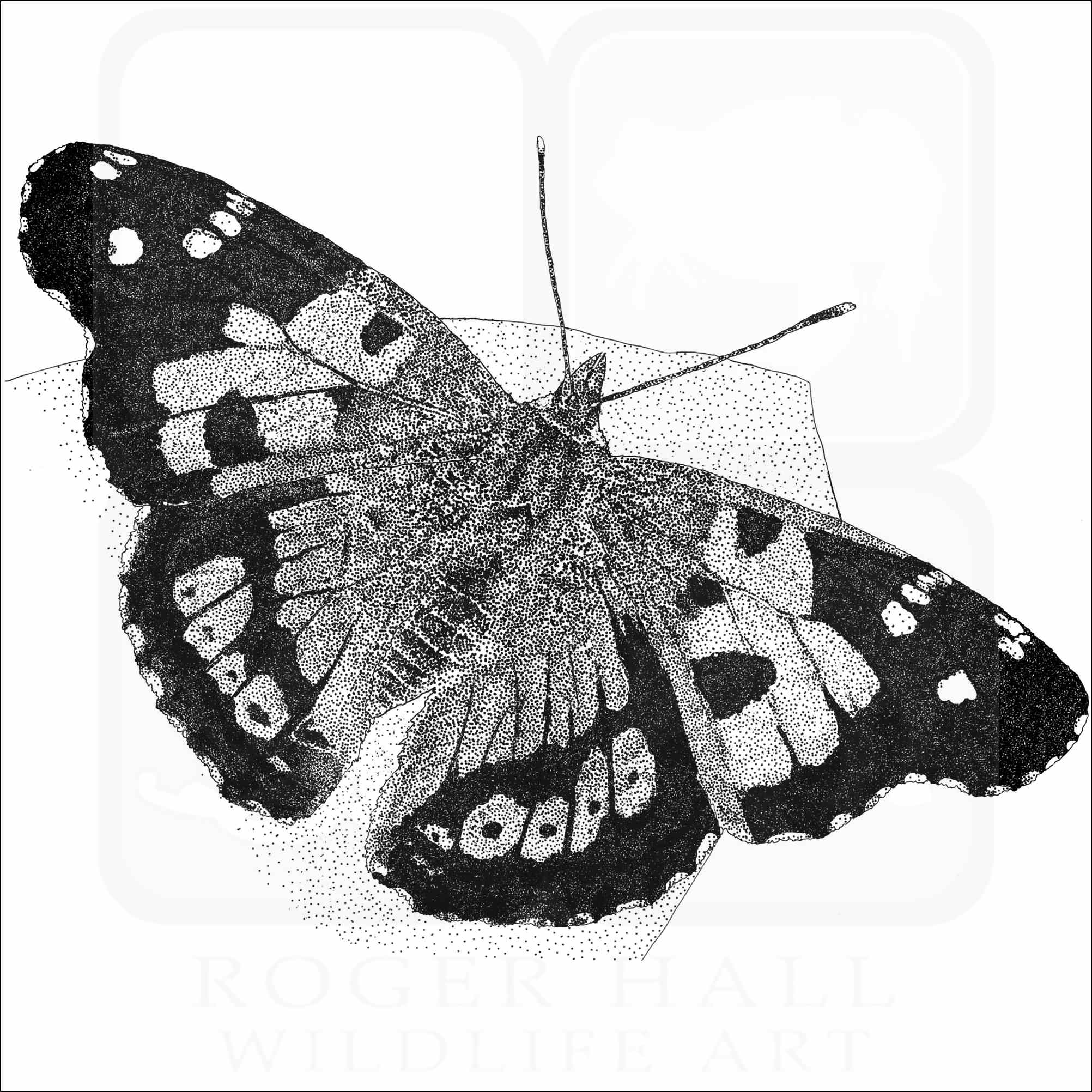 Fine art illustration of a Kamehameha Butterfly (Vanessa tameamea.) The illustration is available in black and white or color for immediate download.