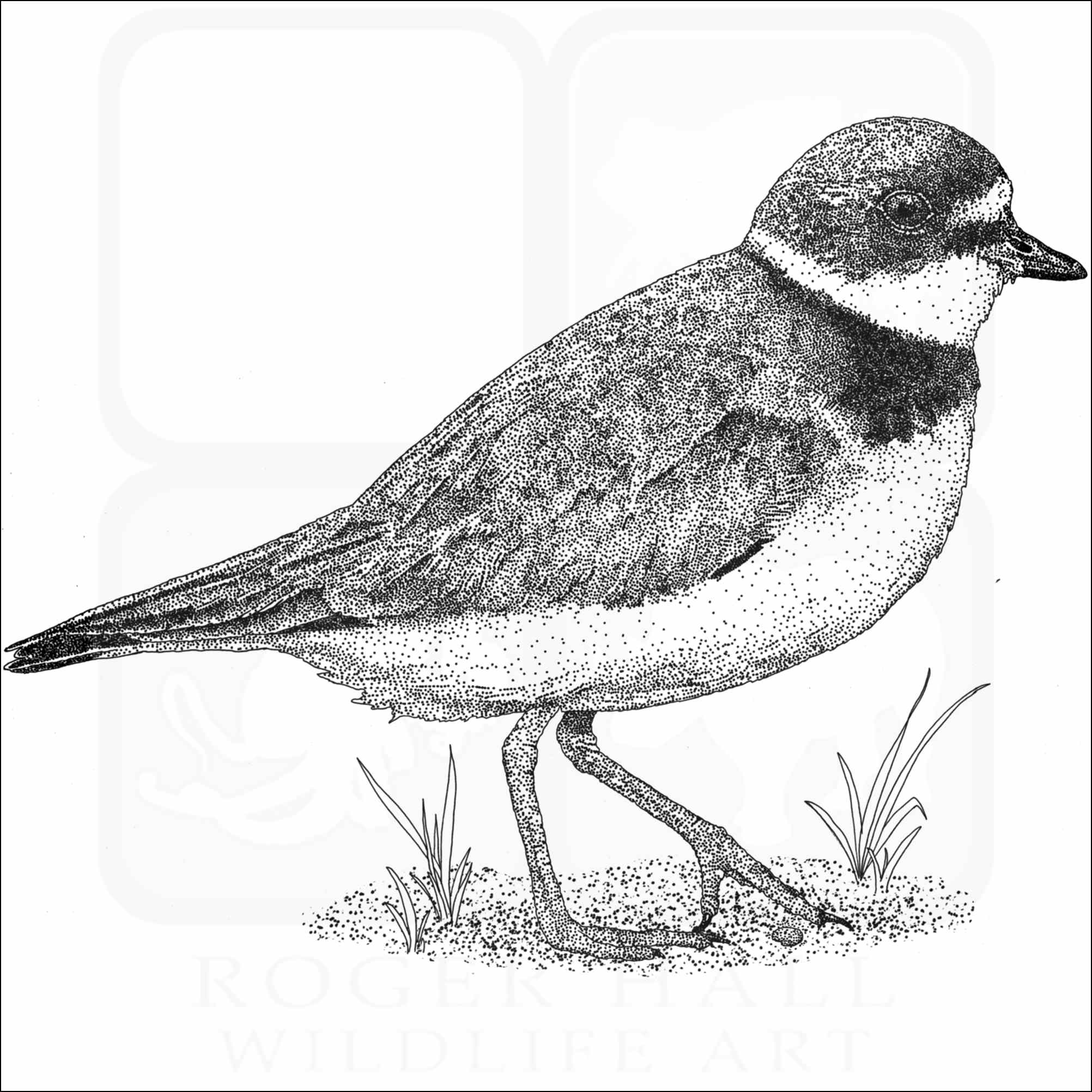 Fine art illustration of a Semipalmated Plover (Charadrius semipalmatus.) The illustration is available in black and white or color.