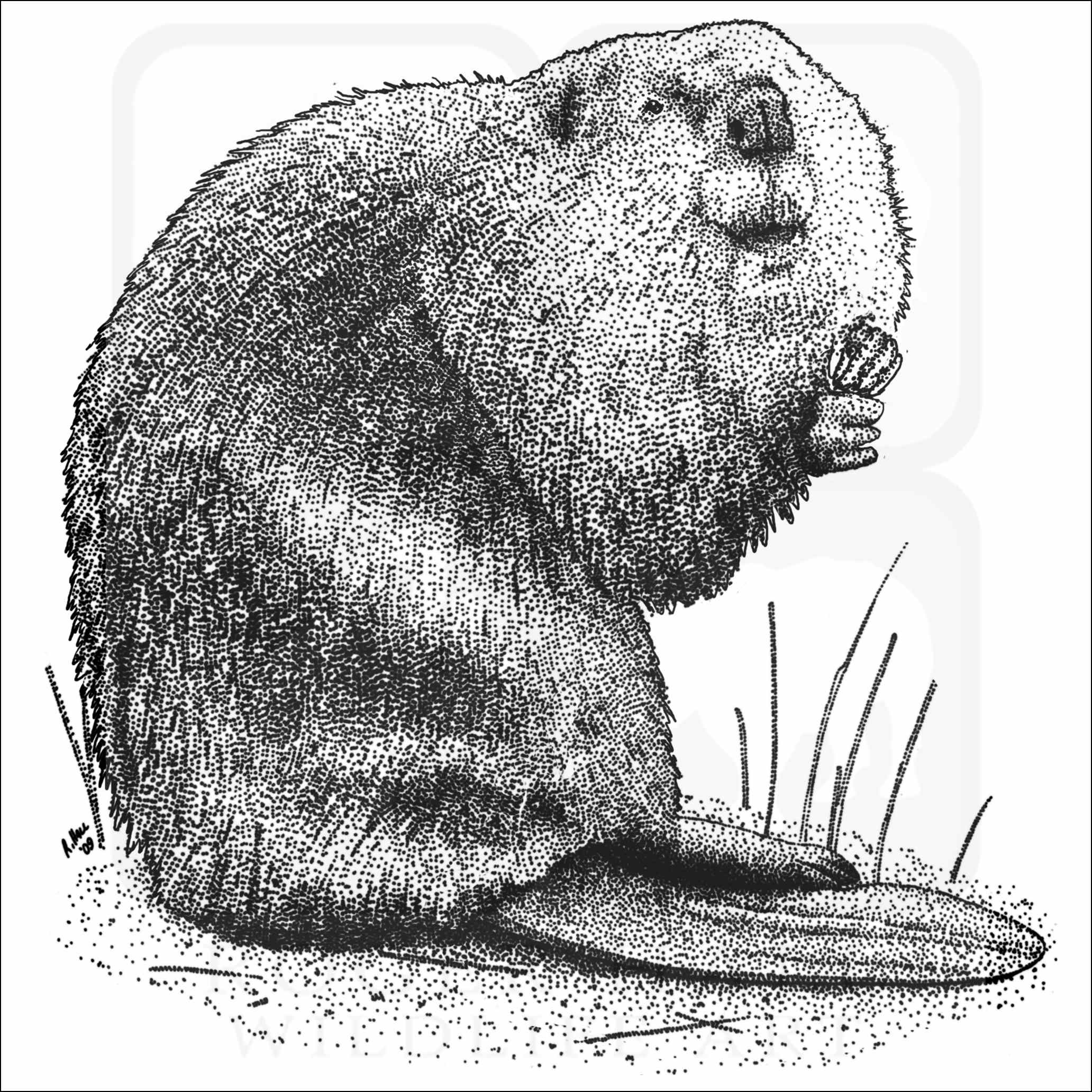 Fine art illustration of an American Beaver (Castor canadensis.) The illustration is available in black and white or color.