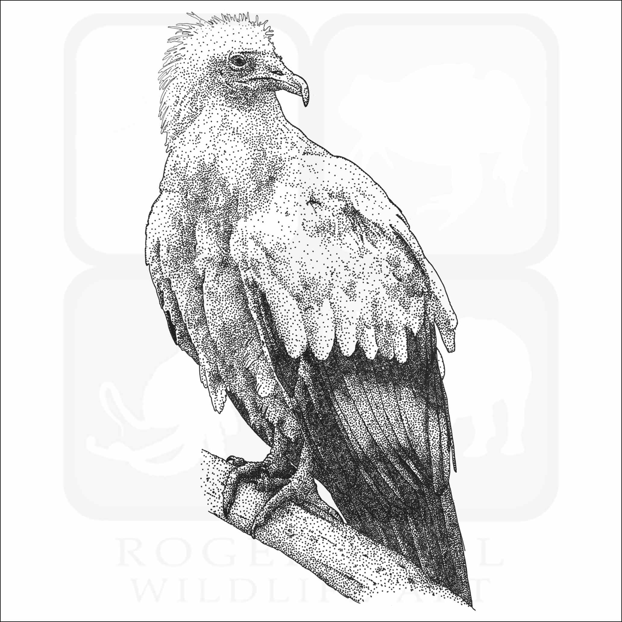 Fine art illustration of an Egyptian Vulture (Neophron percnopterus.) The illustration is available in black and white or color.