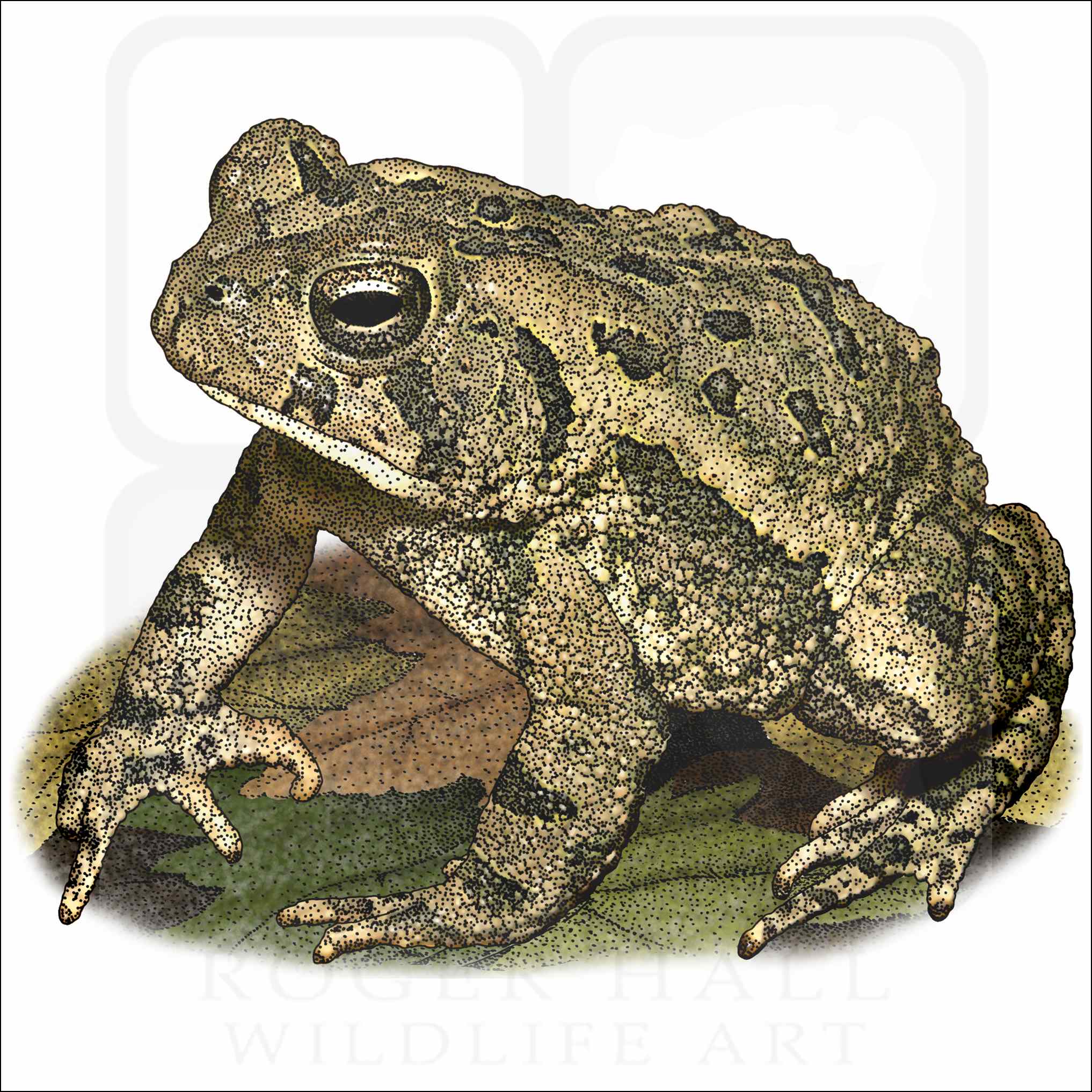 Fine art illustration of a Fowler’s Toad (Anaxyrus fowleri.)