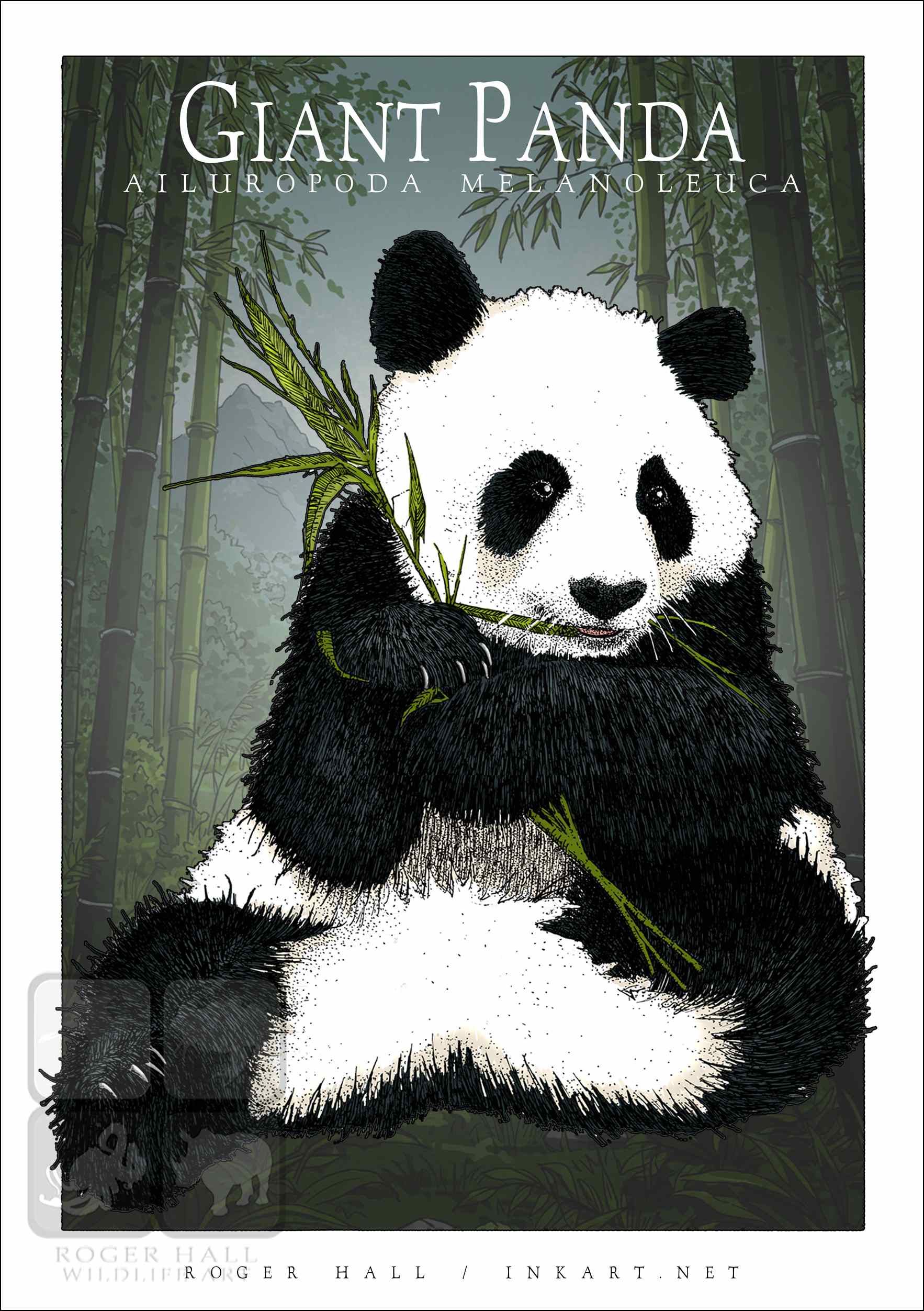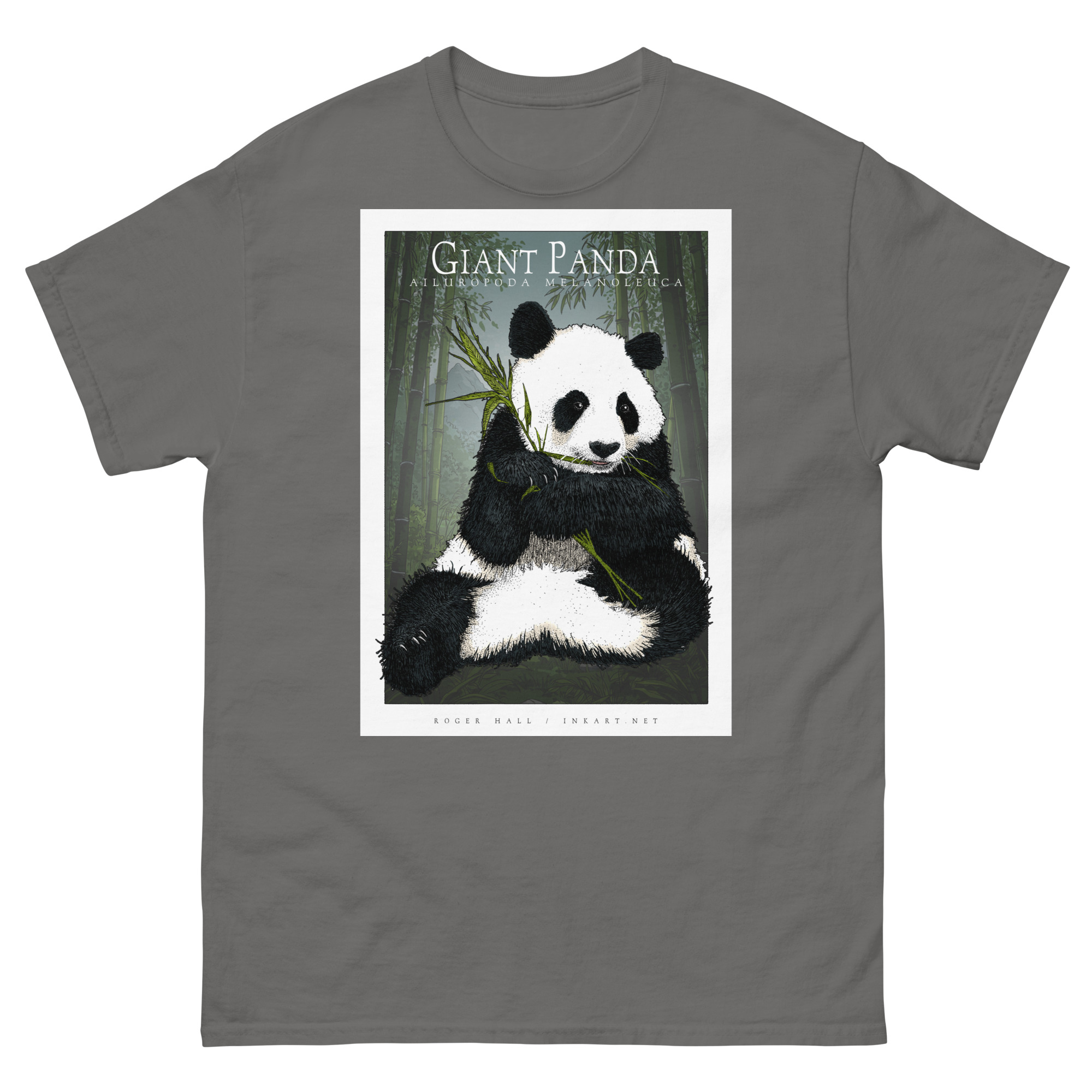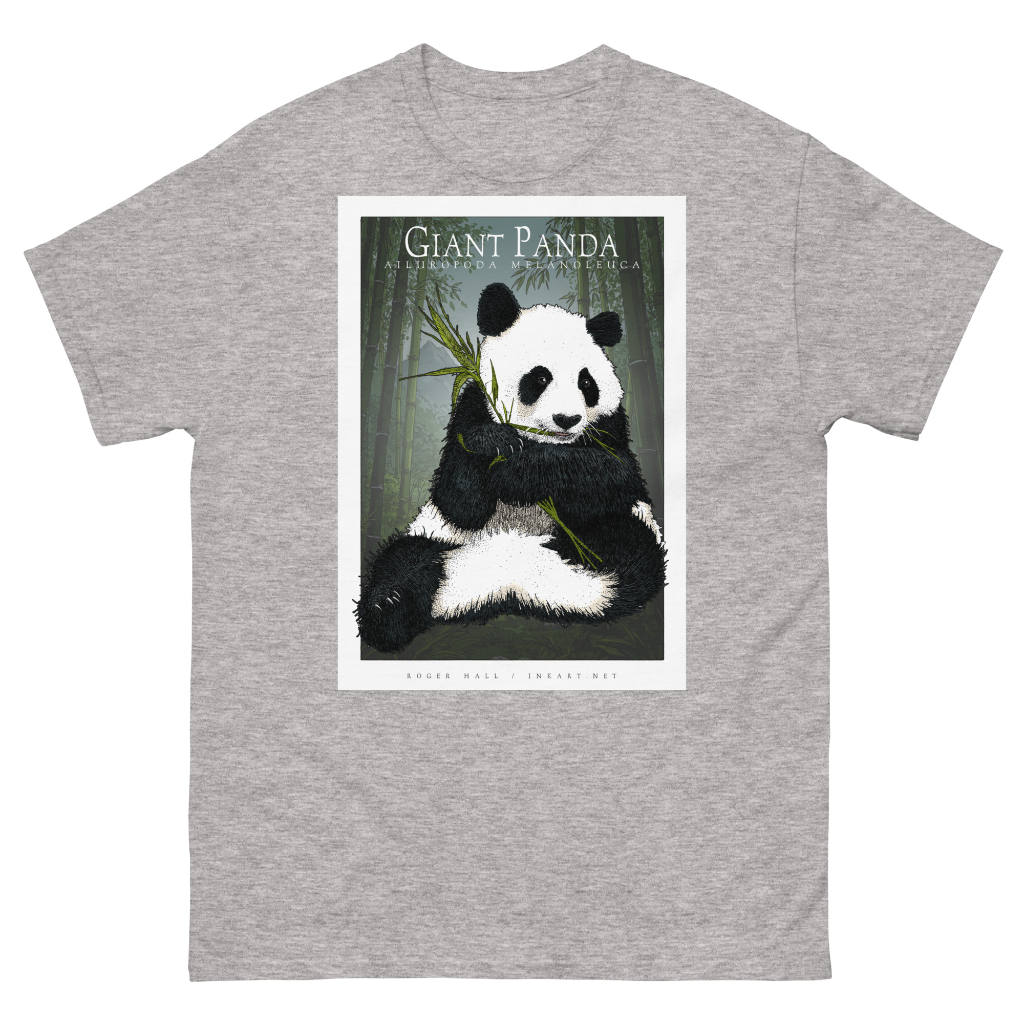 Scientifically accurate drawing of a Giant Panda (Ailuropoda melanoleuca.) The illustration of a printed on a high-quality 100% unisex cotton t-shirt.