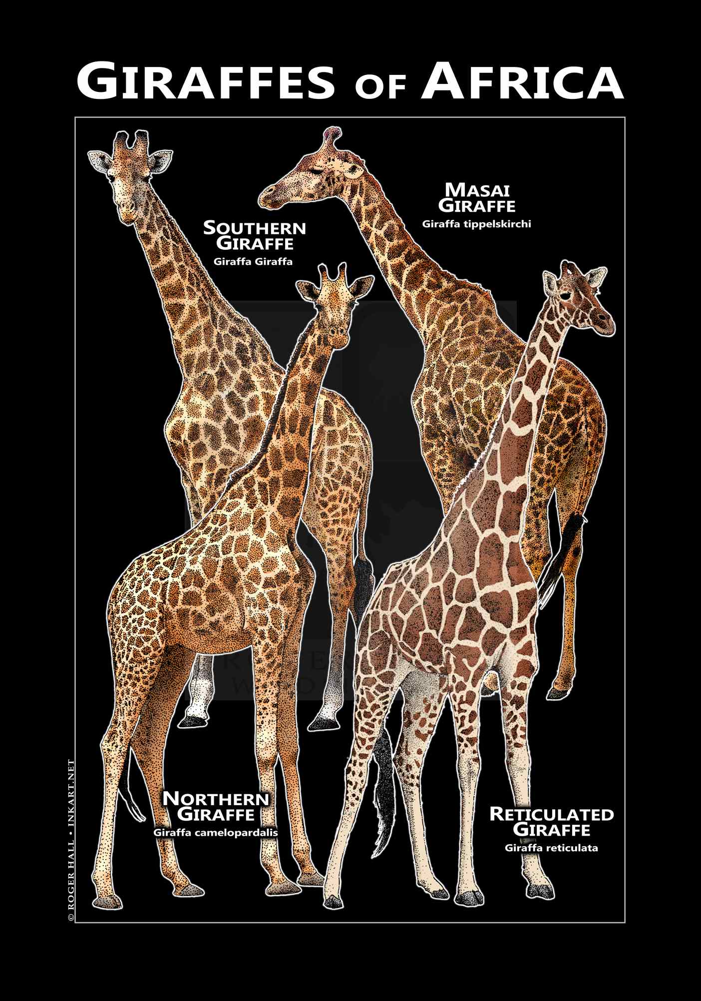 Giraffes are the tallest land mammals in the world. These large animals live in savannas throughout Africa. They like semi-arid, open woodlands that have scattered trees and bushes. There are four species of giraffe recognized and several subspecies: https://giraffeconservation.org/giraffe-species/.