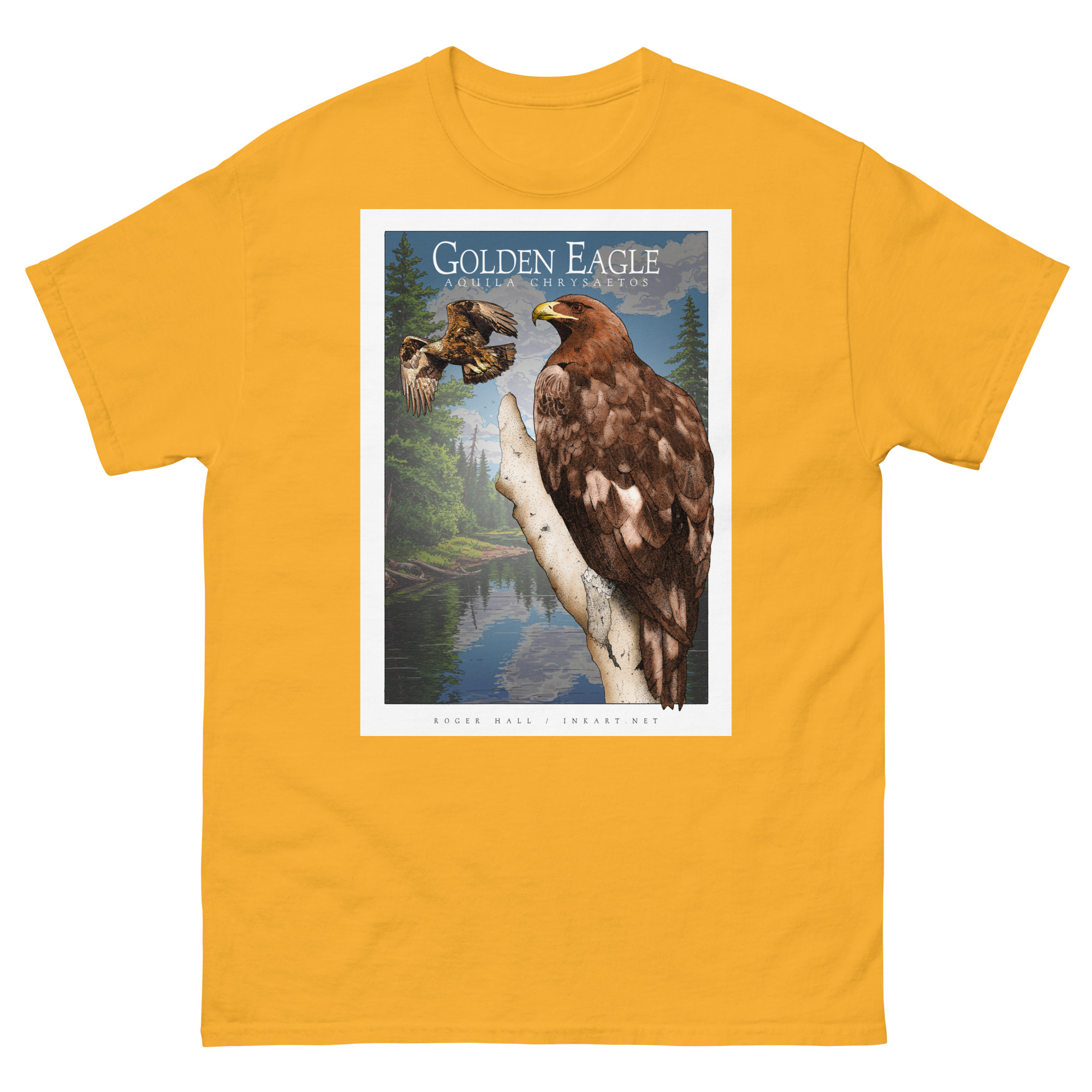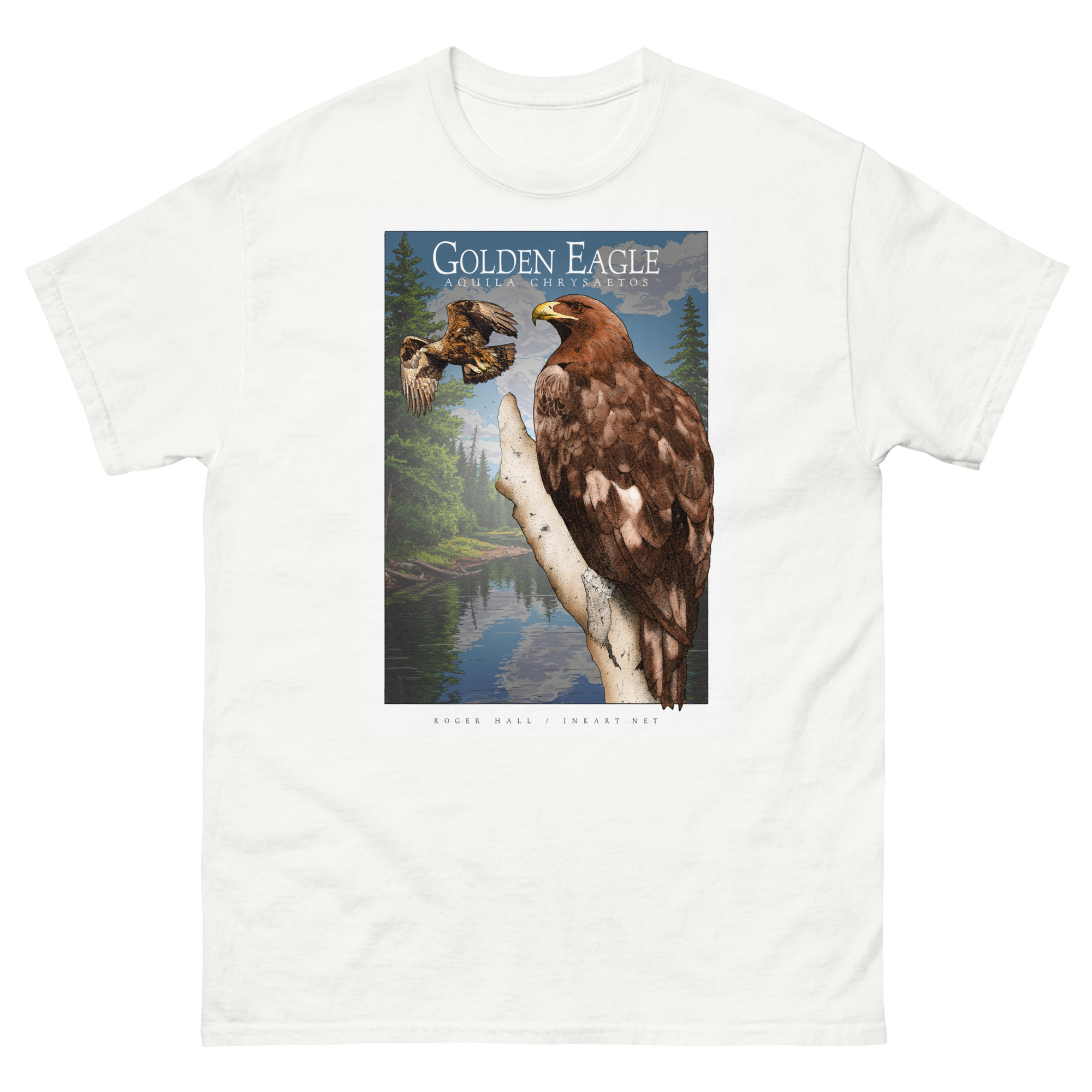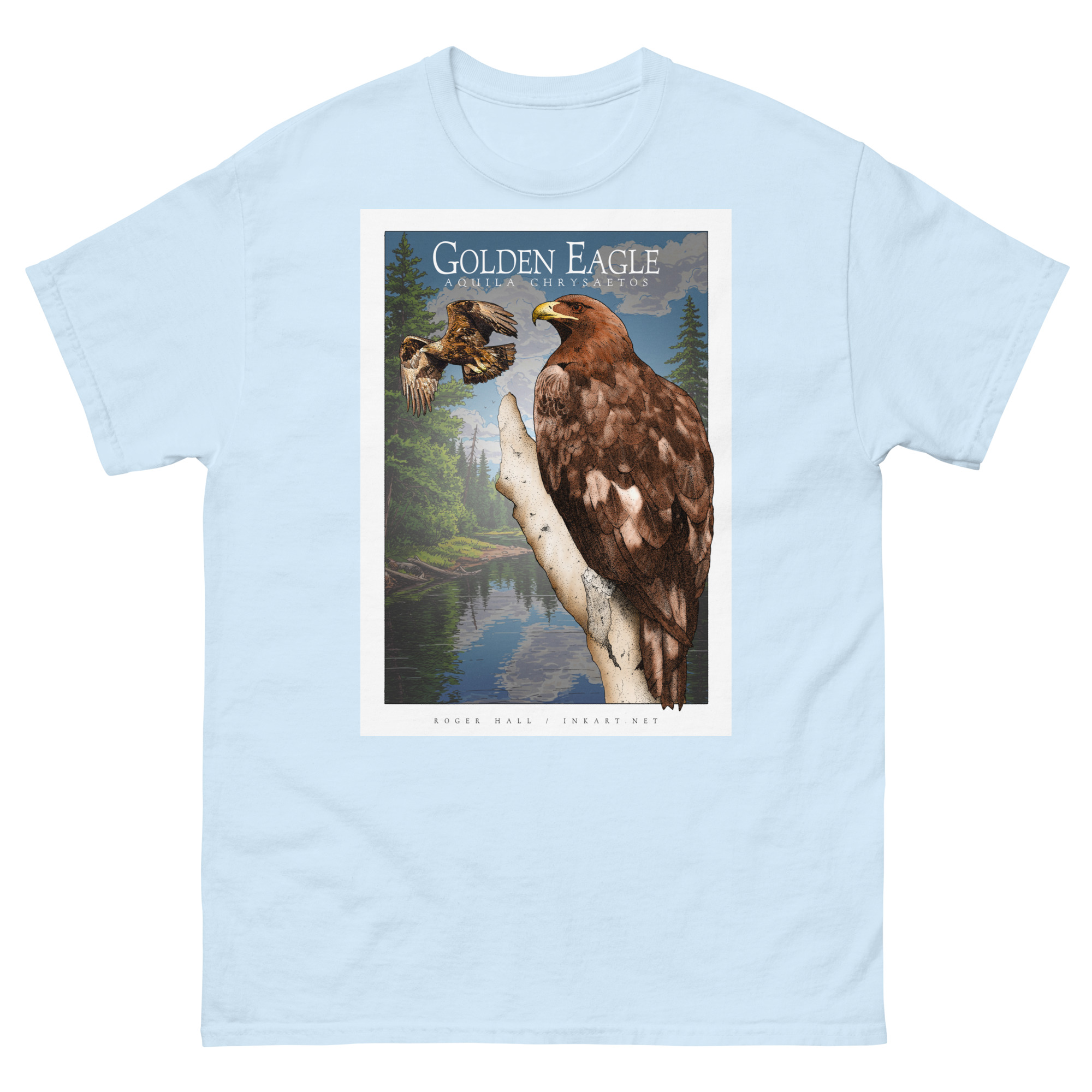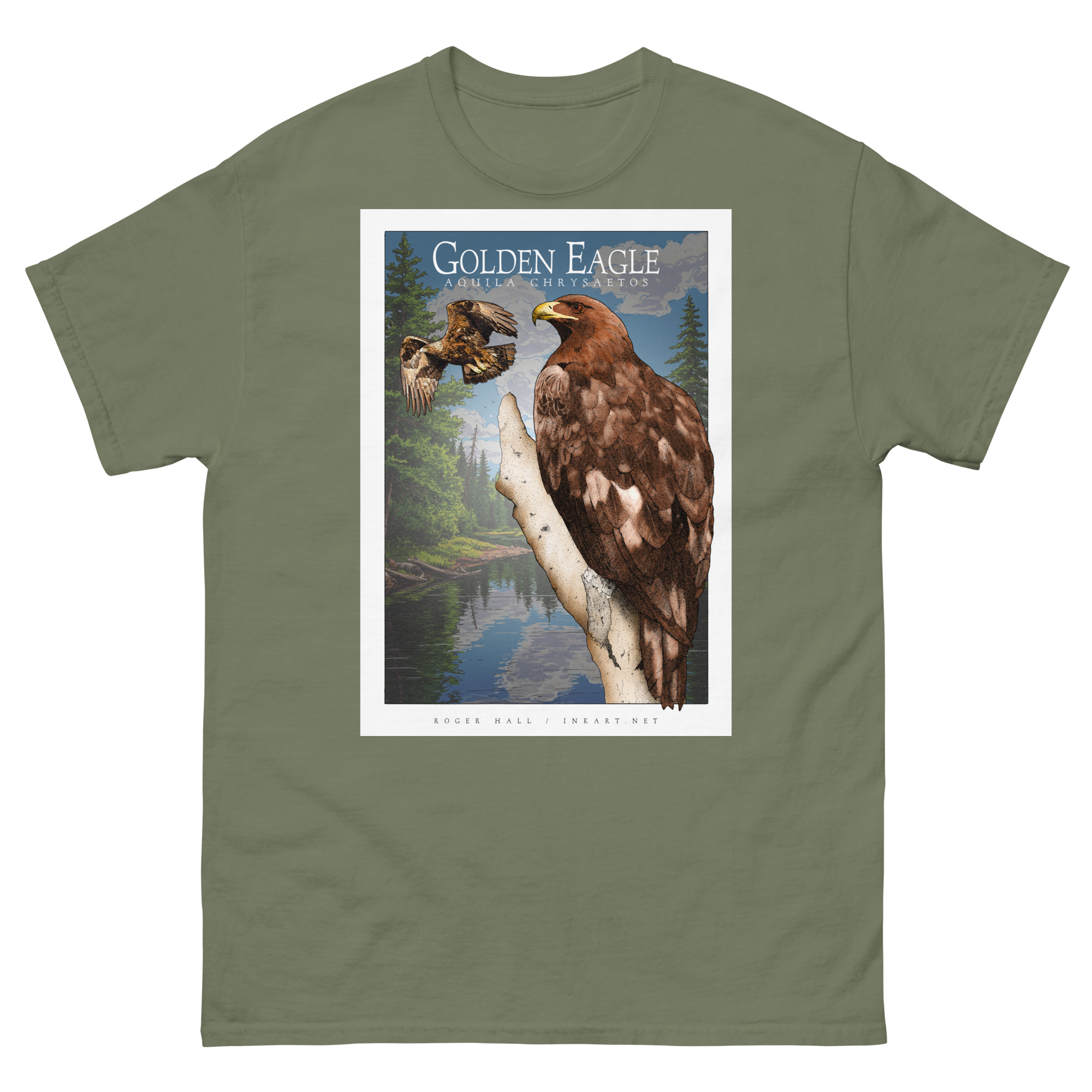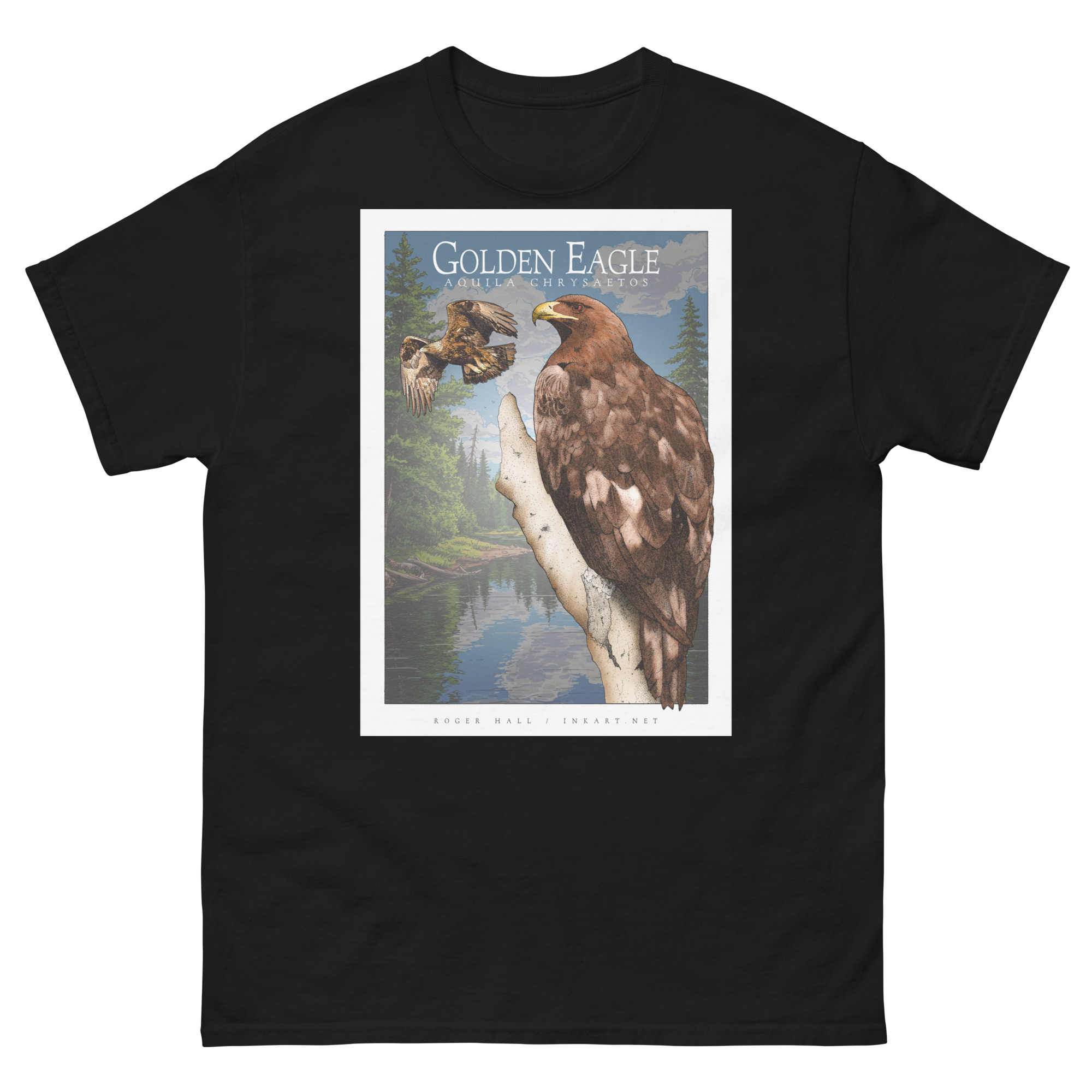 Scientifically accurate drawing of a Golden Eagle (Aquila chrysaetos.) The illustration of a printed on a high-quality 100% unisex cotton t-shirt.