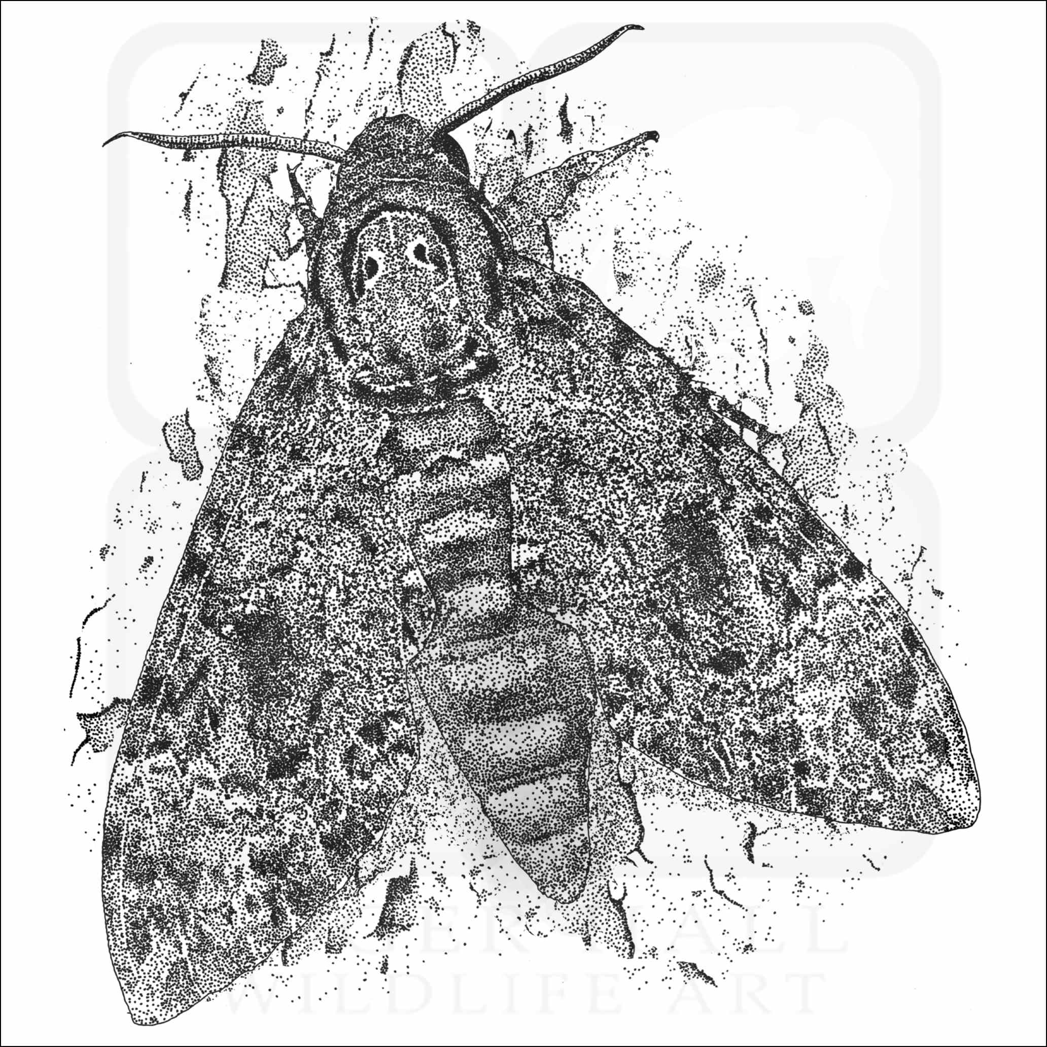 Fine art illustration of a Death’s Head Hawkmoth (Acherontia lachesis.)
