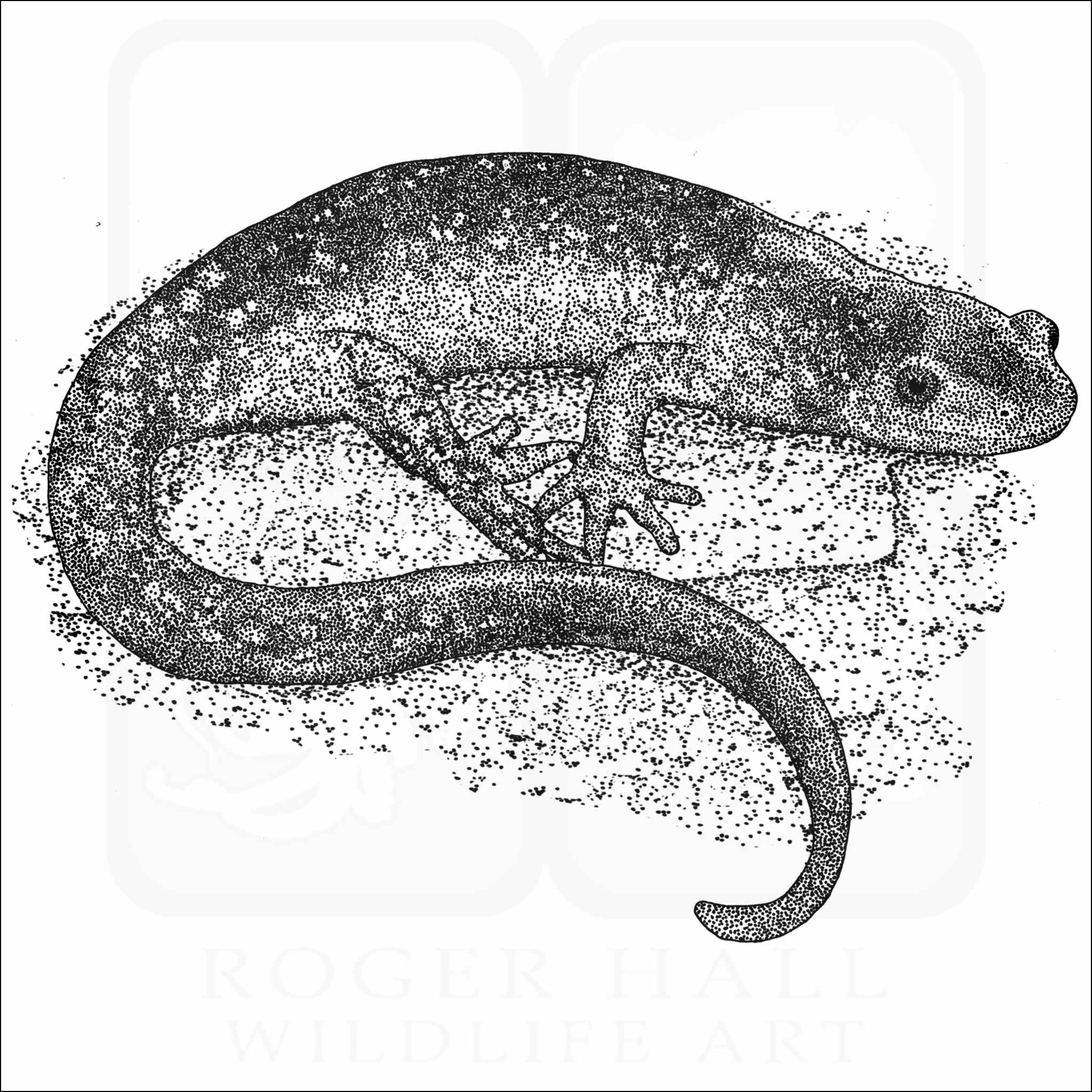 Fine art illustration of a Jefferson Salamander (Ambystoma jeffersonianum.) The illustration is available in black and white or color