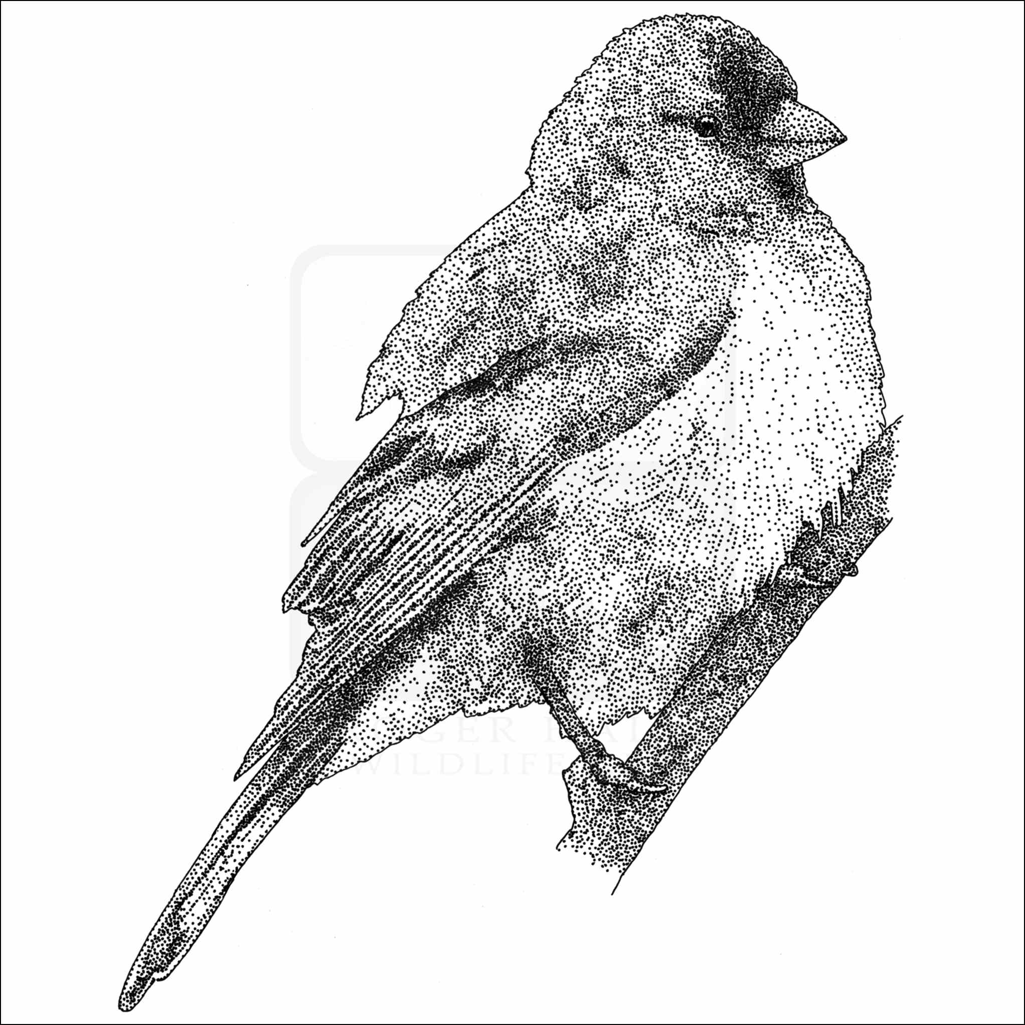 Tags: animal renderings, clip art, fine art print, image, line art, pen and ink, picture, realistic drawing, scientific illustration, sketch, Spinus lawrencei, stipple, wildlife art