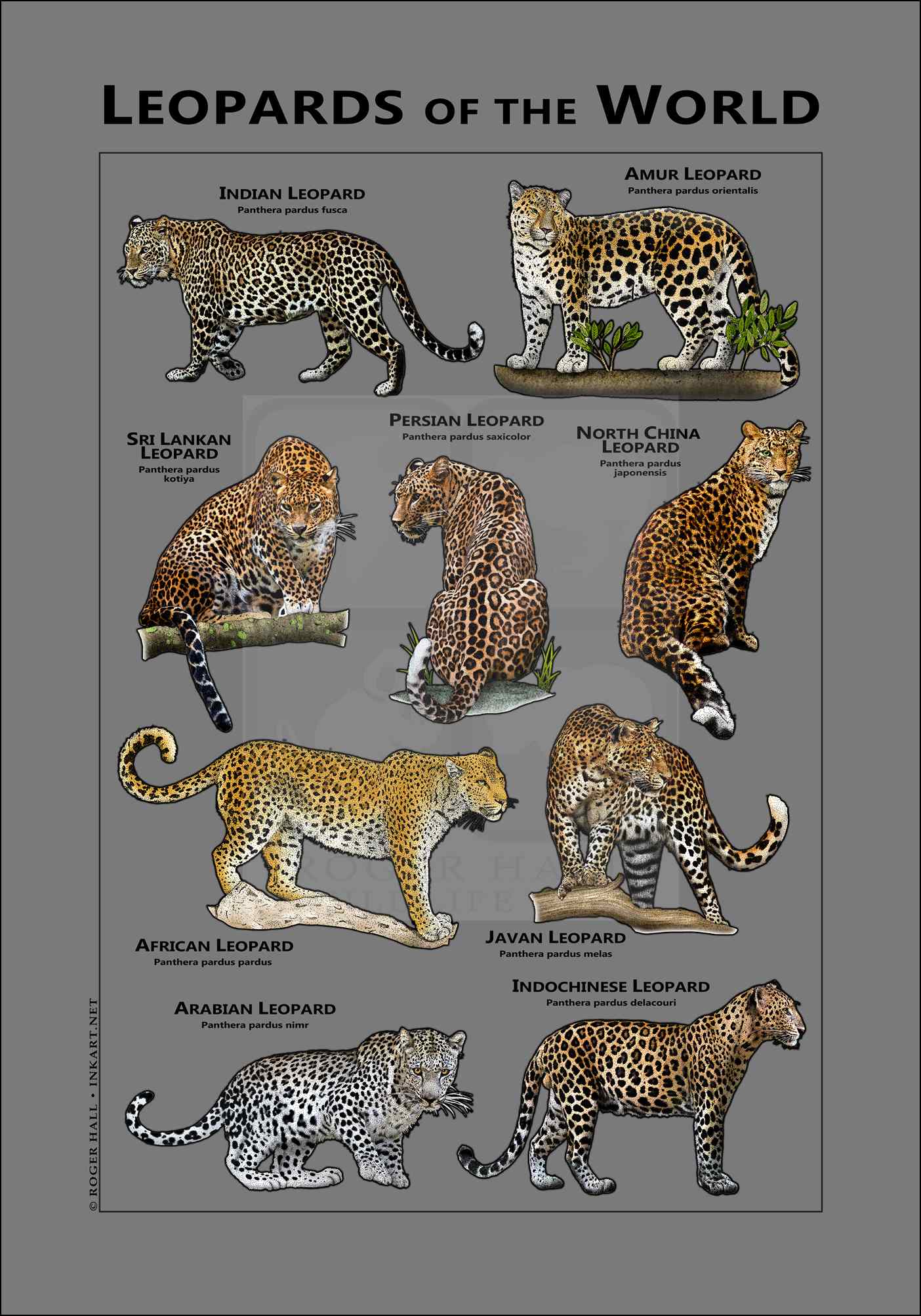 There are nine extant species of Panthera Pardus living today. This poster features high quality illustrations which are also scientifically accurate.