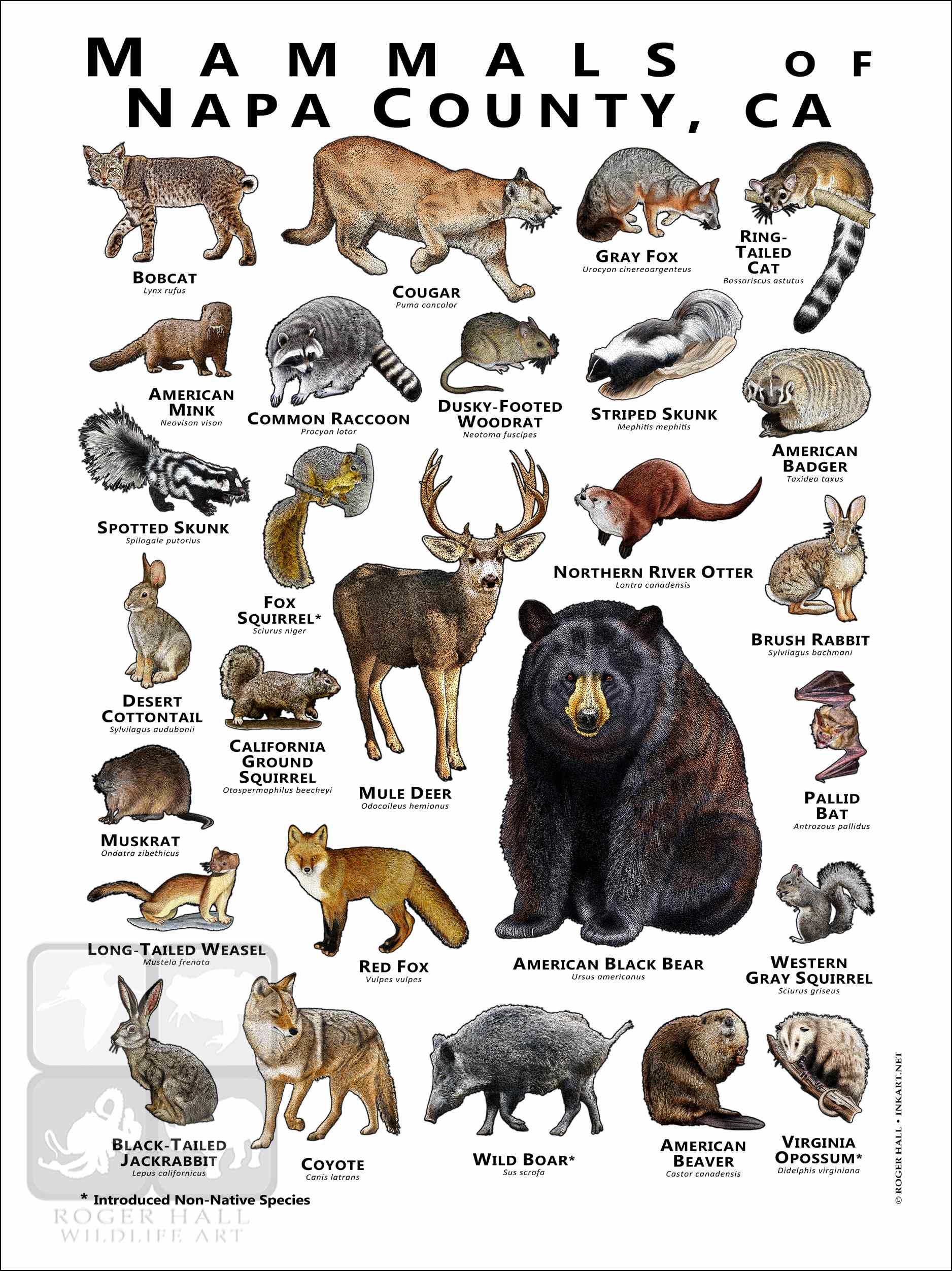 Napa County is located in the San Francisco Bay Area’s North Bay, about 45 minutes north of San Francisco. In the county are several different natural environments, including redwood forests, oak woodlands, wetlands and riparian areas. These areas provide excellent habitat for many different species of mammal.