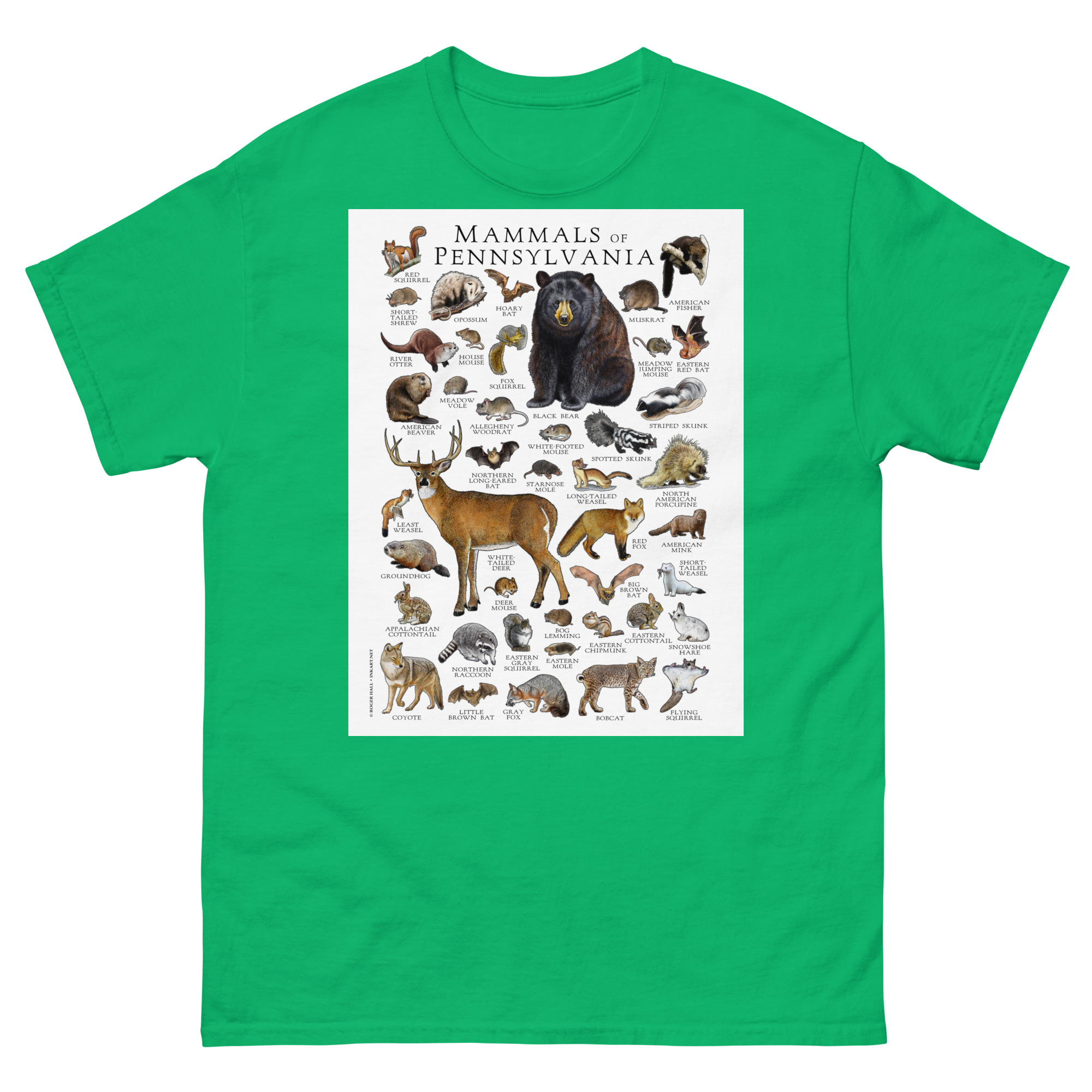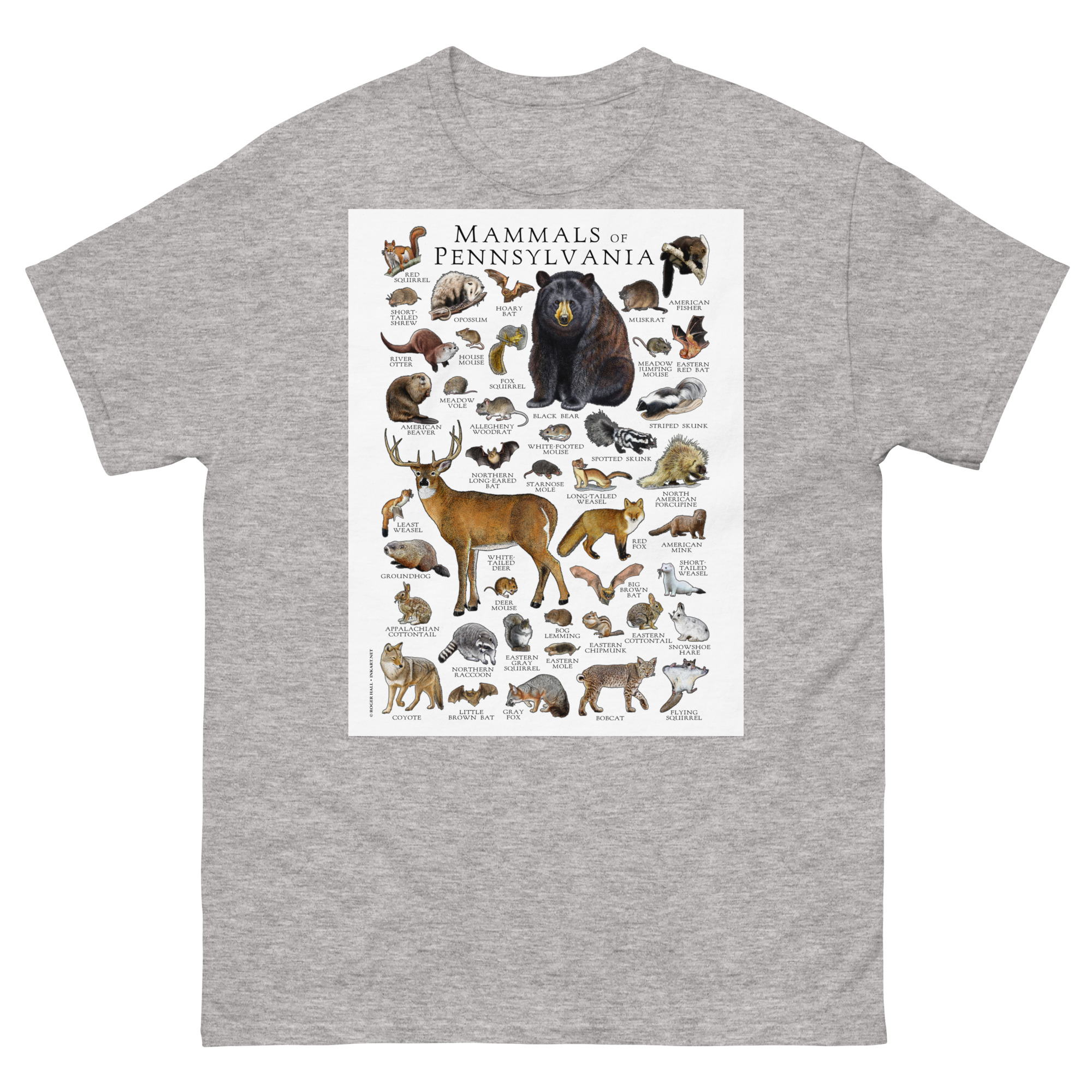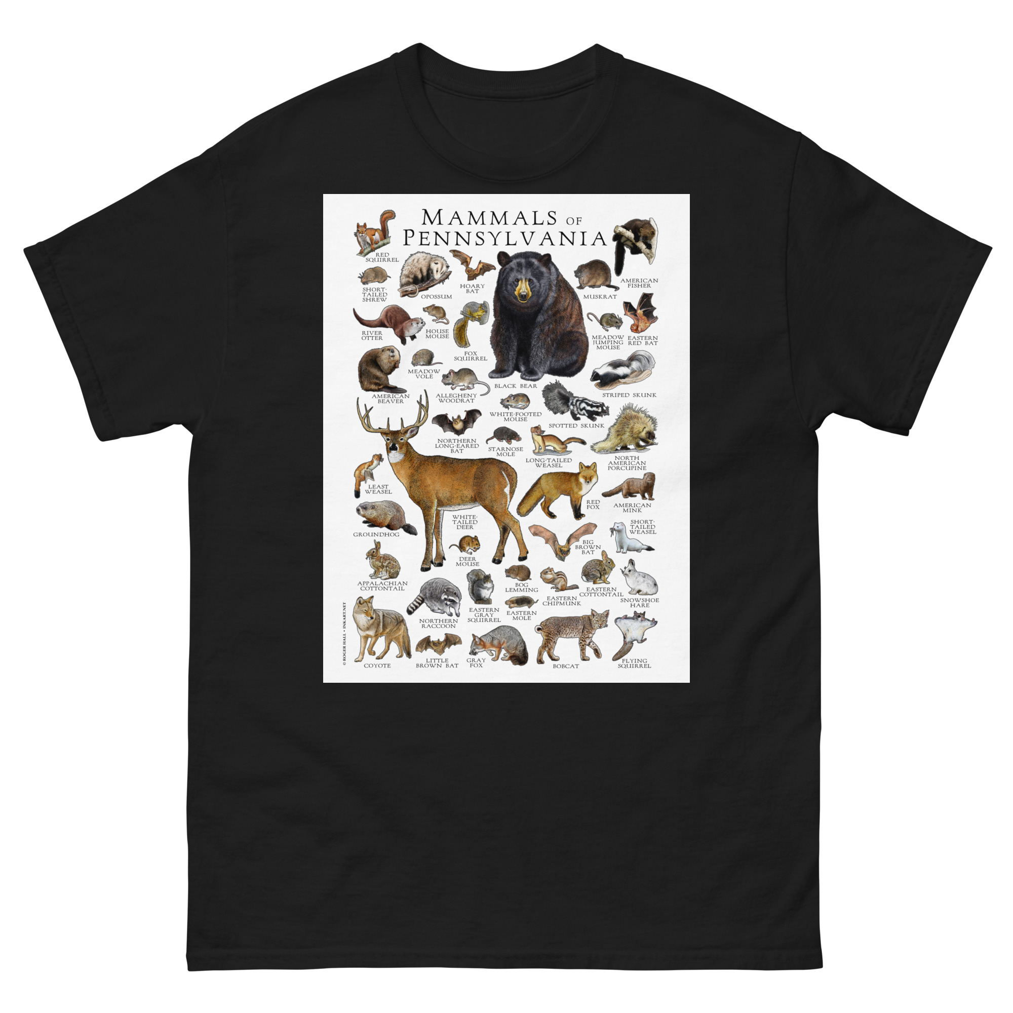 The state of Pennsylvania is home to many amazing mammals. On this layout are many of them, including all genus currently living and native to the state printed on a high-quality 100% men’s cotton t-shirt.