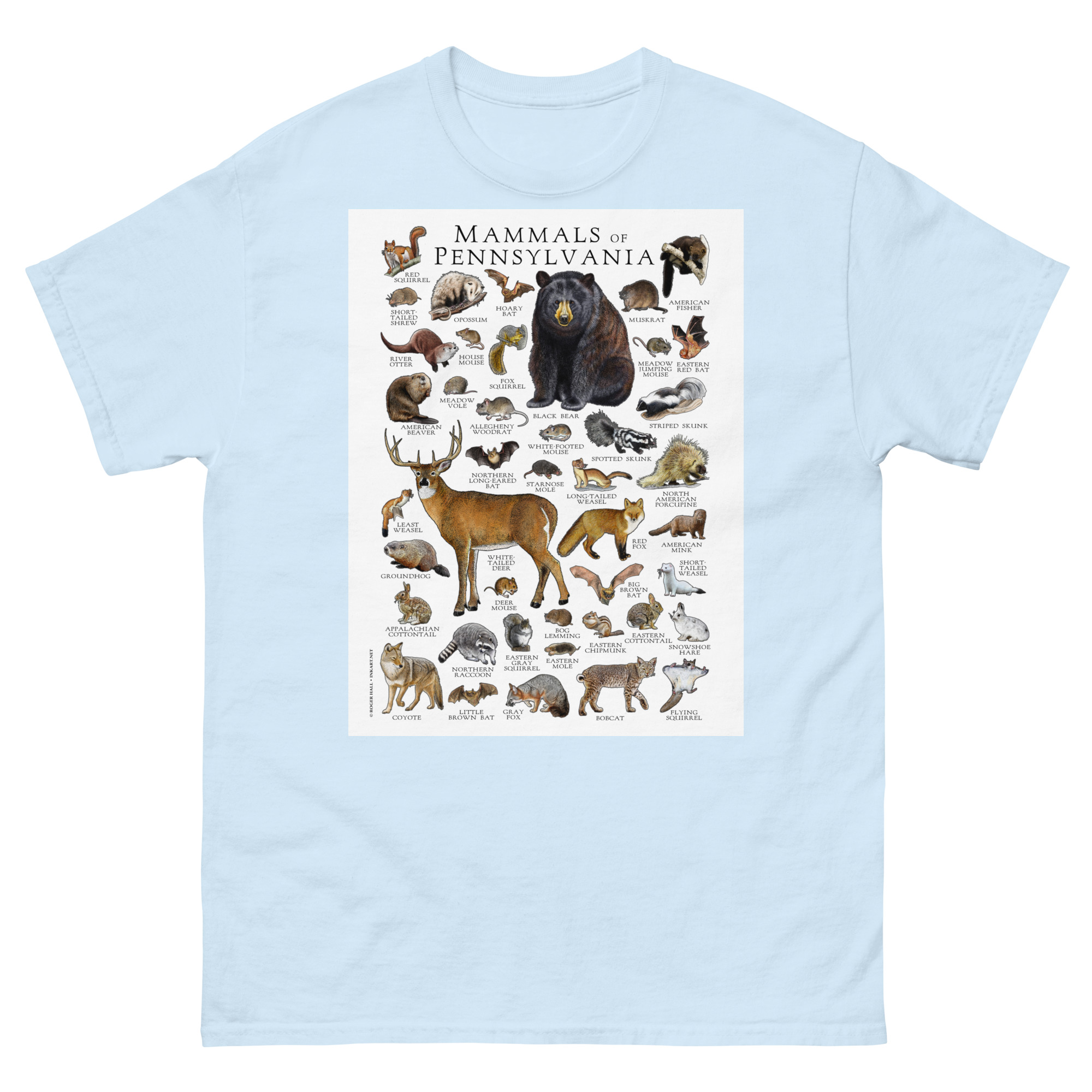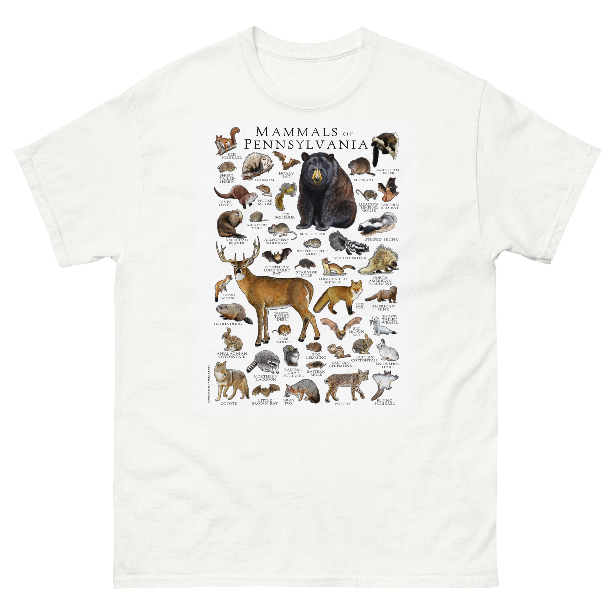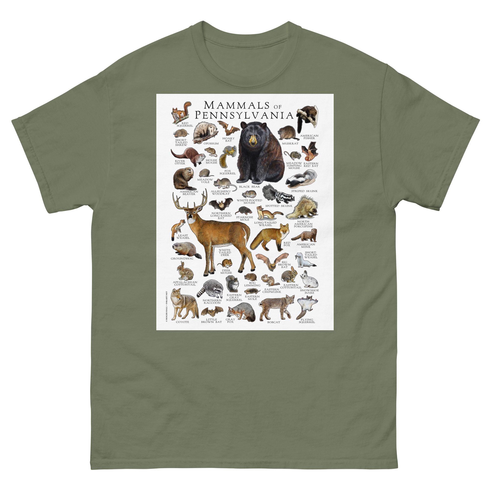 The state of Pennsylvania is home to many amazing mammals. On this layout are many of them, including all genus currently living and native to the state printed on a high-quality 100% men’s cotton t-shirt.