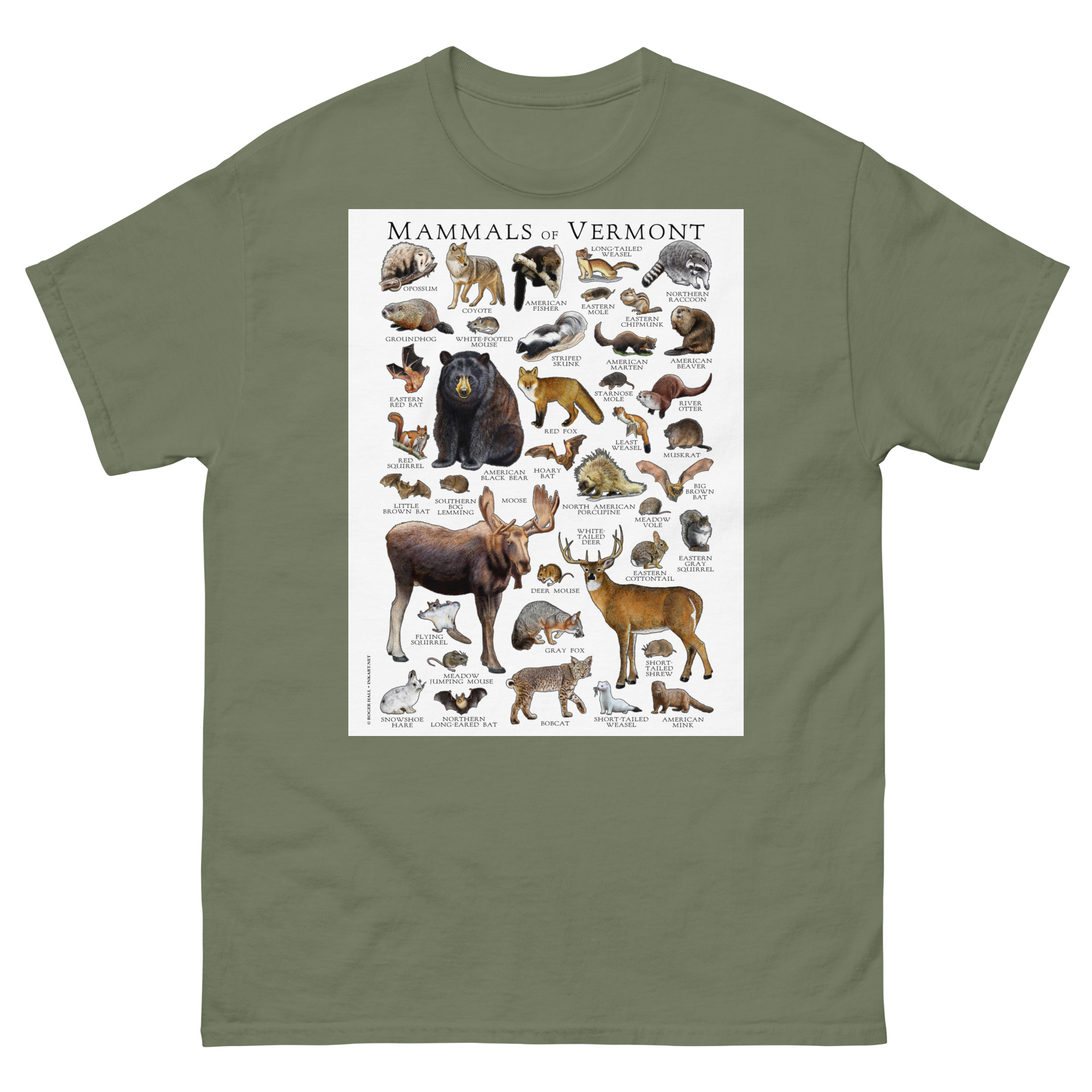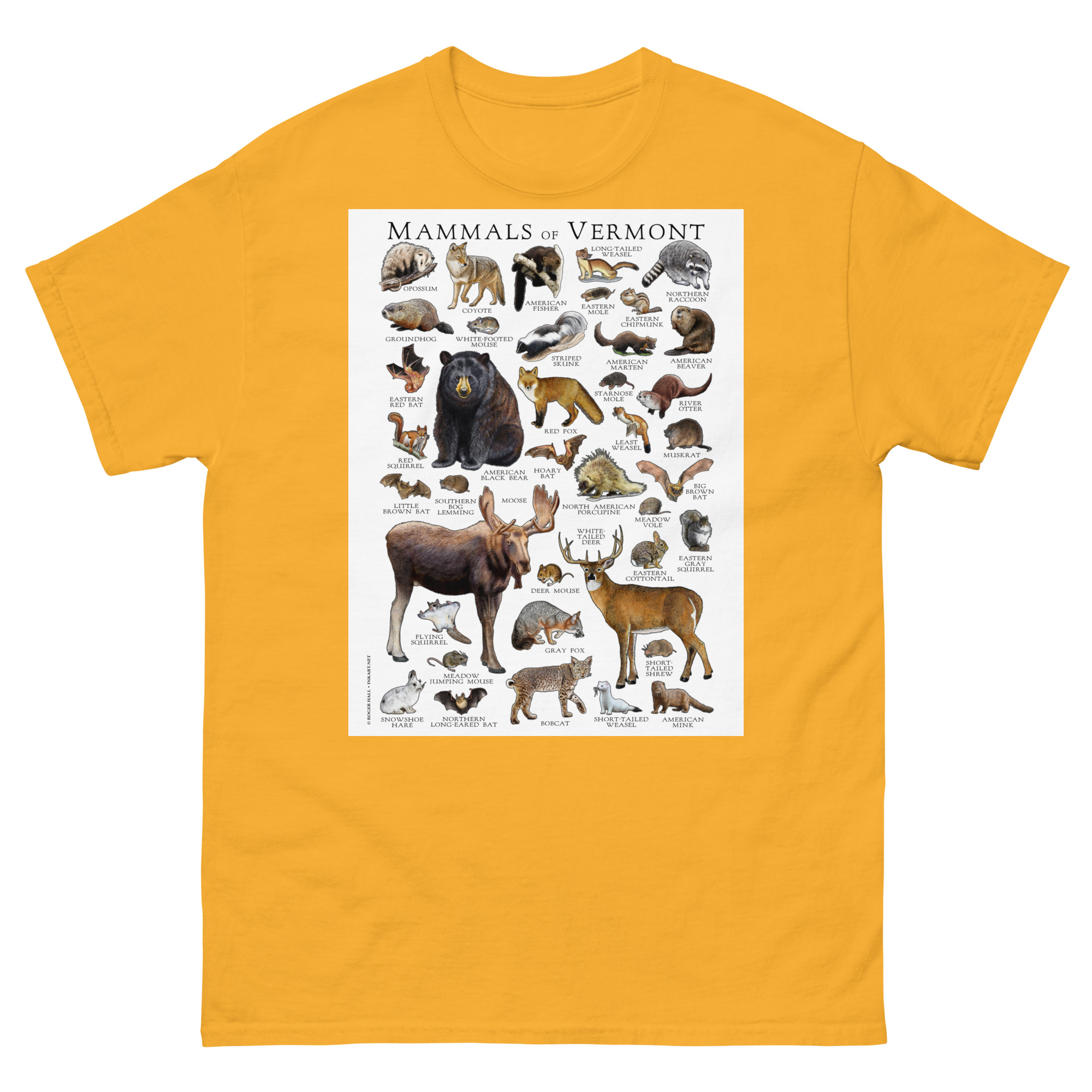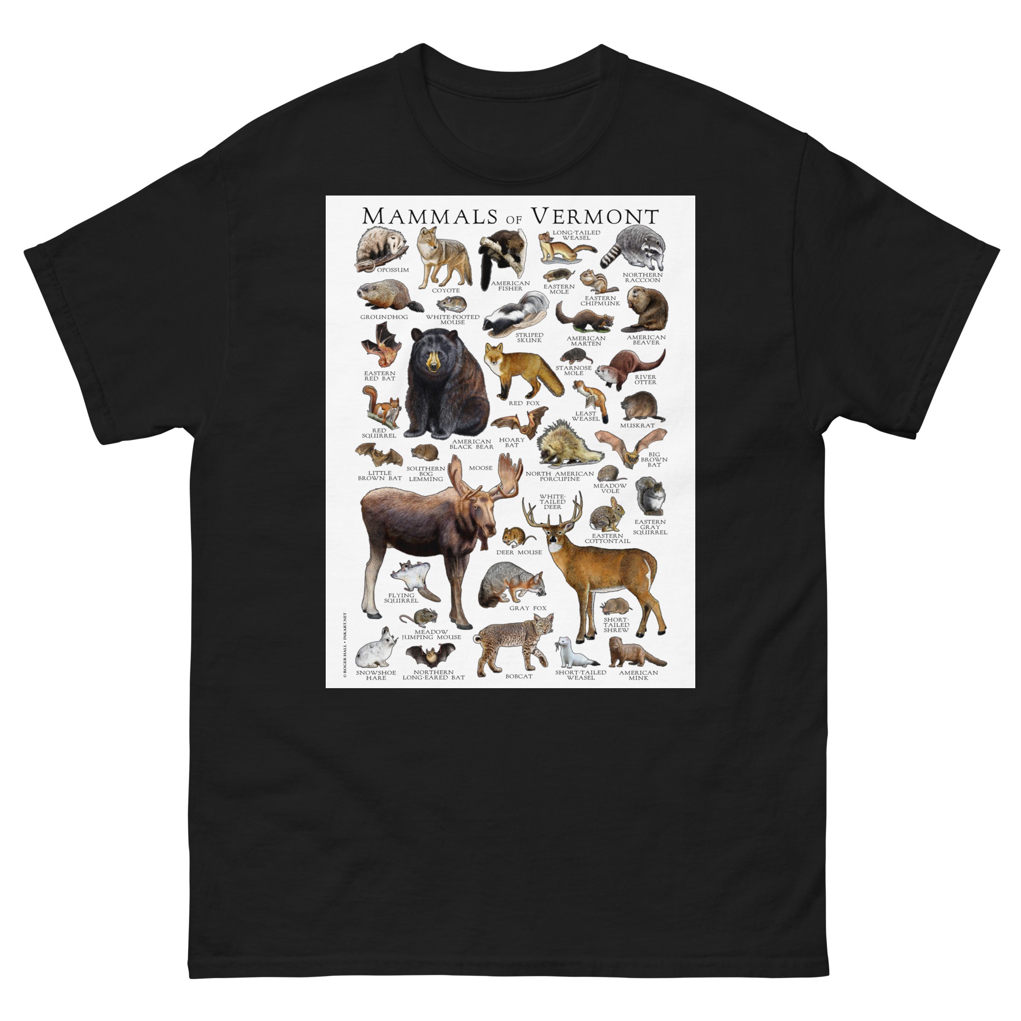 The state of Vermont is home to many amazing mammals. On this layout are many of them, including all genus currently living and native to the state printed on a high-quality 100% men’s cotton t-shirt.