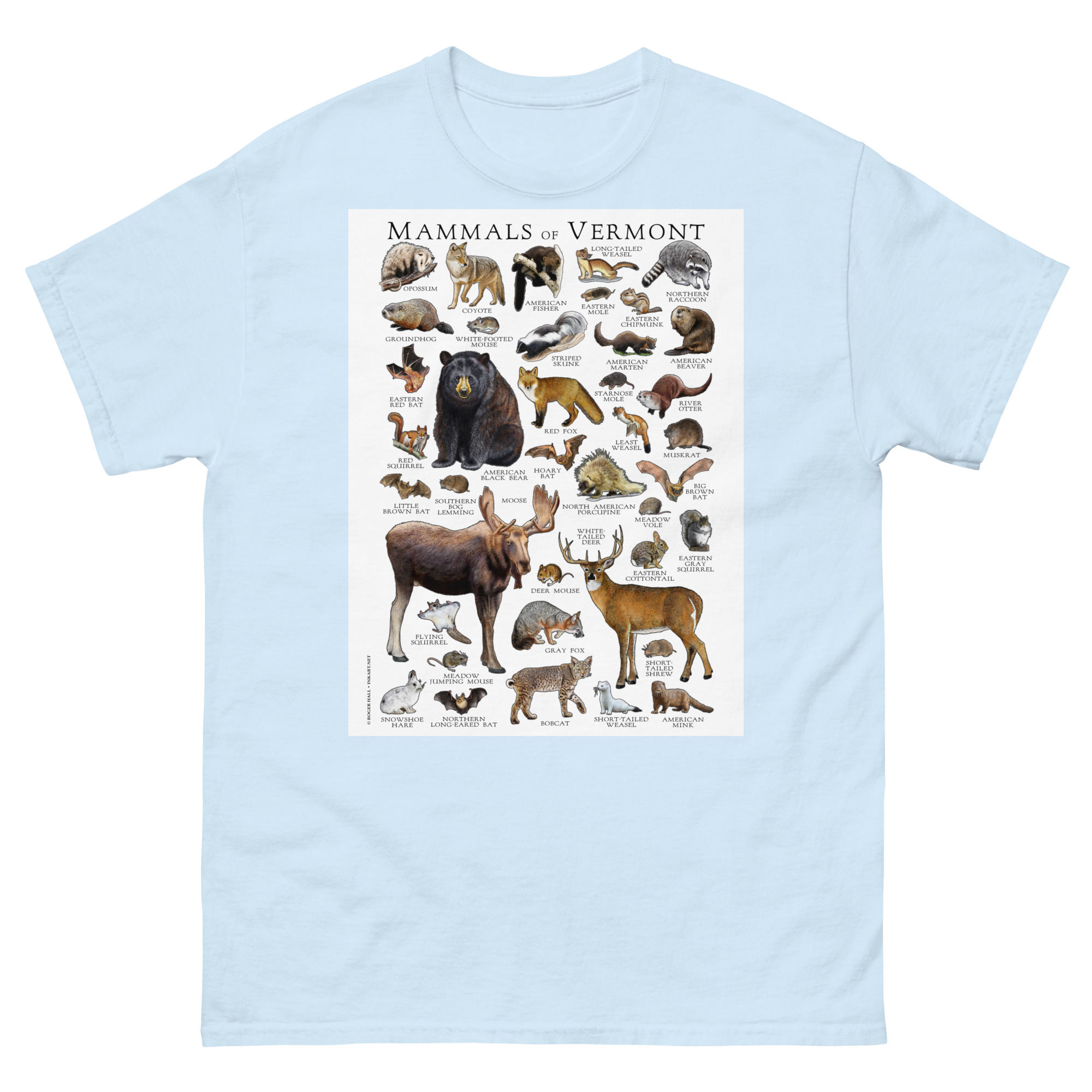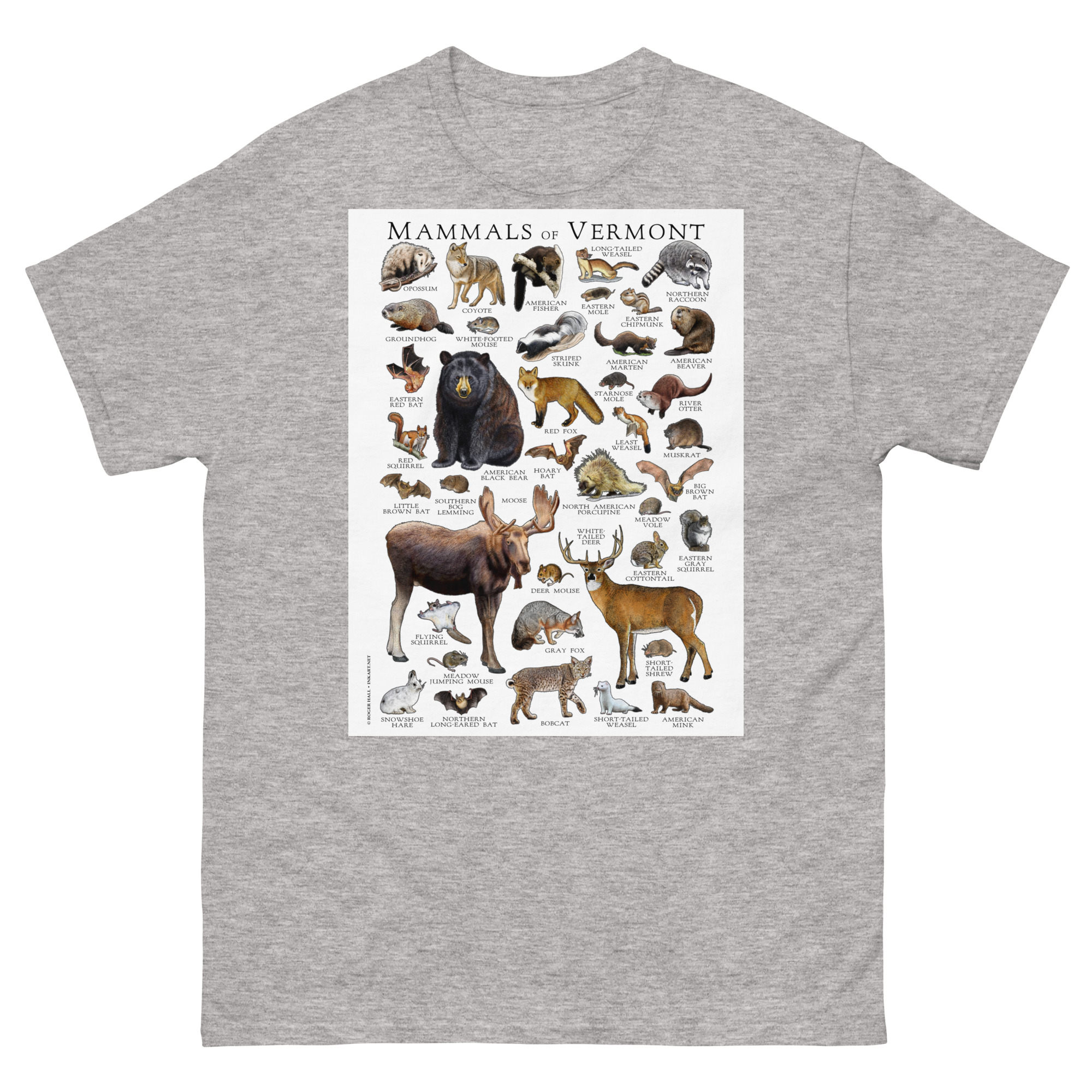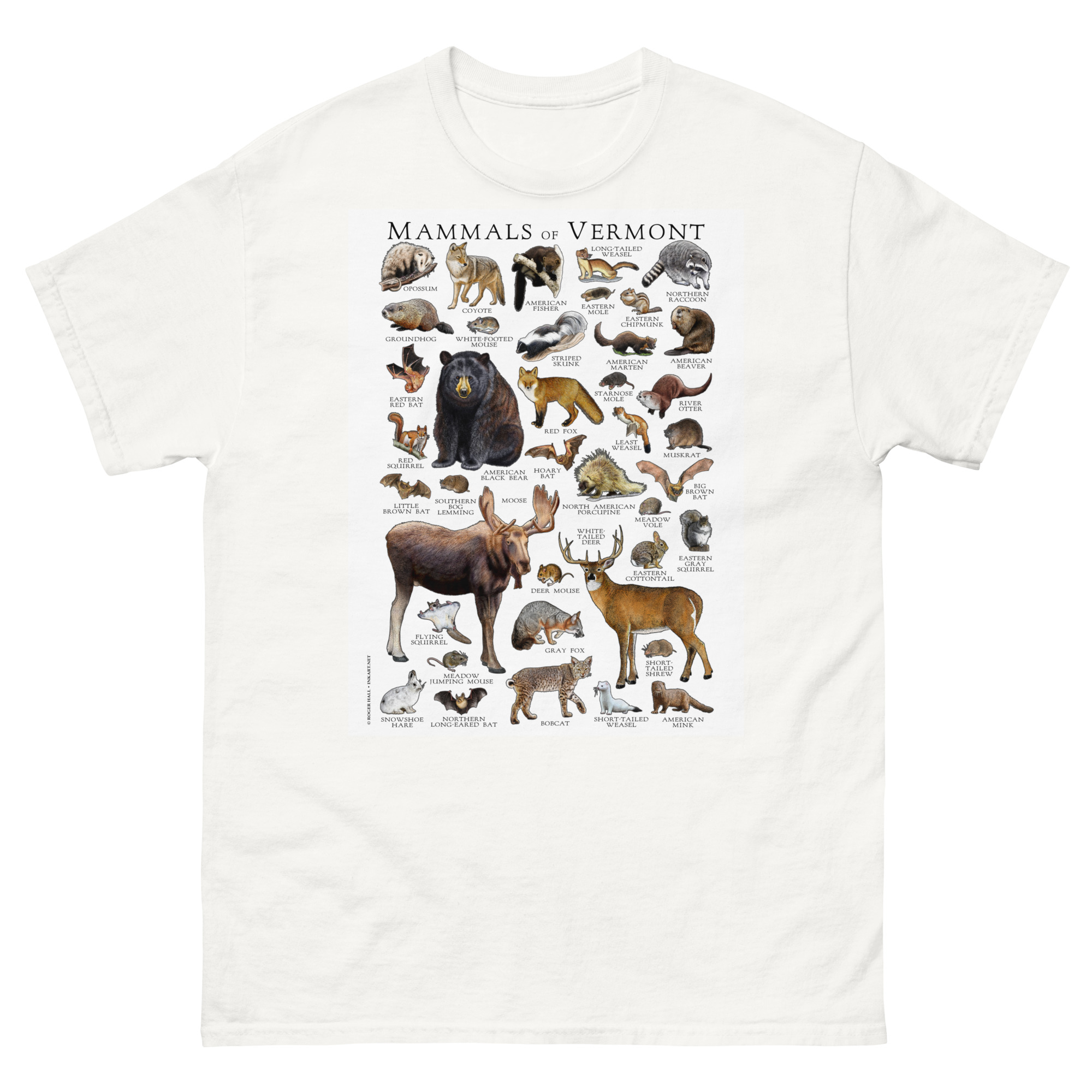 The state of Vermont is home to many amazing mammals. On this layout are many of them, including all genus currently living and native to the state printed on a high-quality 100% men’s cotton t-shirt.