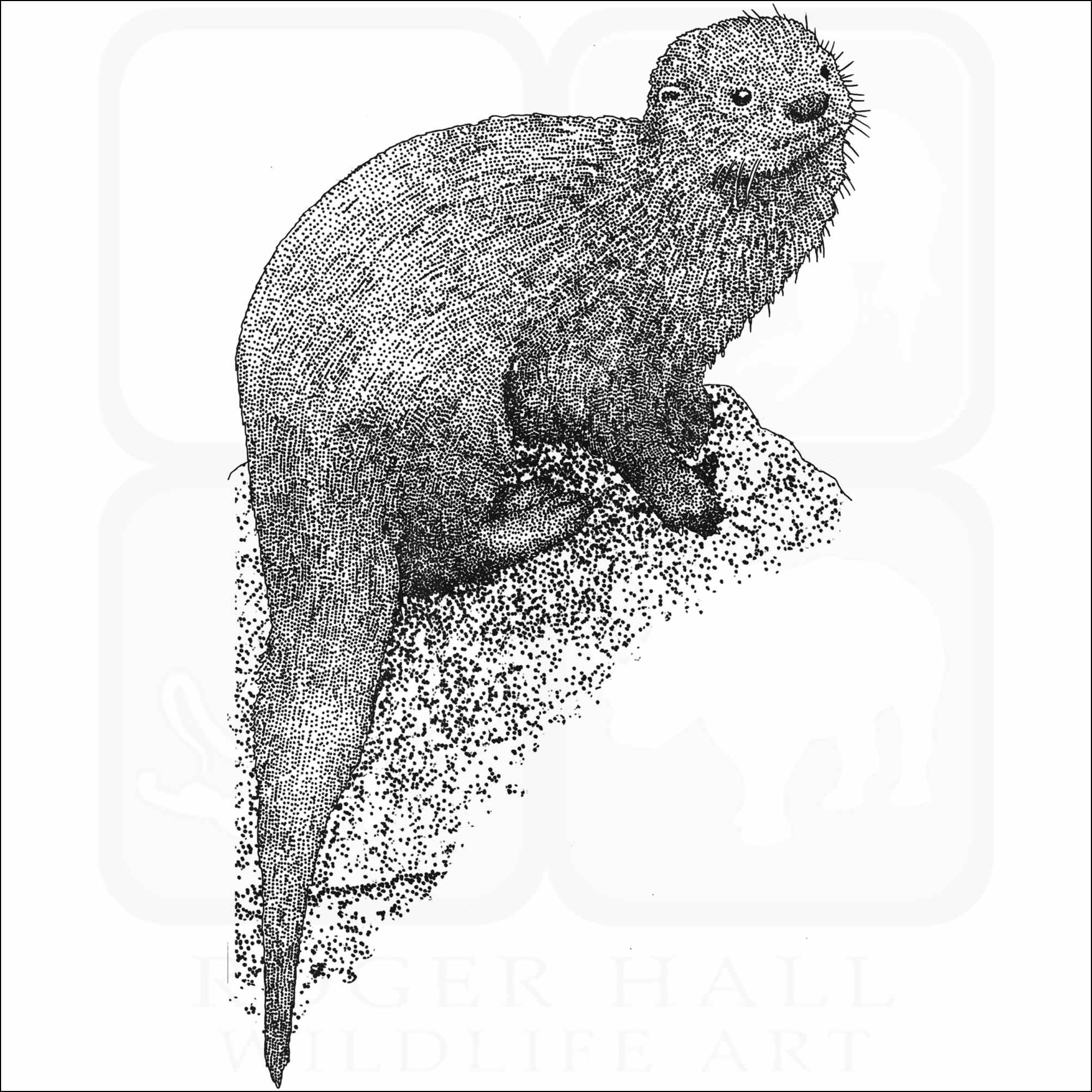 Fine art illustration of a Marine Otter (Lontra felina.) The illustration is available in black and white or color.