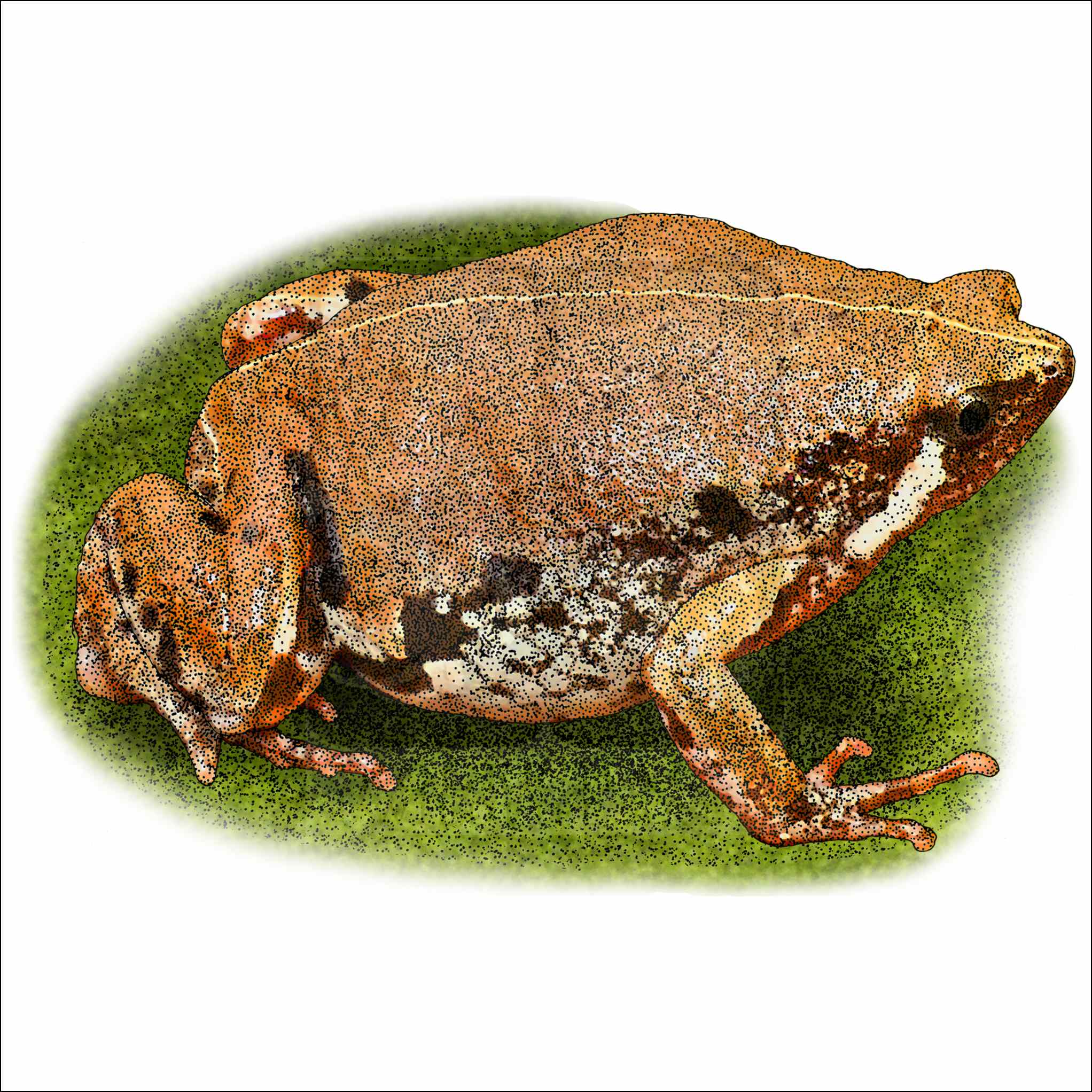 Fine art illustration of a Mexican Sheep Frog or Mexican Narrow-Mouthed Toad (Hypopachus variolosus.) The illustration is available in black and white or color.
