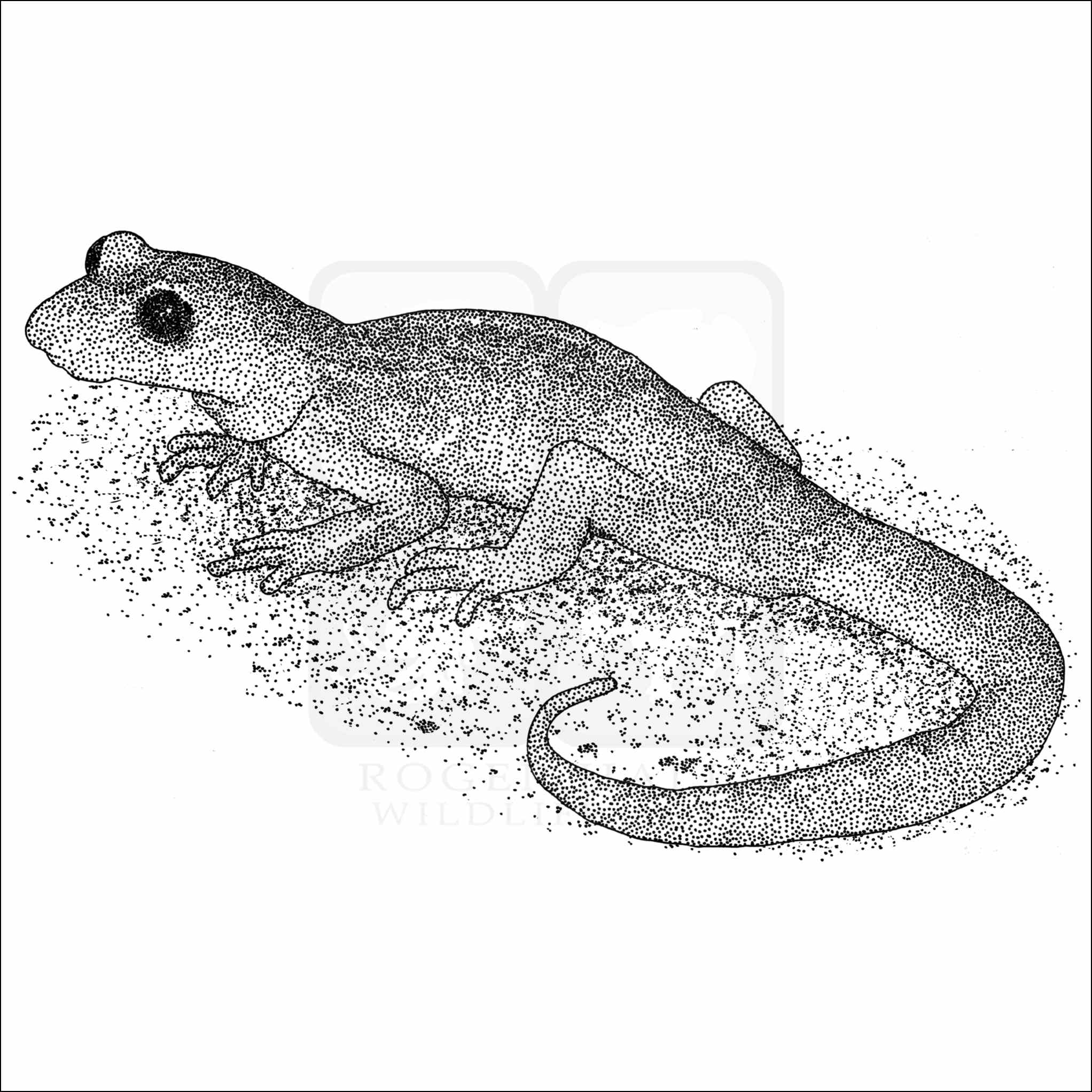 Fine art illustration of a Monterey Ensatina (Ensatina eschscholtzii eschscholtzii.) The illustration is available in black and white or color