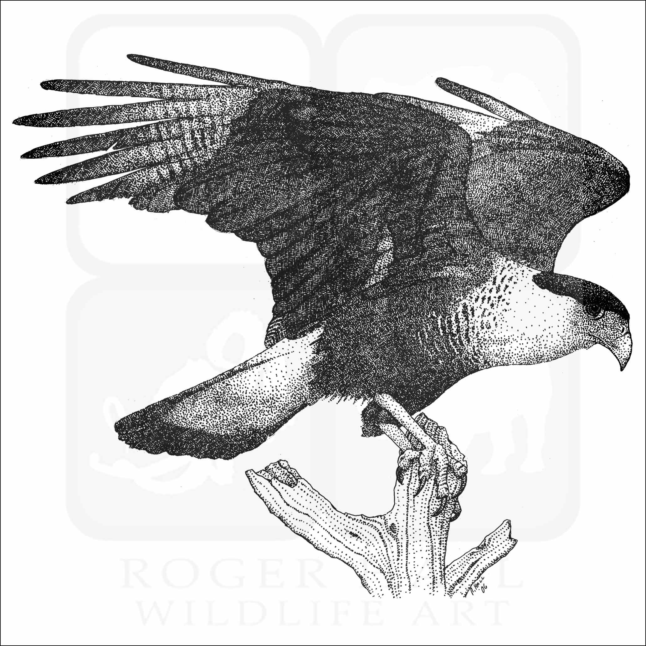 Fine art illustration of a Northern Crested Caracara (Caracara cheriway.) The illustration is available in black and white or color.