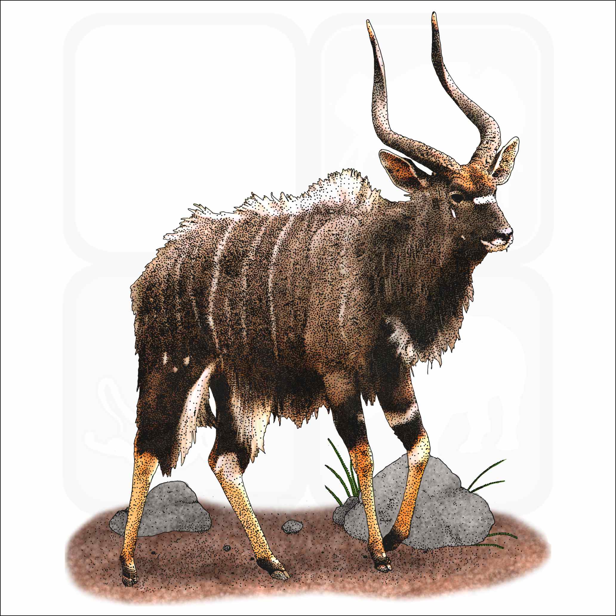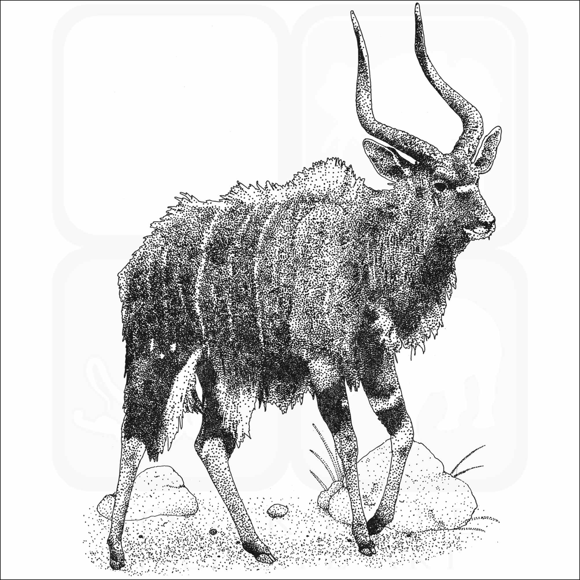 Fine art illustration of a Nyala (Tragelaphus angasii.) The illustration is available in black and white or color.