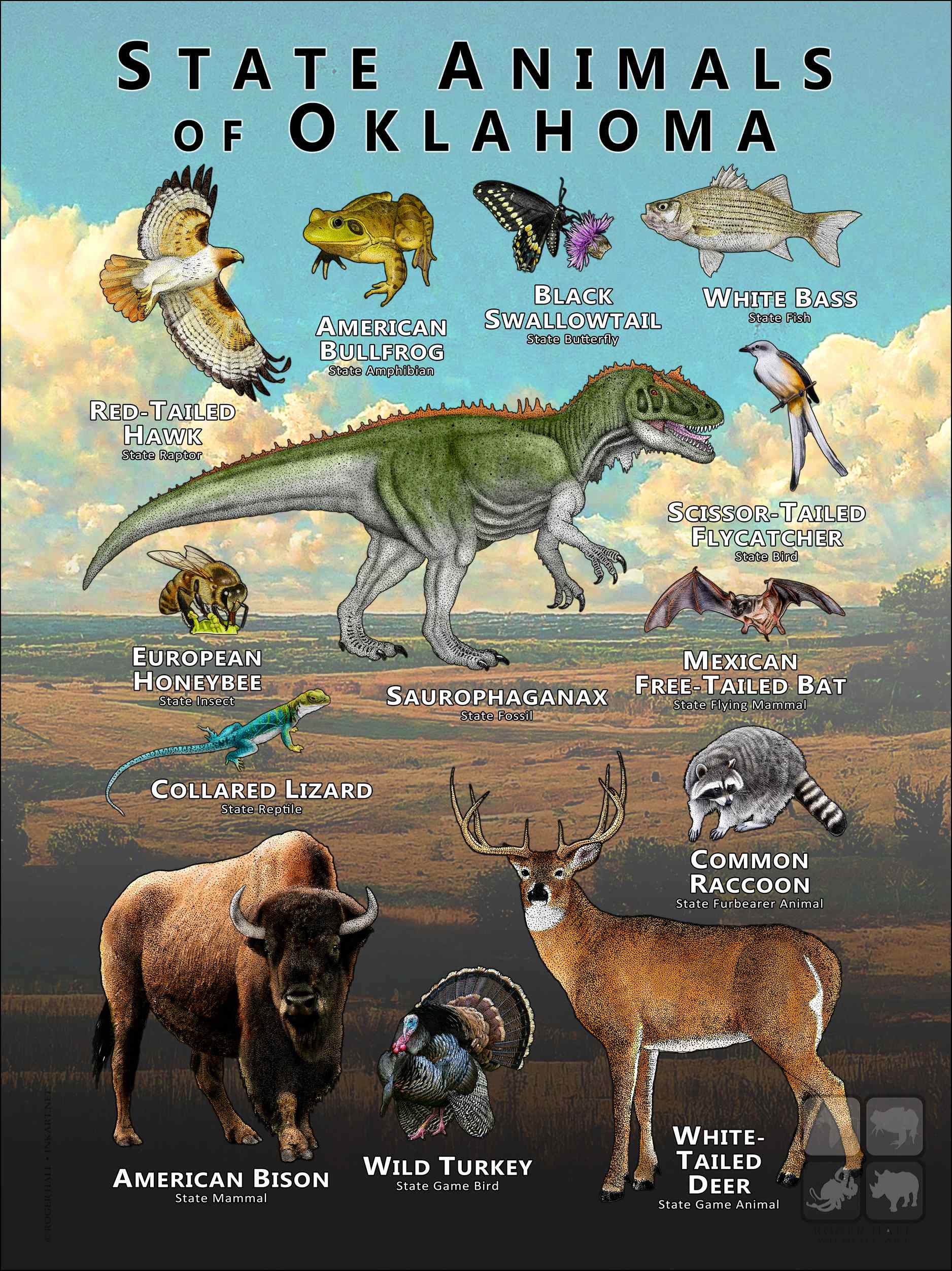 Oklahoma State Animals Poster Print