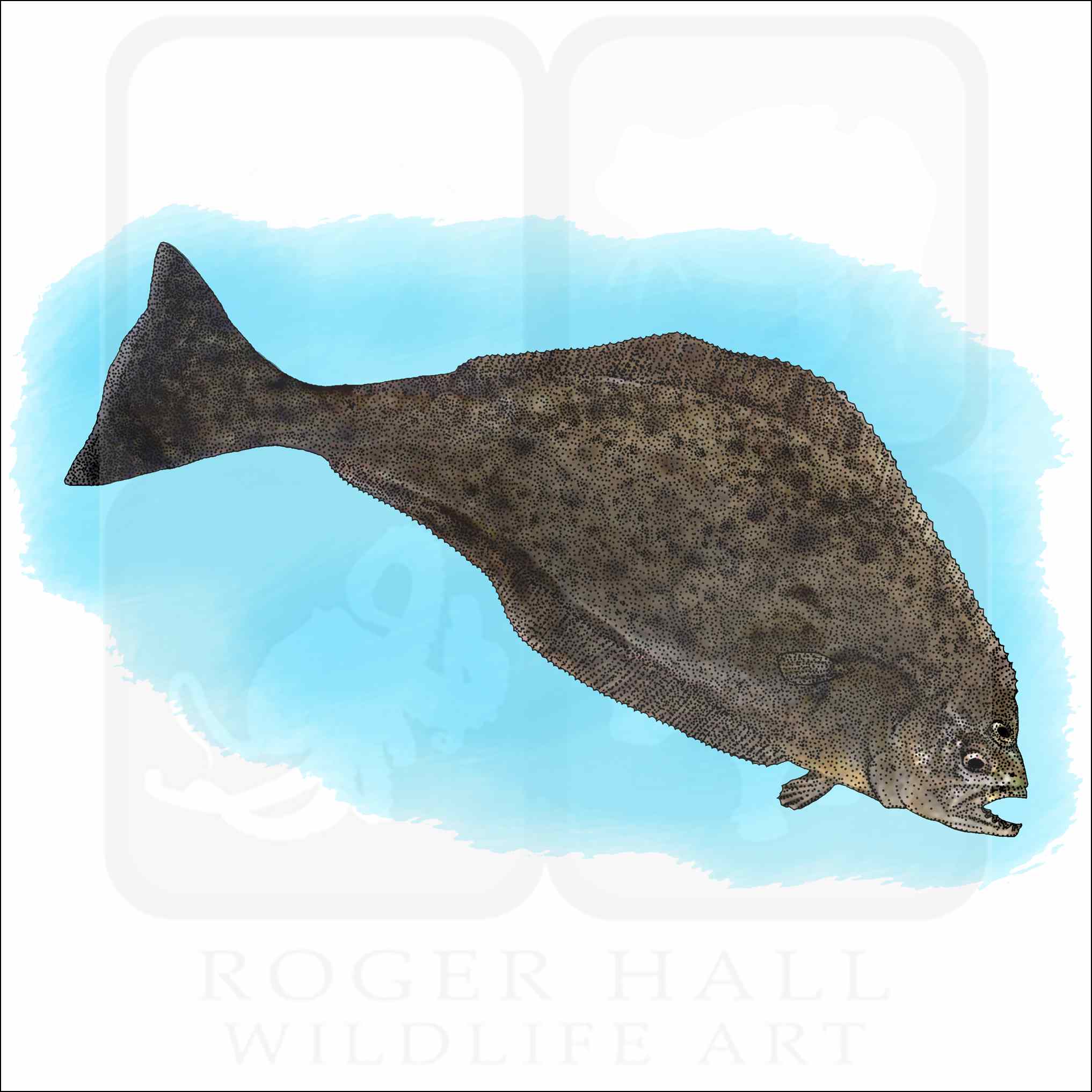 Fine art illustration of a Pacific Halibut (Hippoglossus stenolepis.)
