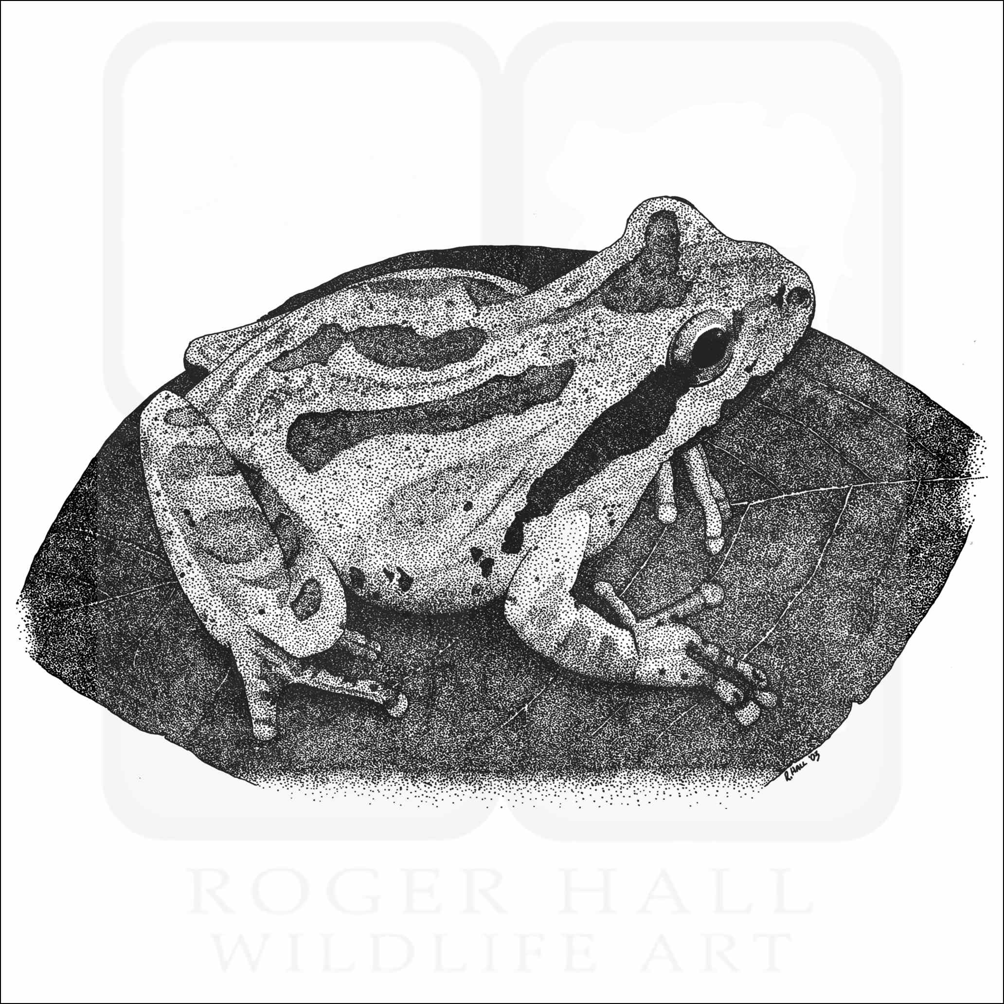 Fine art illustration of a Pacific Tree Frog (Hyla regilla.) The illustration is available in black and white or color.