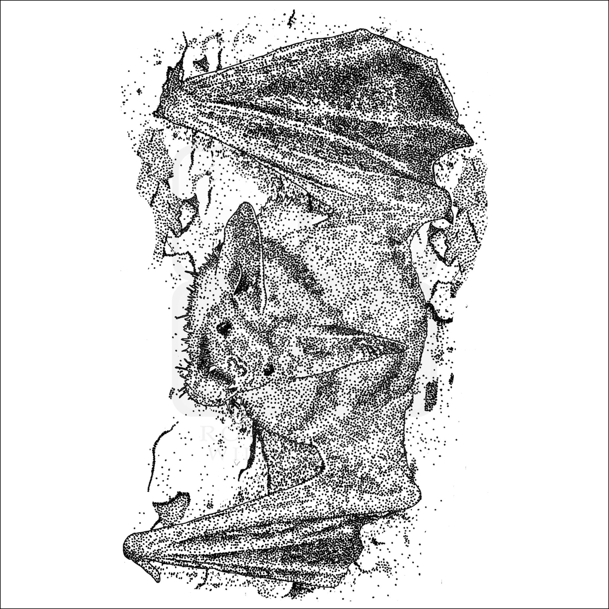 Fine art illustration of a Pallid Bat (Antrozous pallidus.) The illustration is available in black and white or color.