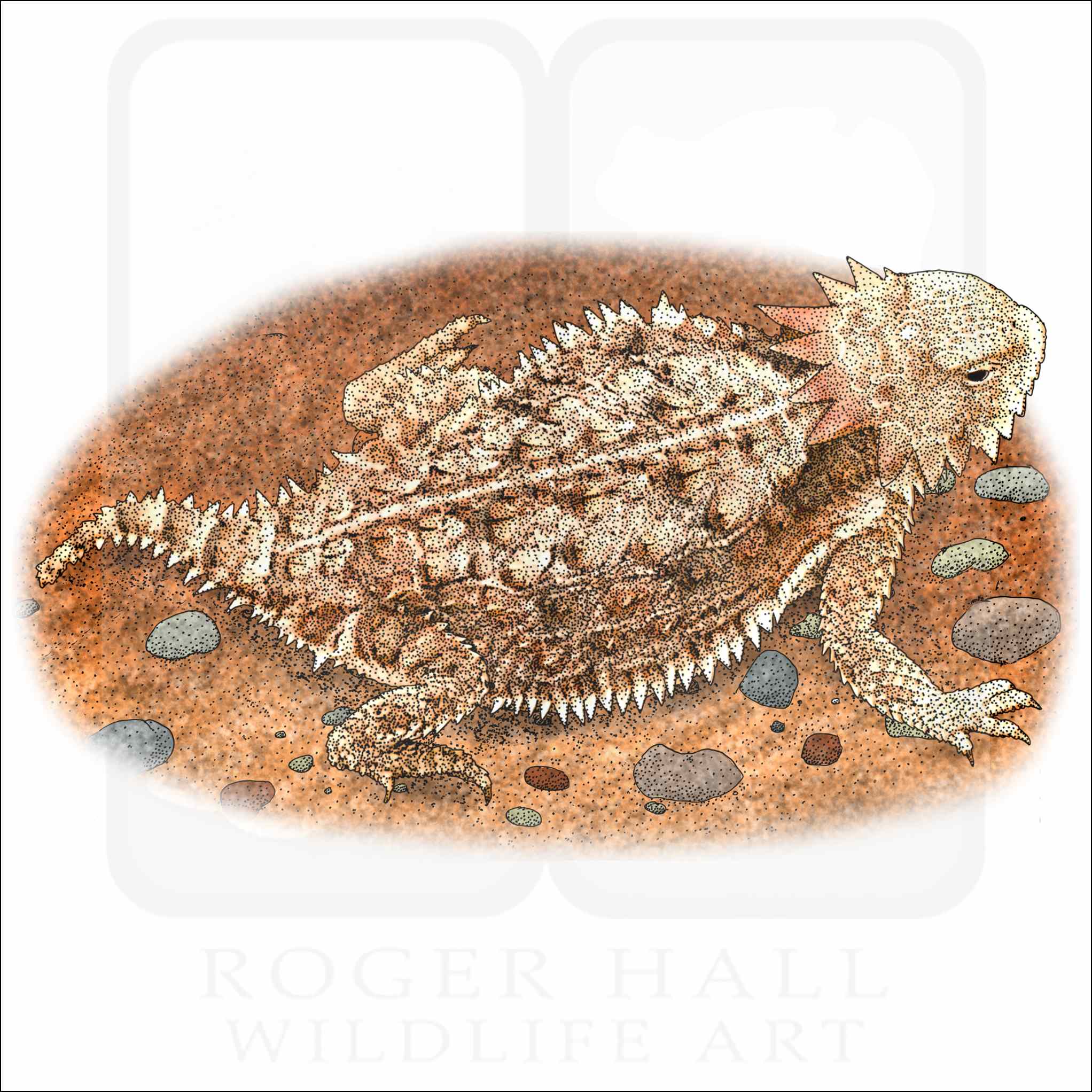 Fine art illustration of a Regal Horned Lizard (Phrynosoma solare.)