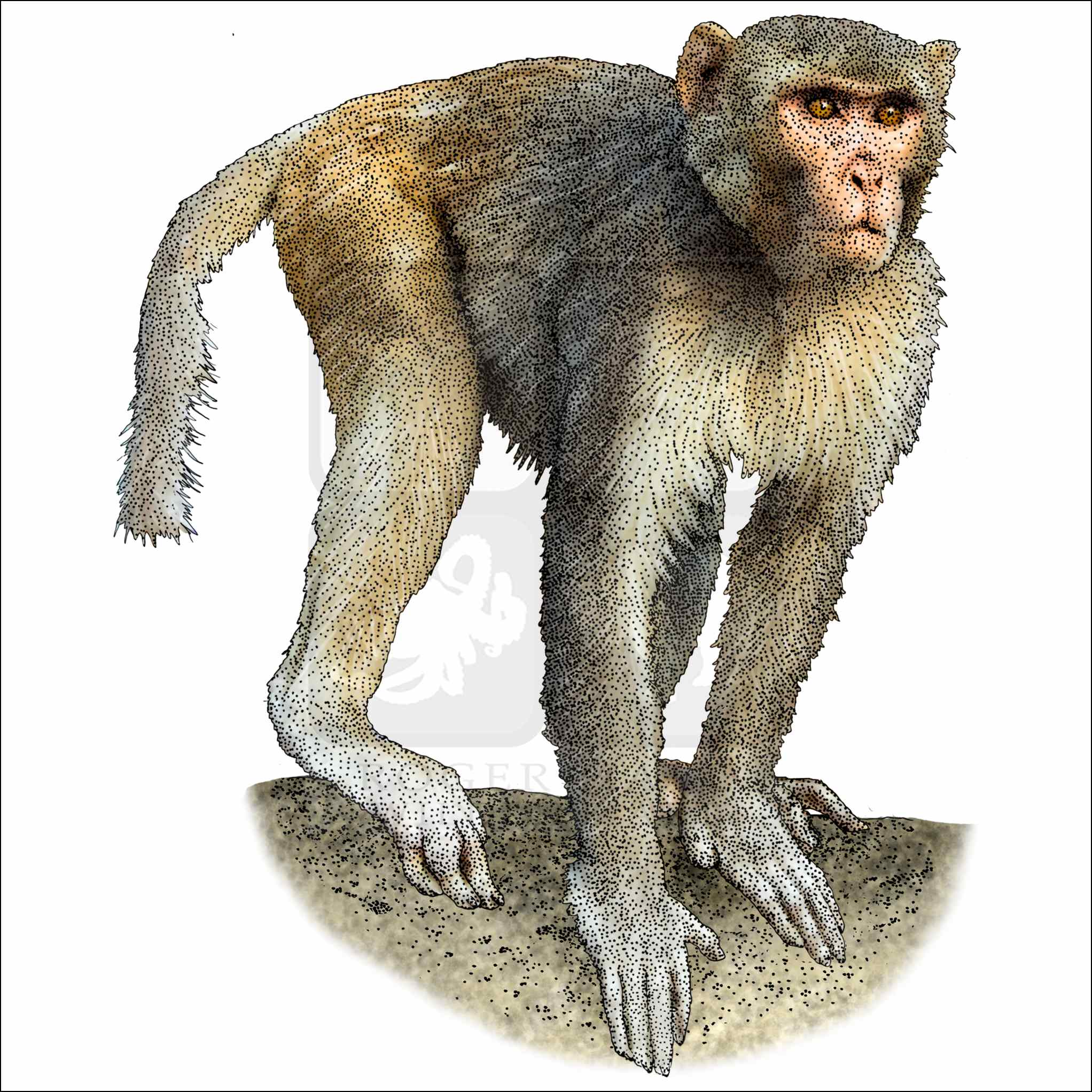 Fine art illustration of a Rhesus Macaque (Macaca mulatta.)