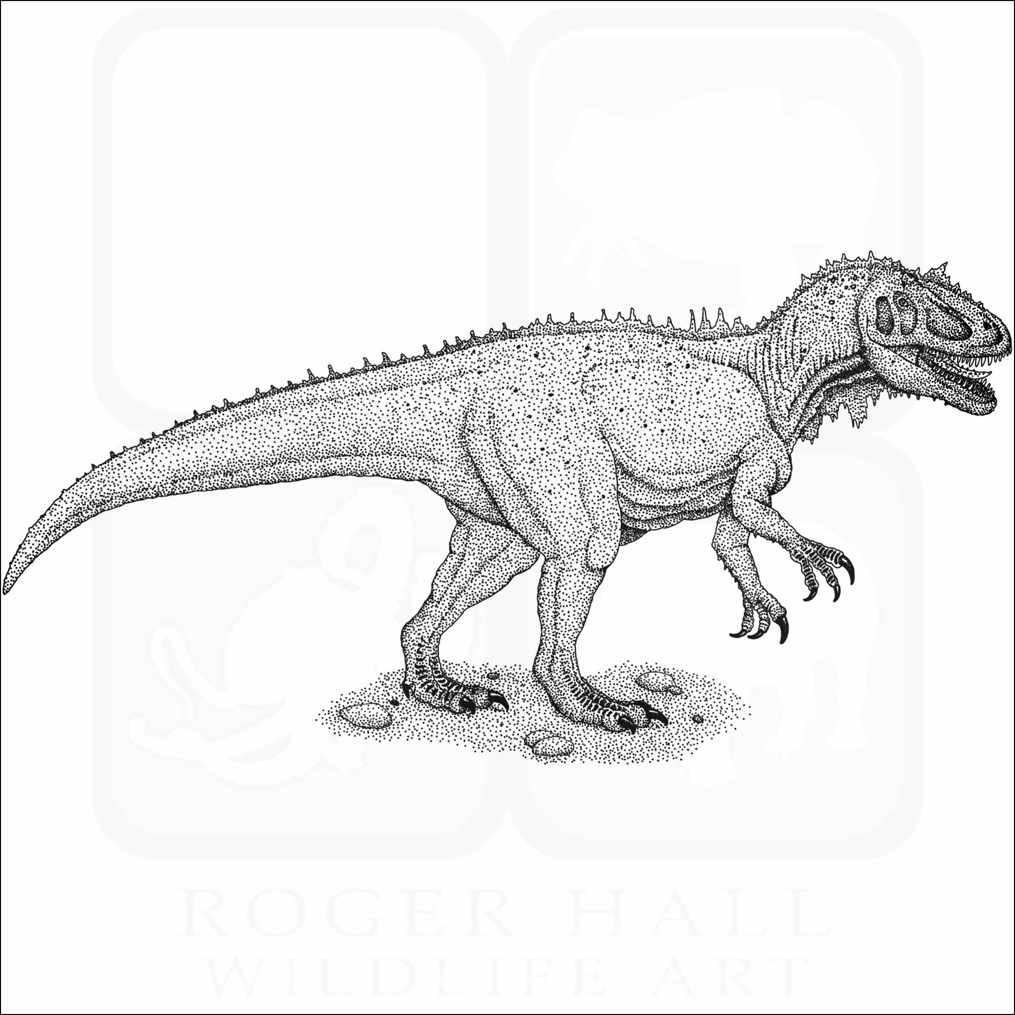 Fine art illustration of a Saurophaganax (Saurophaganax maximus.) The illustration is available in black and white or color.