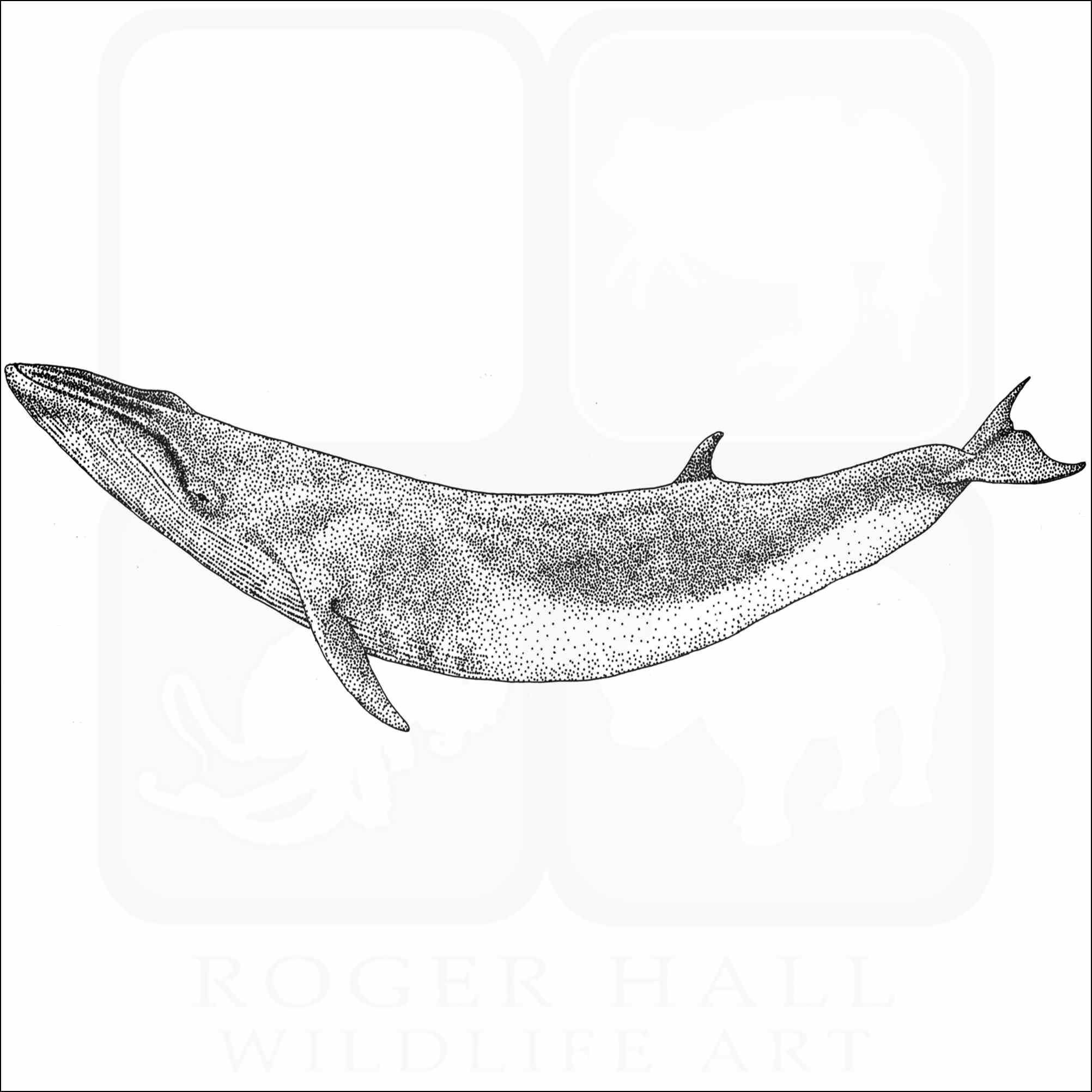 Fine art illustration of a Sei Whale (Balaenoptera borealis.) The illustration is available in black and white or color.