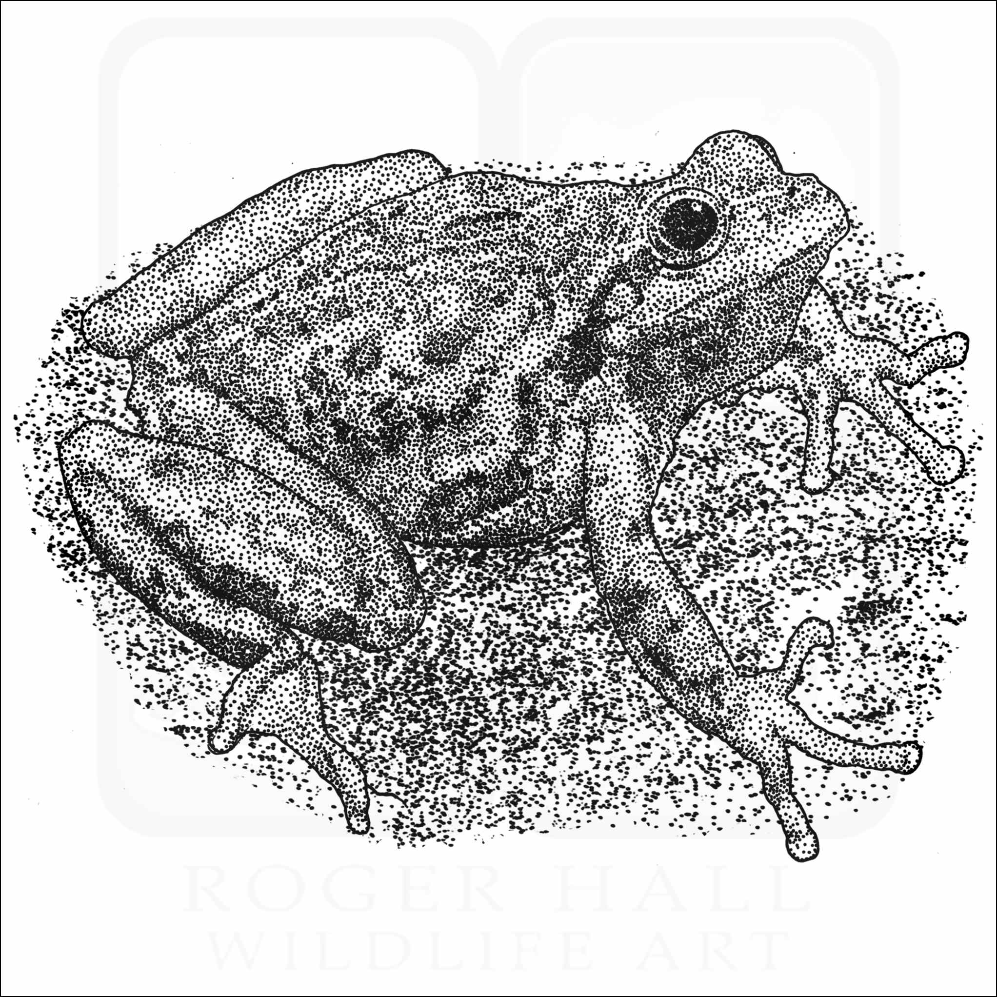 Fine art illustration of a Sierra Tree Frog (Pseudacris sierra.) The illustration is available in black and white or color.