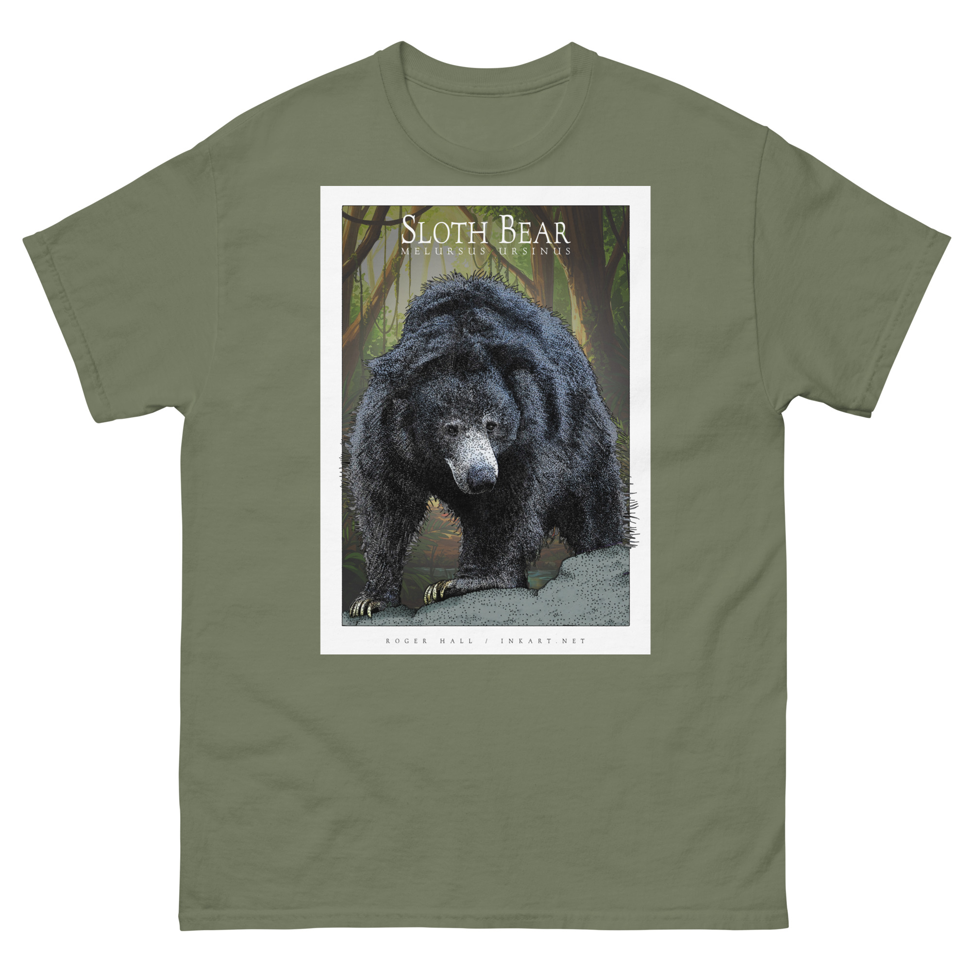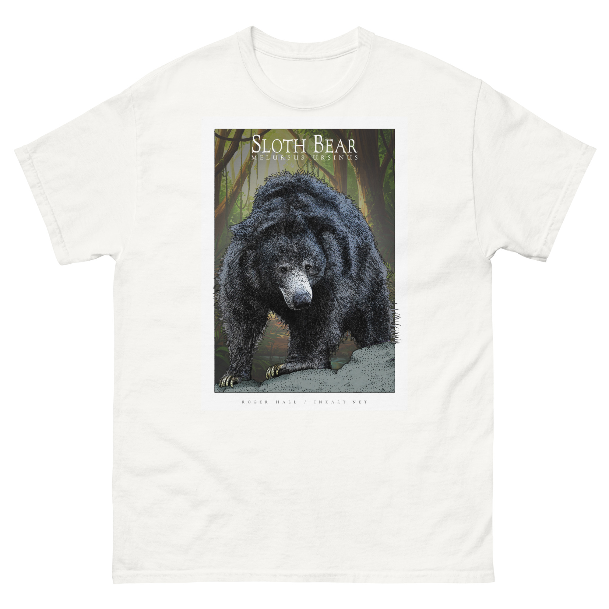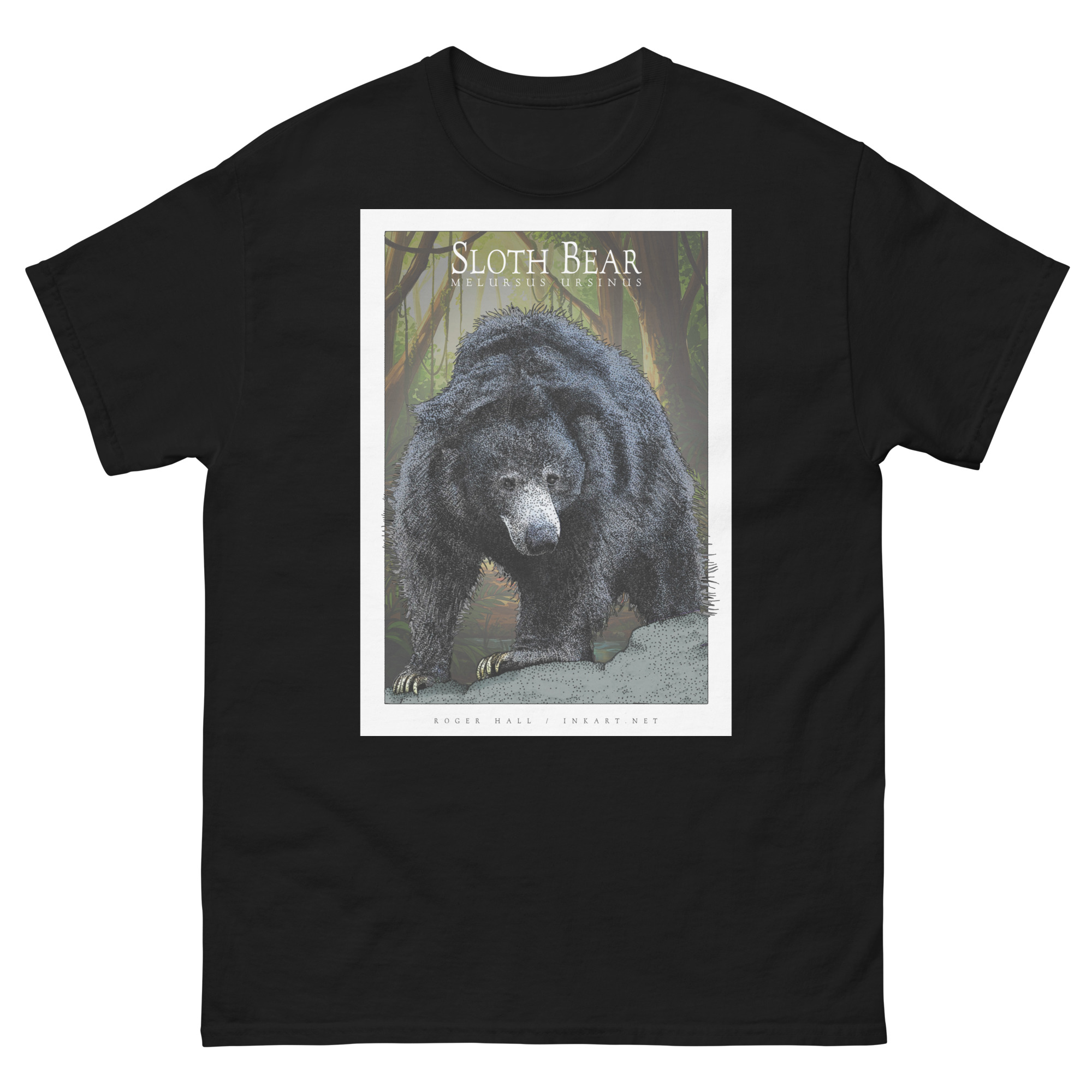 Scientifically accurate drawing of a Sloth Bear (Melursus ursinus.) The illustration of a printed on a high-quality 100% unisex cotton t-shirt.