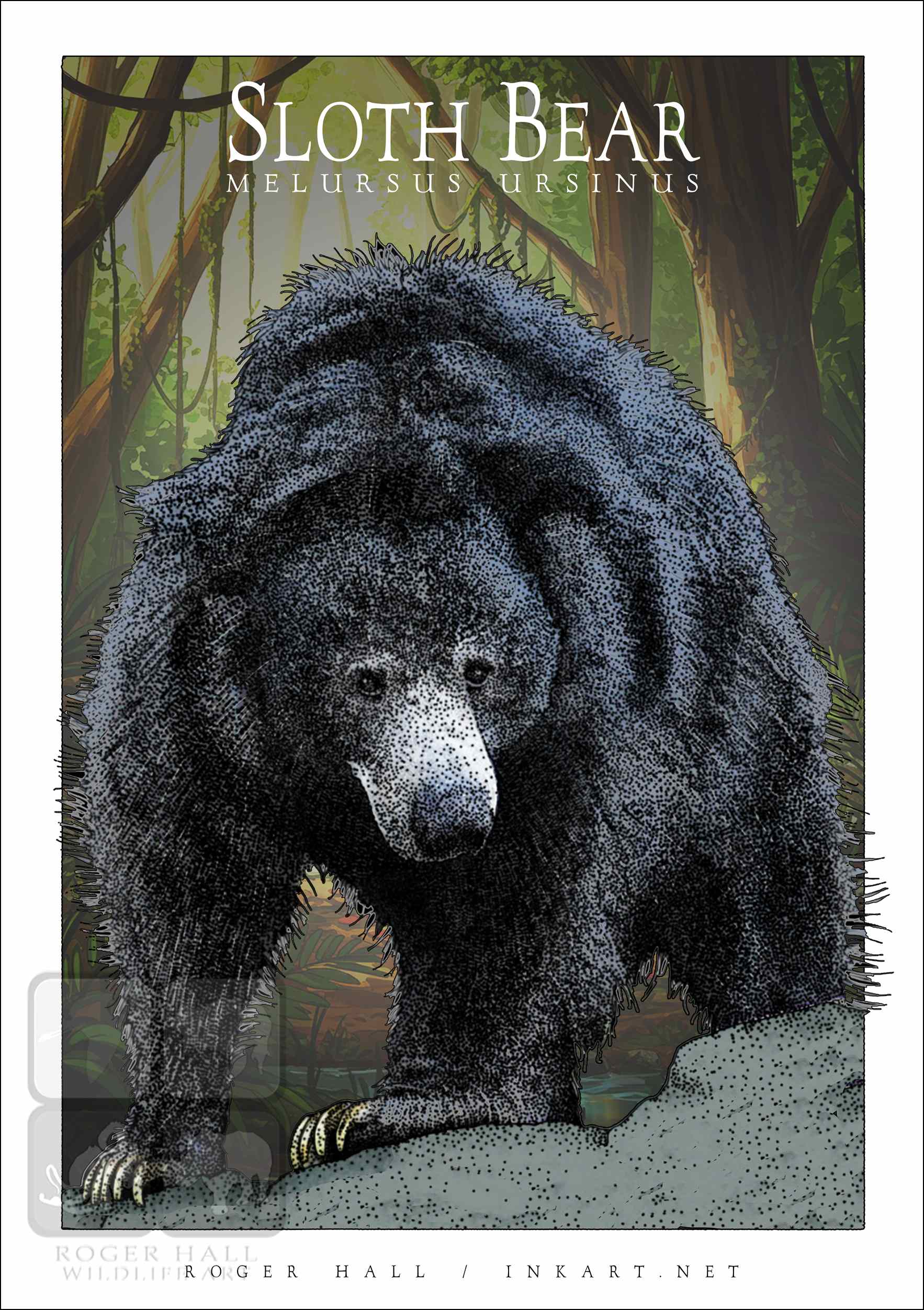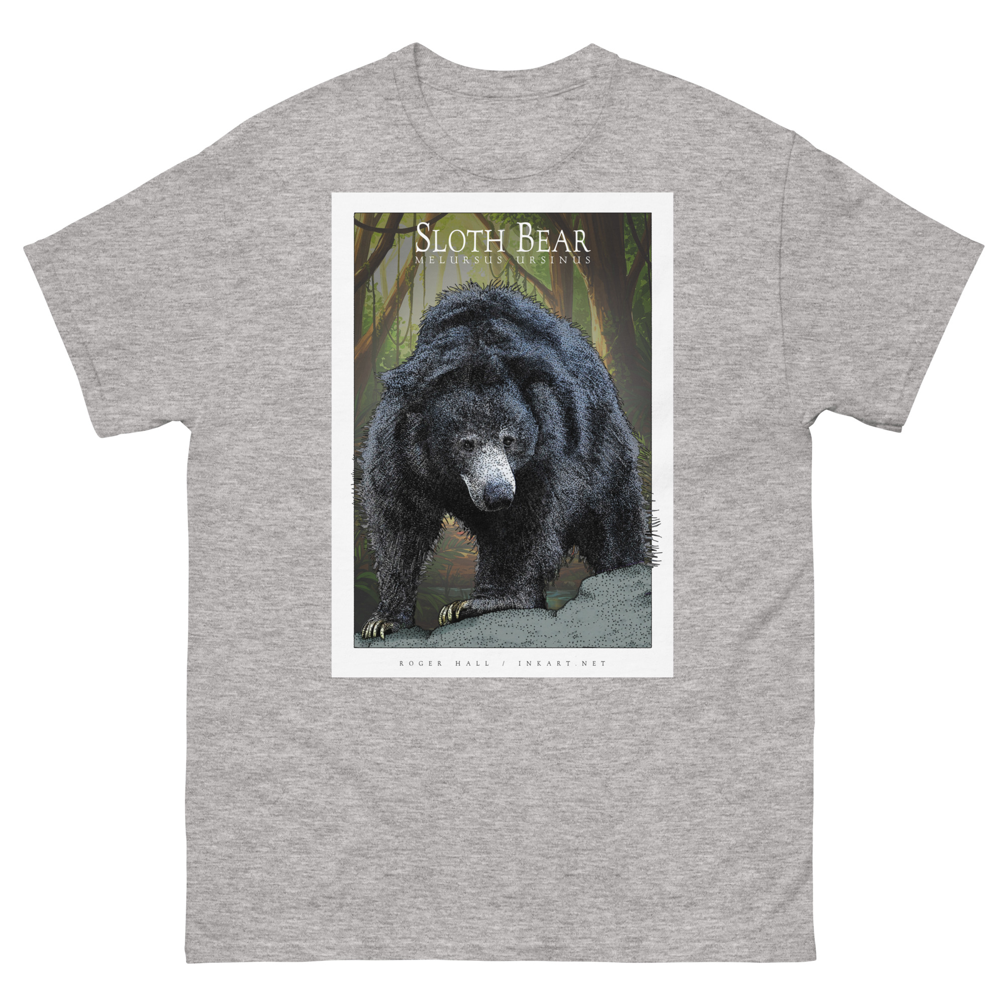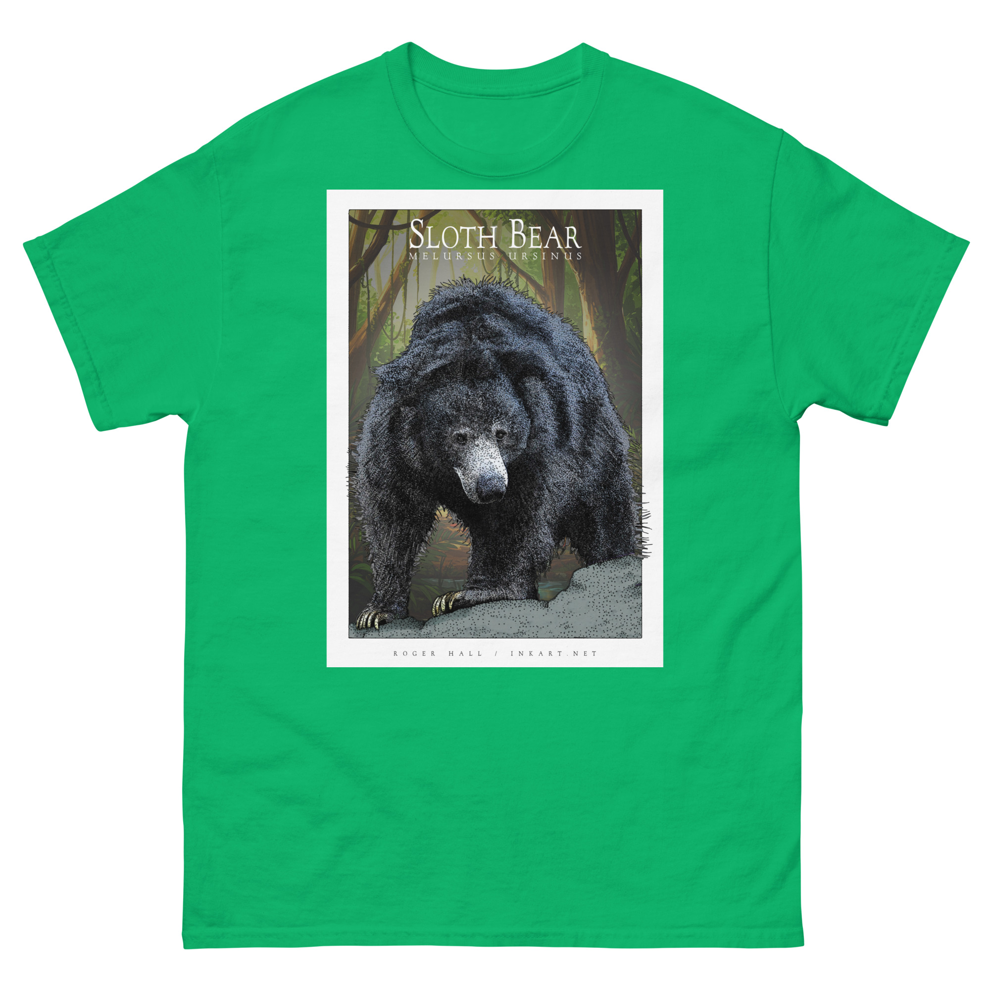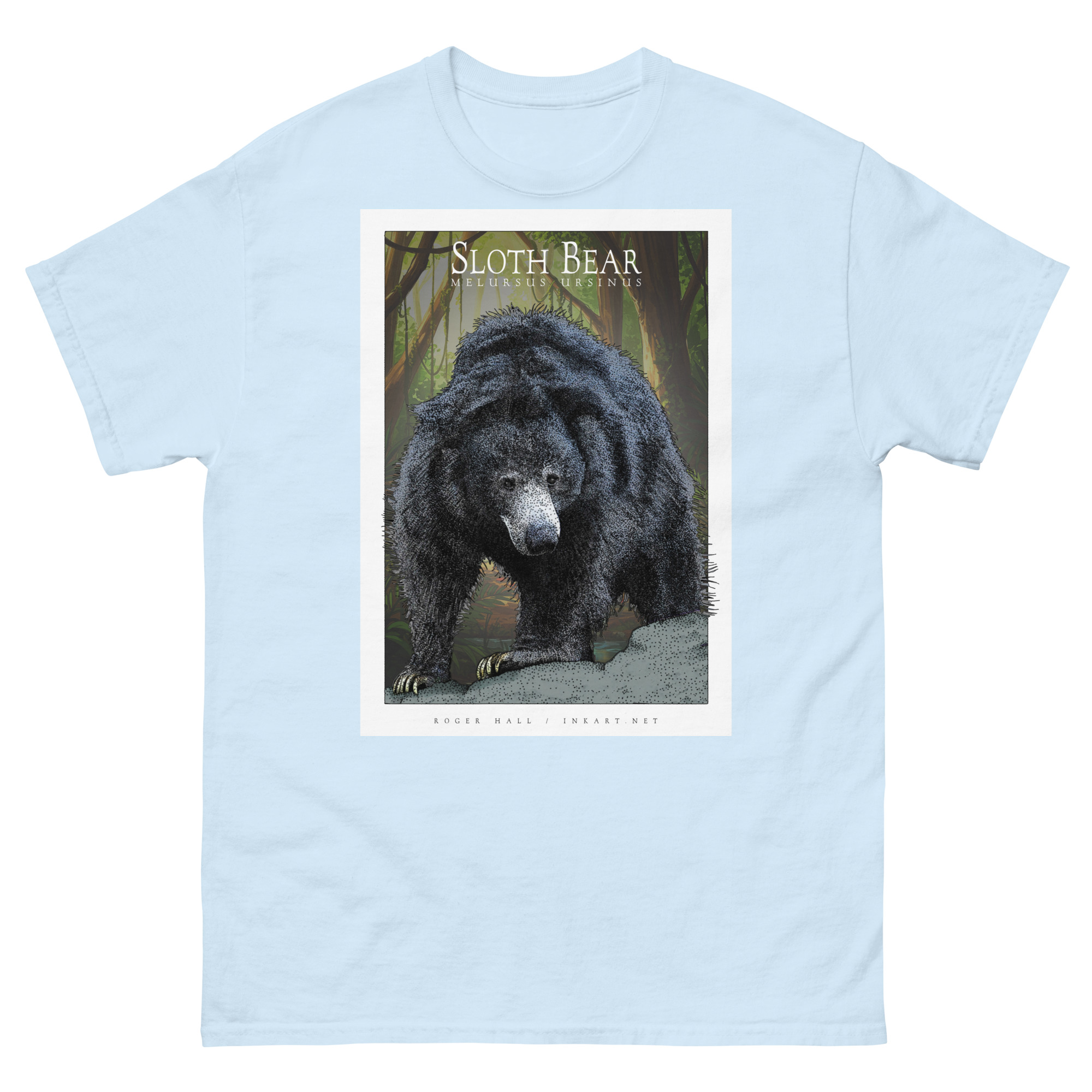 Scientifically accurate drawing of a Sloth Bear (Melursus ursinus.) The illustration of a printed on a high-quality 100% unisex cotton t-shirt.