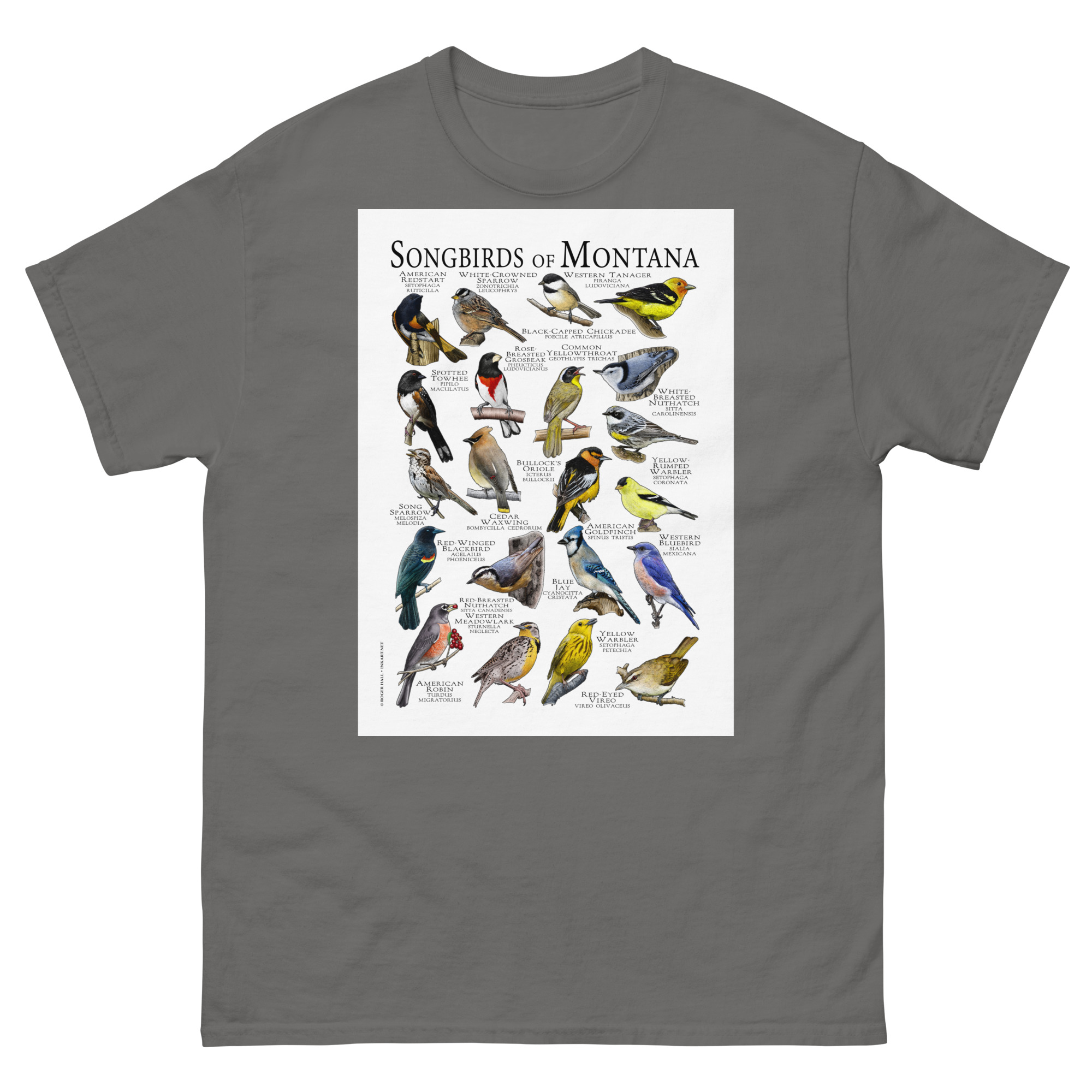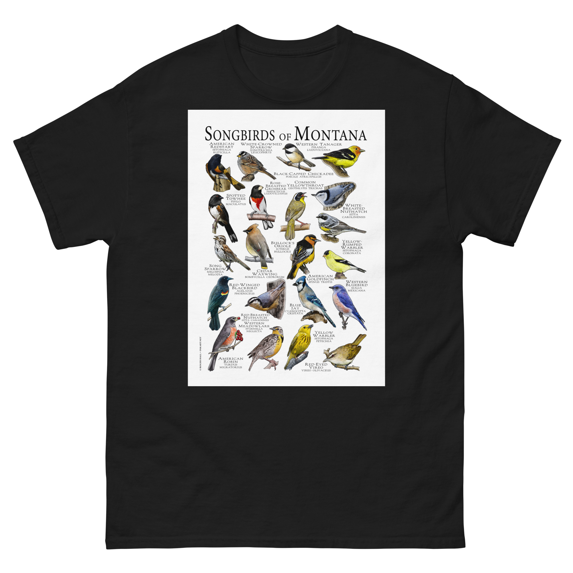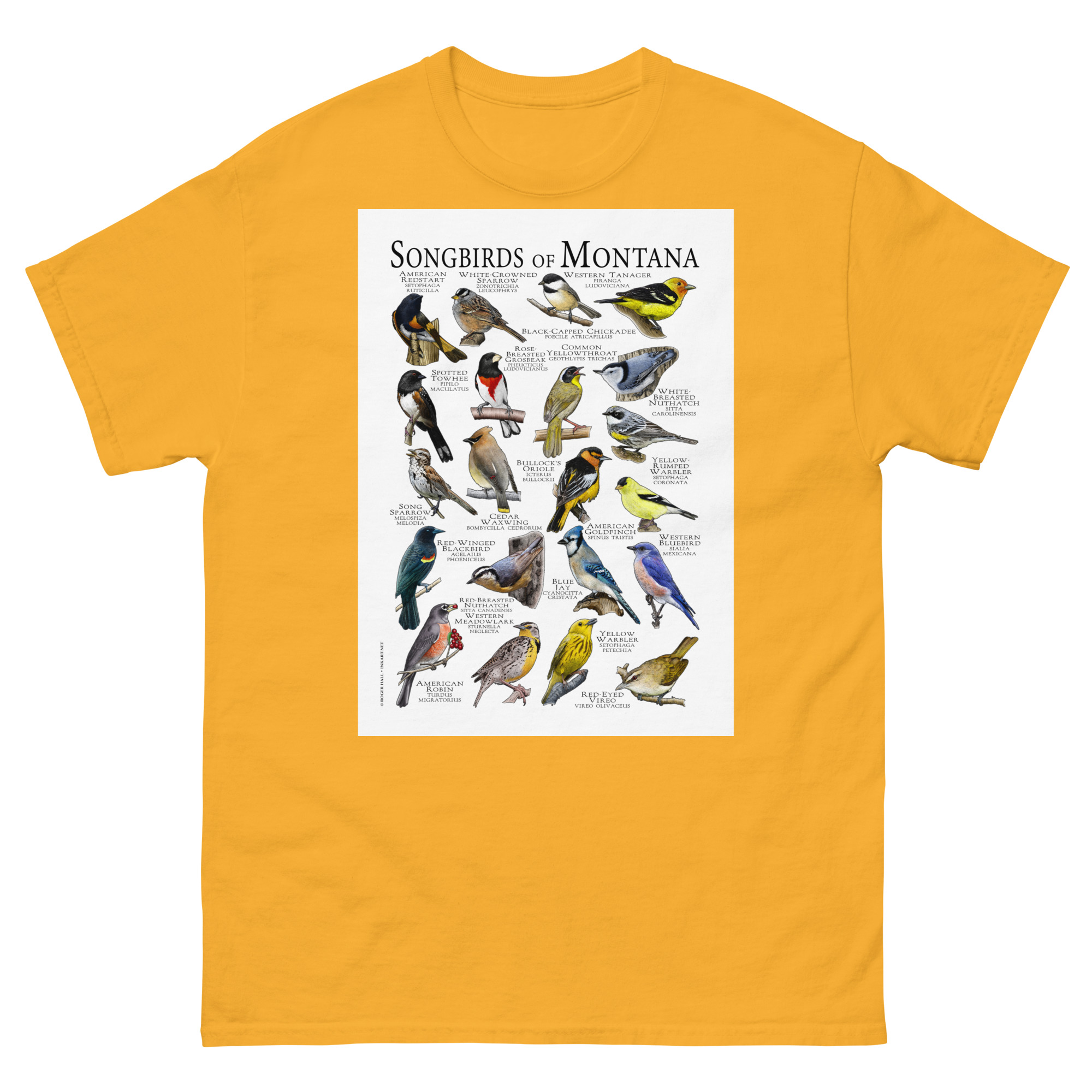Songbirds – also known as the passerine birds – are any member of the suborder Passeri (or Oscines), of the order Passeriformes. The group including about 4,000 species in 35-55 families, which is nearly half the world’s birds. This artwork features high-quality illustrations of the various species of songbird native to the state of Missouri in the USA. The image is printed on a high-quality 100% men’s cotton t-shirt.