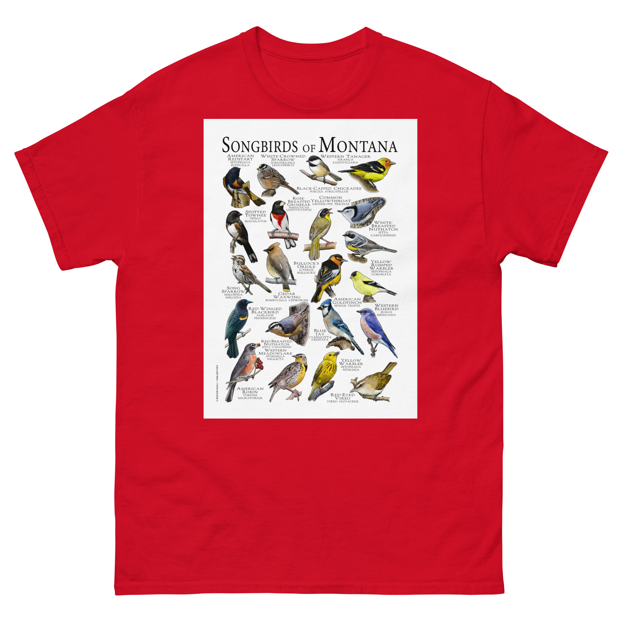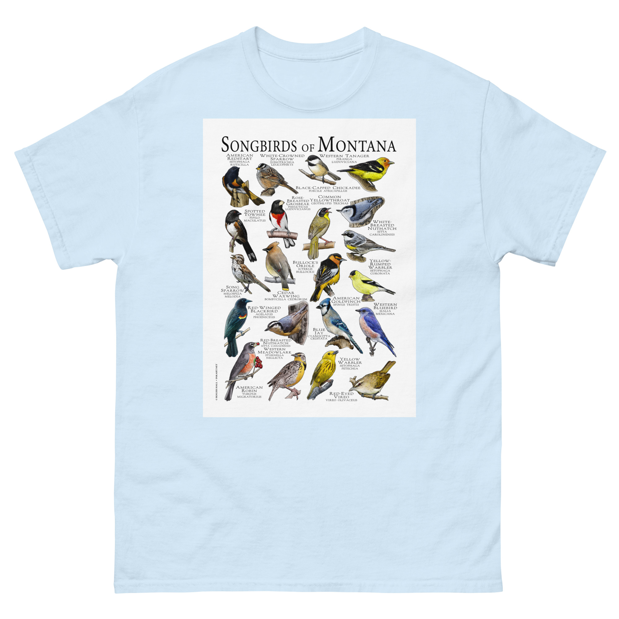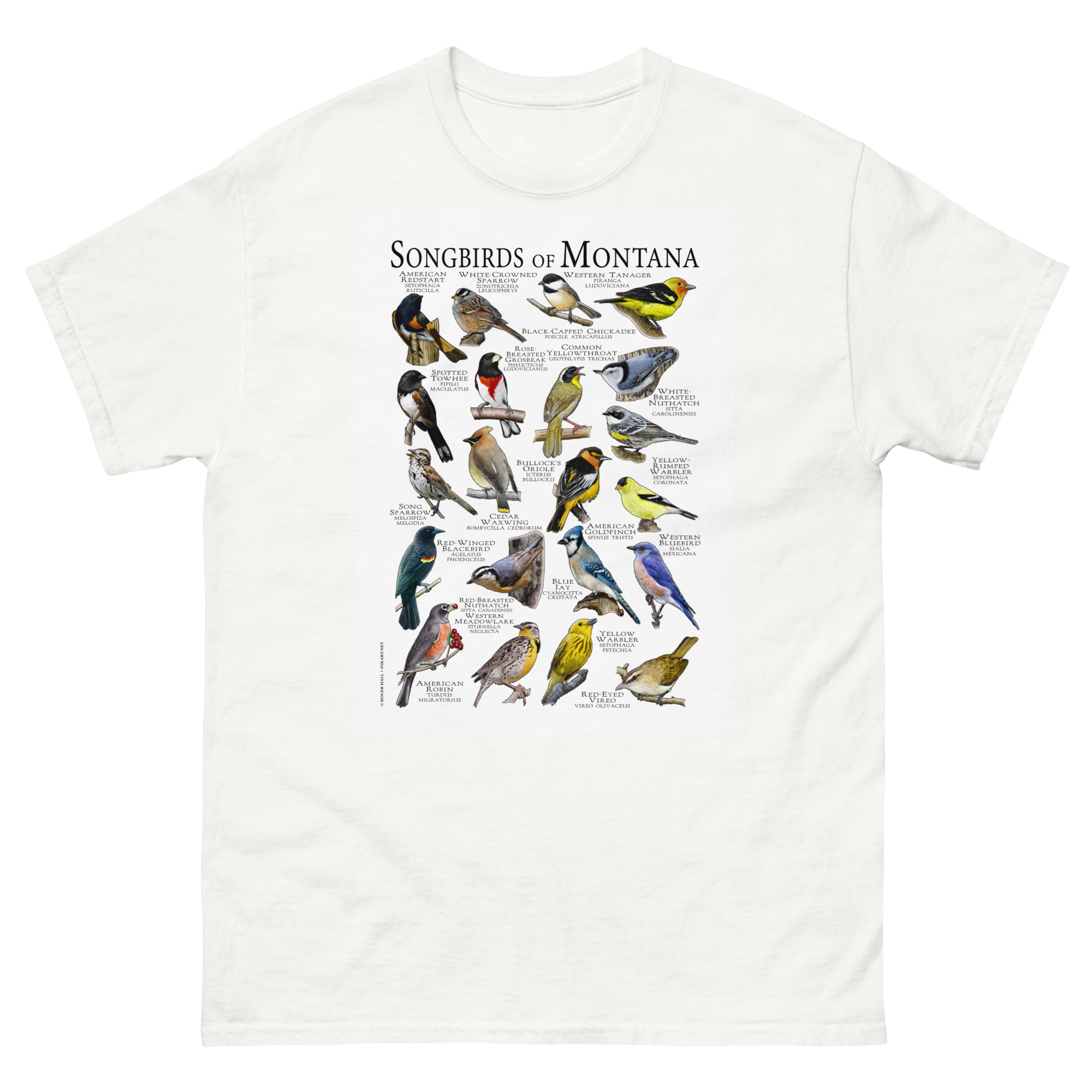 Songbirds – also known as the passerine birds – are any member of the suborder Passeri (or Oscines), of the order Passeriformes. The group including about 4,000 species in 35-55 families, which is nearly half the world’s birds. This artwork features high-quality illustrations of the various species of songbird native to the state of Missouri in the USA. The image is printed on a high-quality 100% men’s cotton t-shirt.